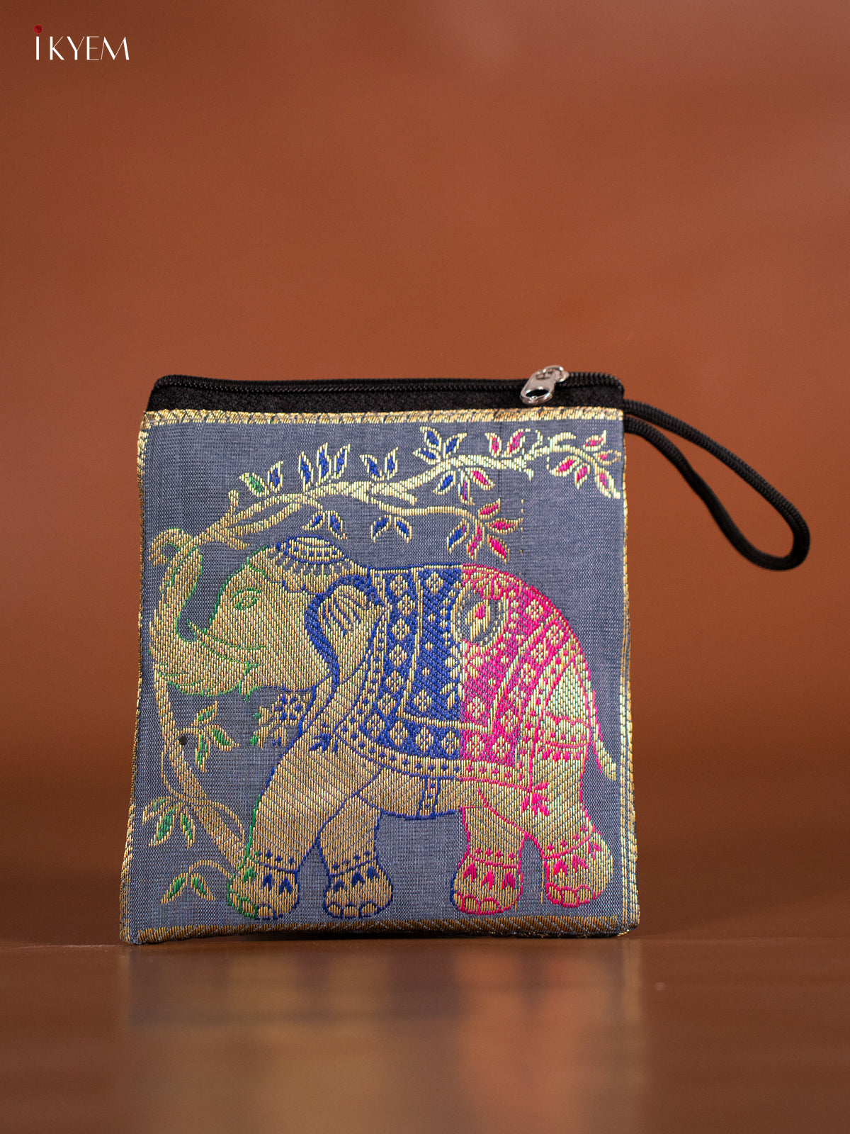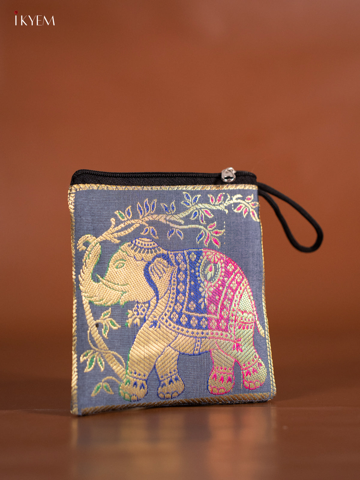 - This Elephant designed Banarasi Coin Pouch in grey offers a stylish and practical way to carry coins.