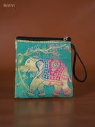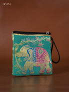 Elephant designed Banarasi Coin Pouch - Teal