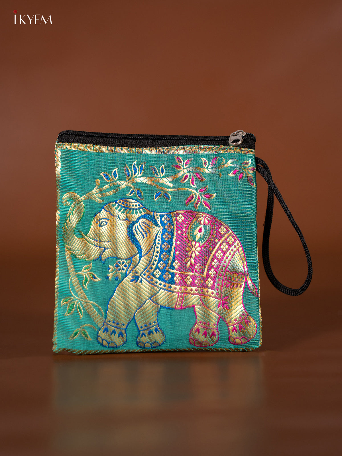 - This Elephant designed Banarasi Coin Pouch in teal offers a stylish and practical way to carry coins.