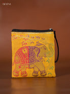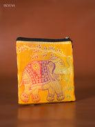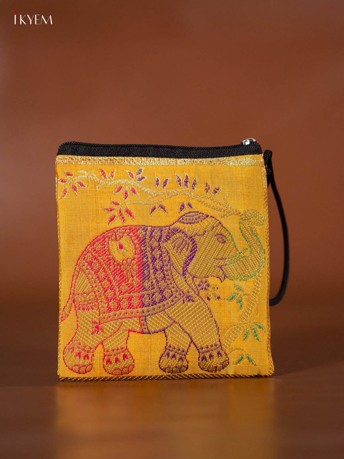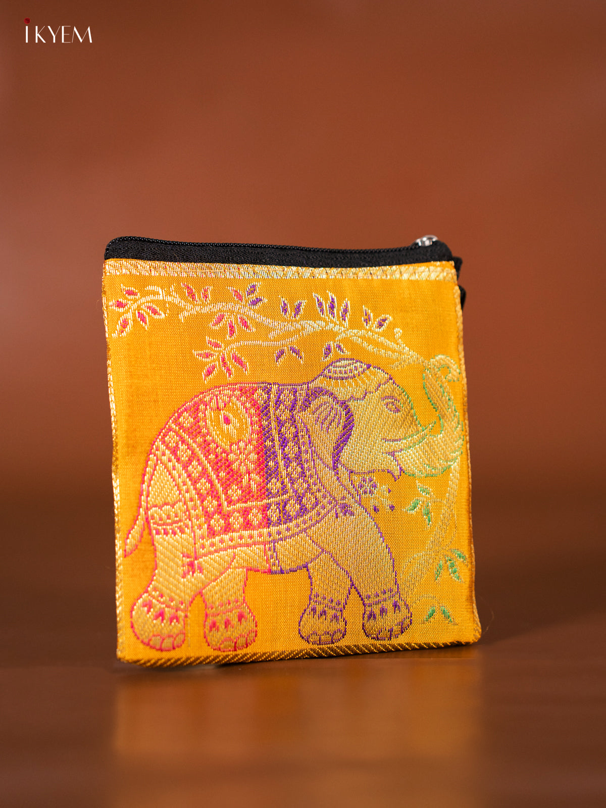 - This Elephant designed Banarasi Coin Pouch in yellow offers a stylish and practical way to carry coins.