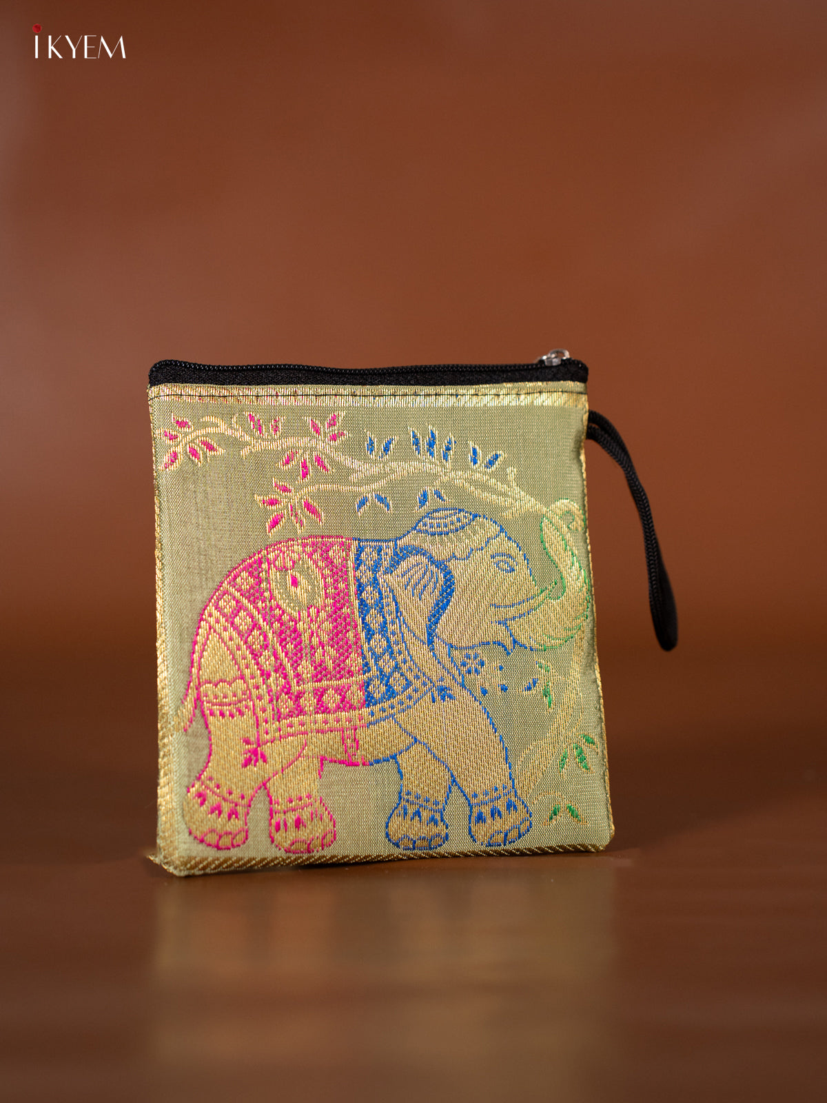 - This Elephant designed Banarasi Coin Pouch in pastel green offers a stylish and practical way to carry coins.