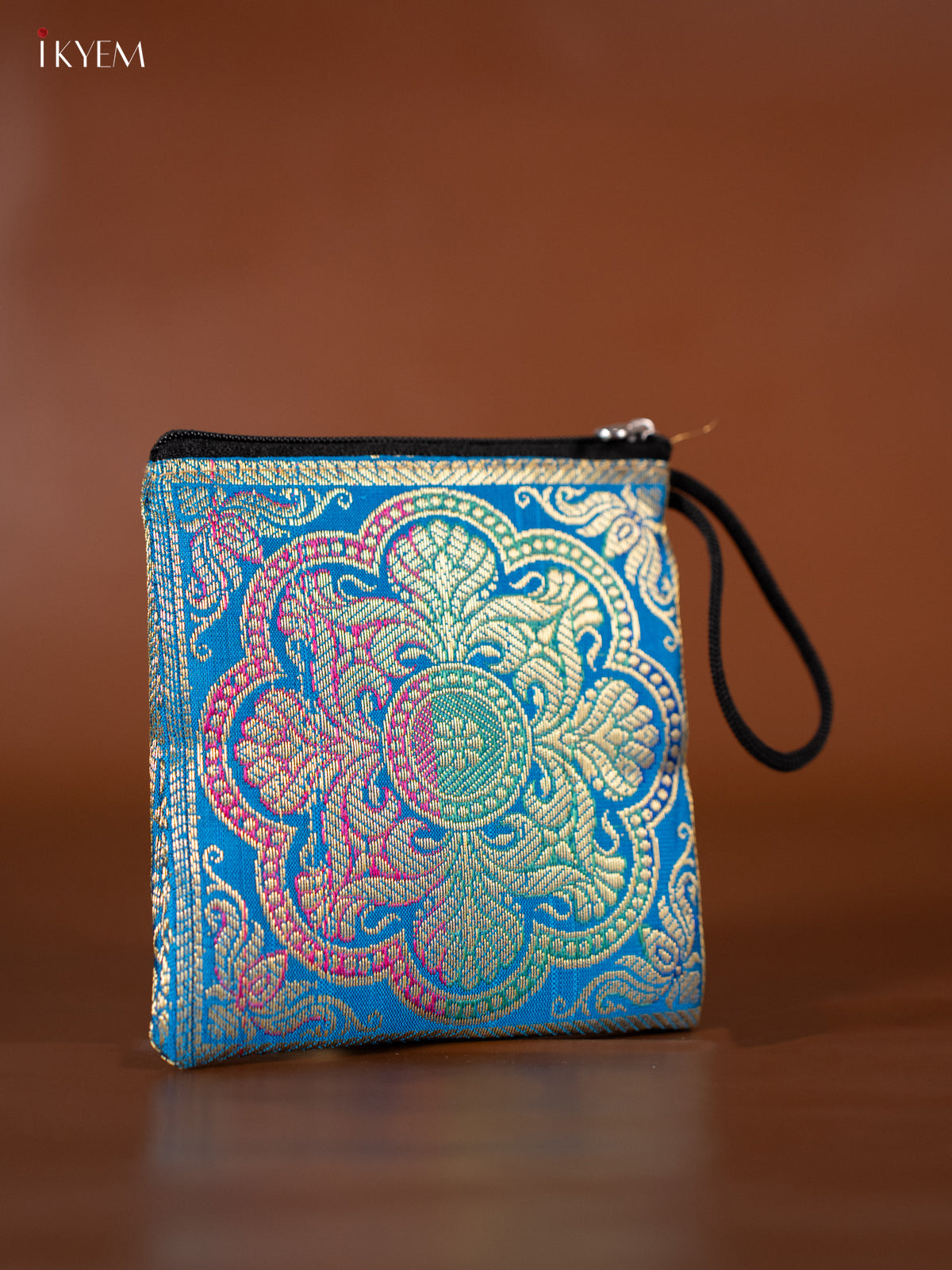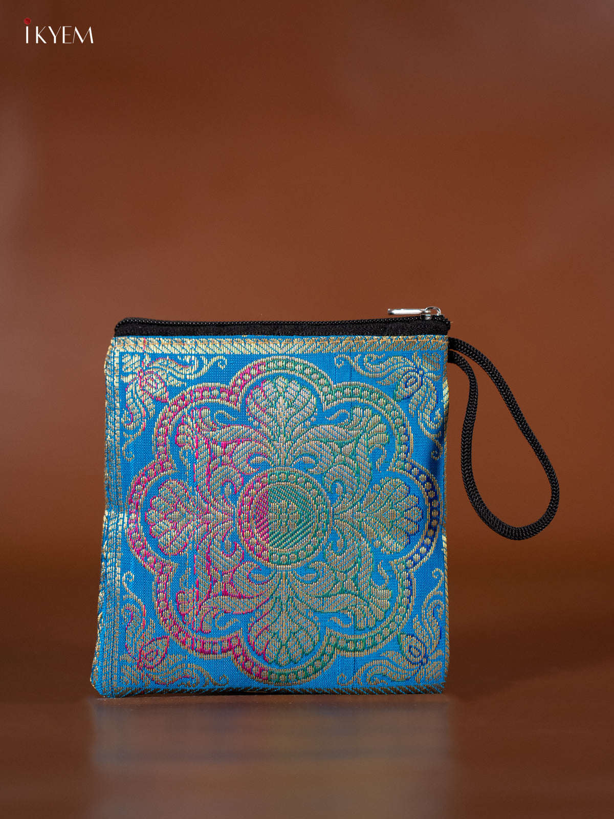 Rangoli designed Banarasi Coin Pouch - Sky Blue