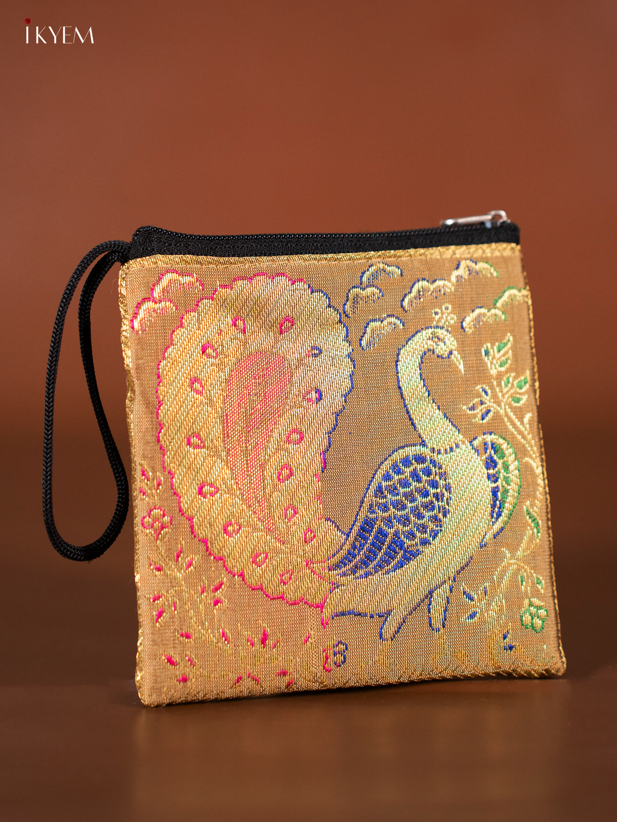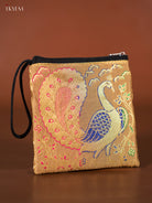 Peacock designed Banarasi Coin Pouch - Gold
