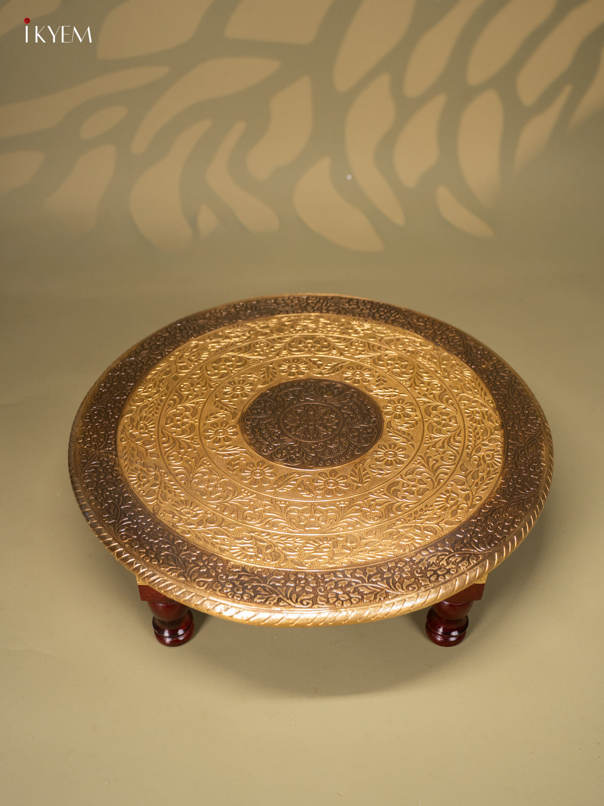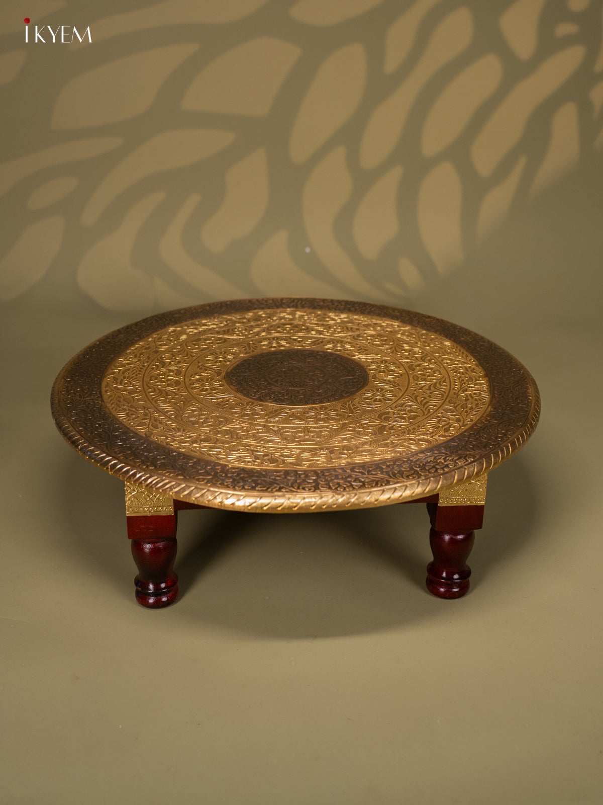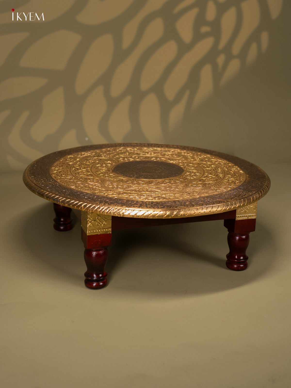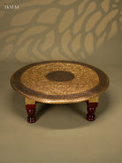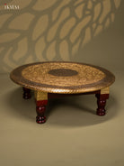 Brass Fitted Round Wooden Stool - 18 inch