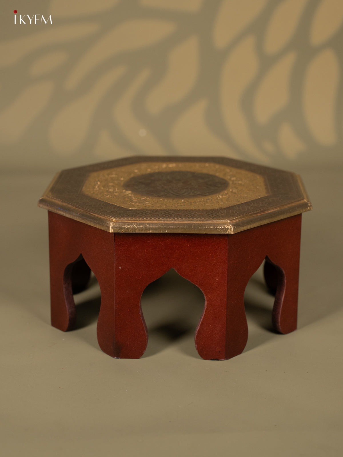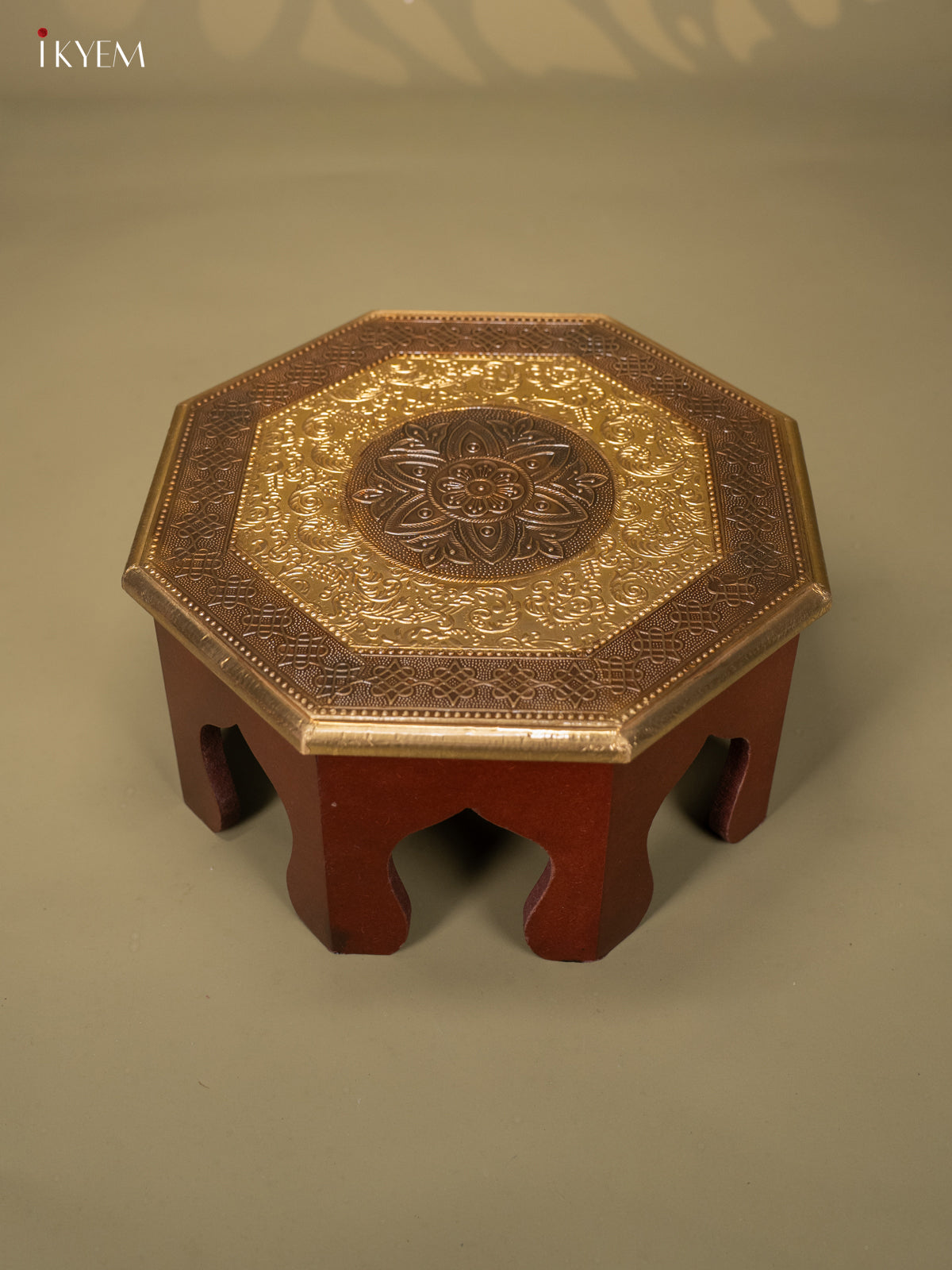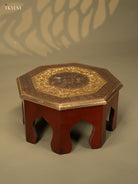 Brass Fitted Octagon Wooden Stool - 12 inch