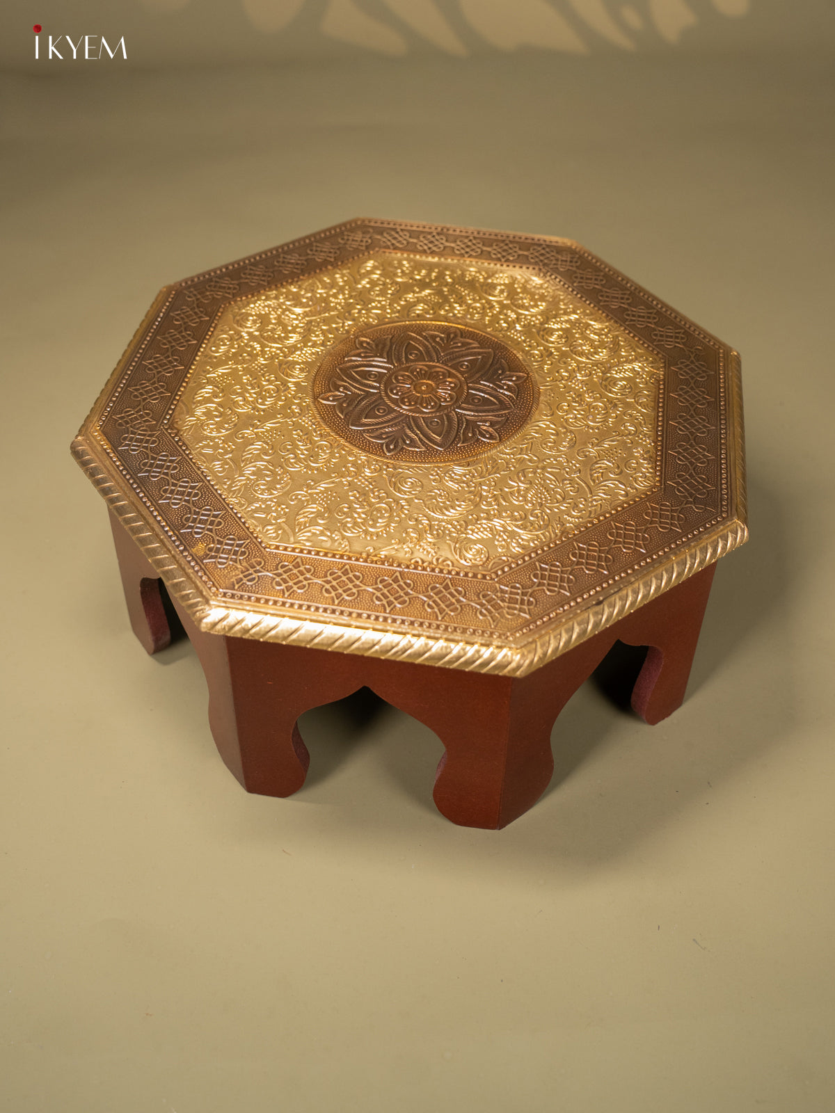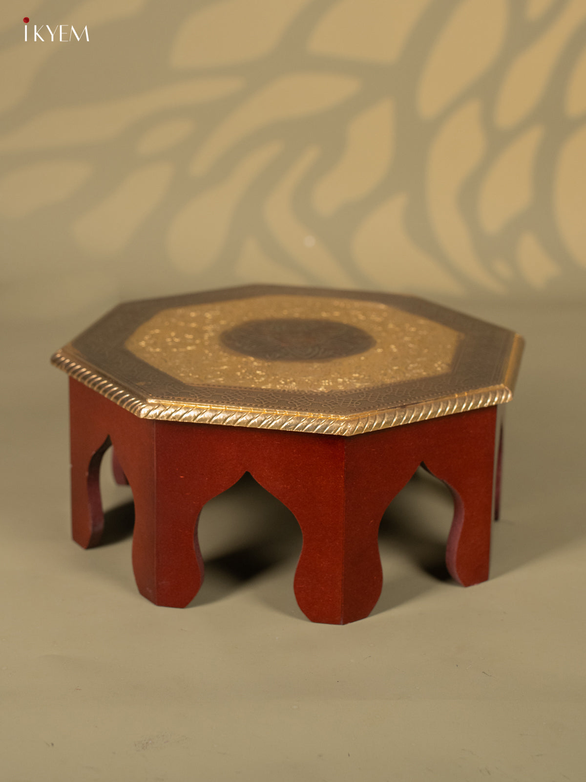 Brass Fitted Octagon Wooden Stool - 15 inch