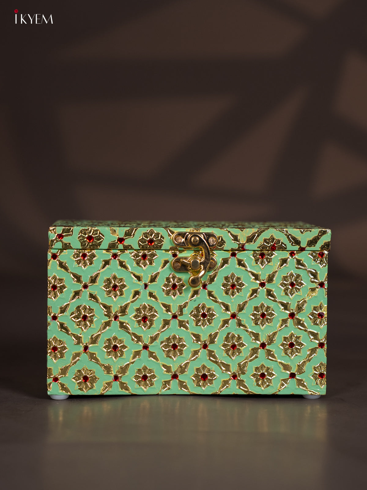 - Crafted with intricate Meenakari artistry and a sturdy wooden frame finished in elegant Green, this box combines beauty with functionality.