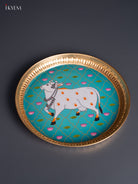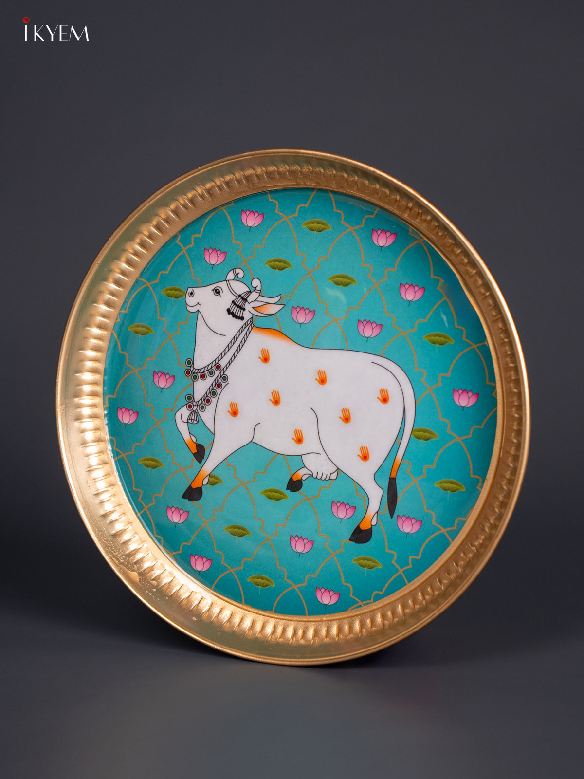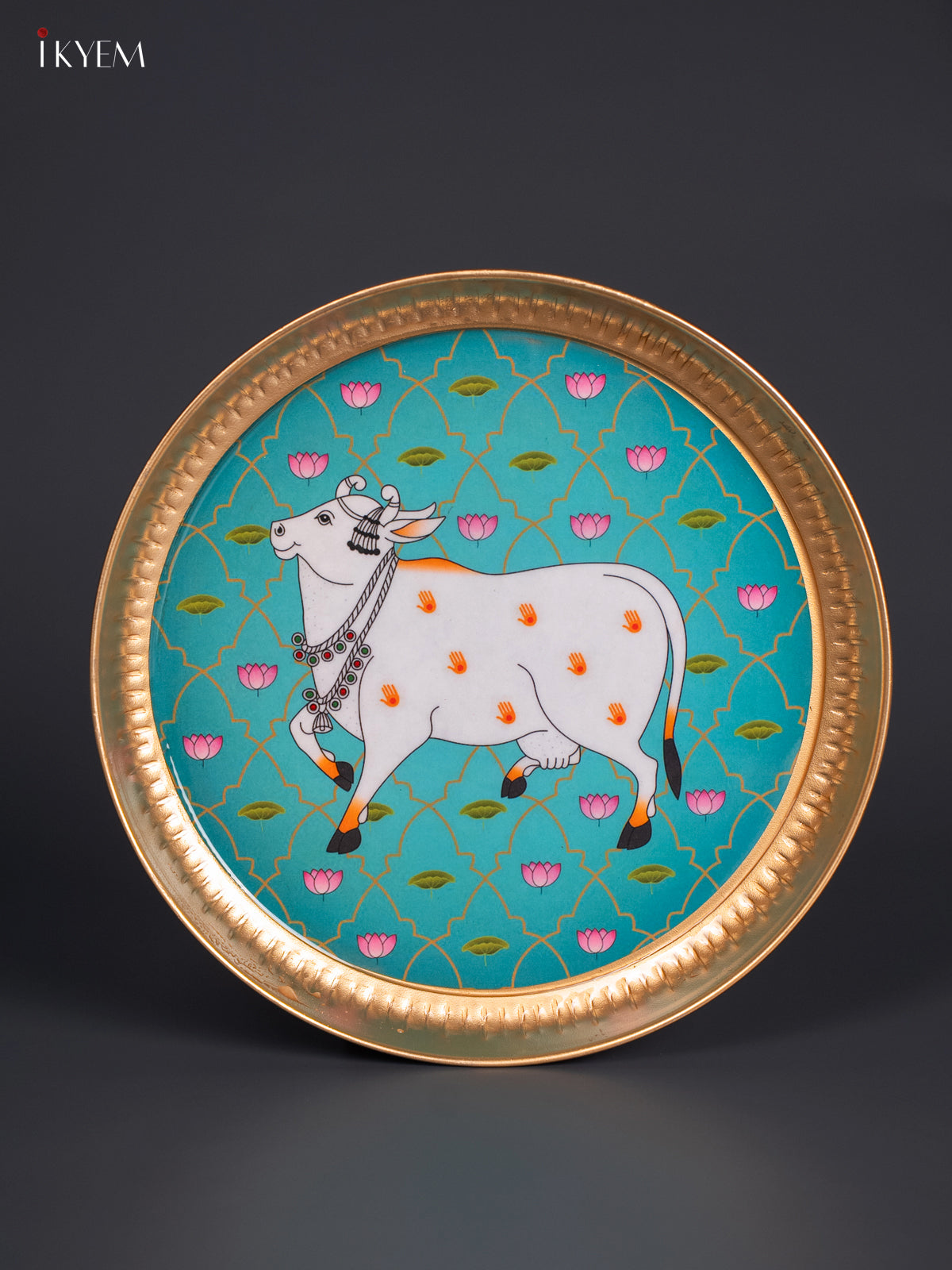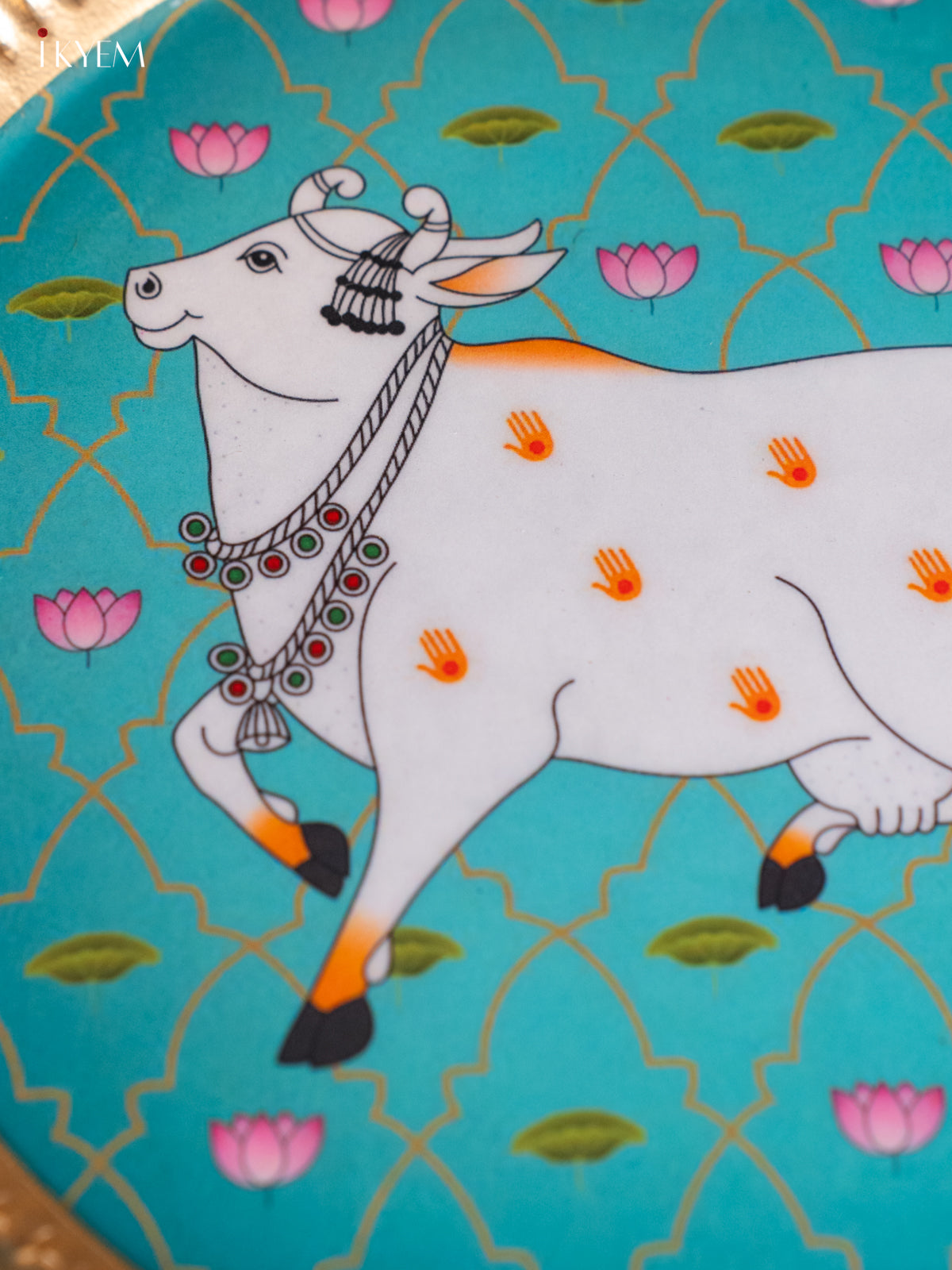 Cow & Lotus Digital Printed Metal Plate - Teal - KJ21131