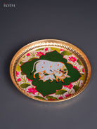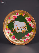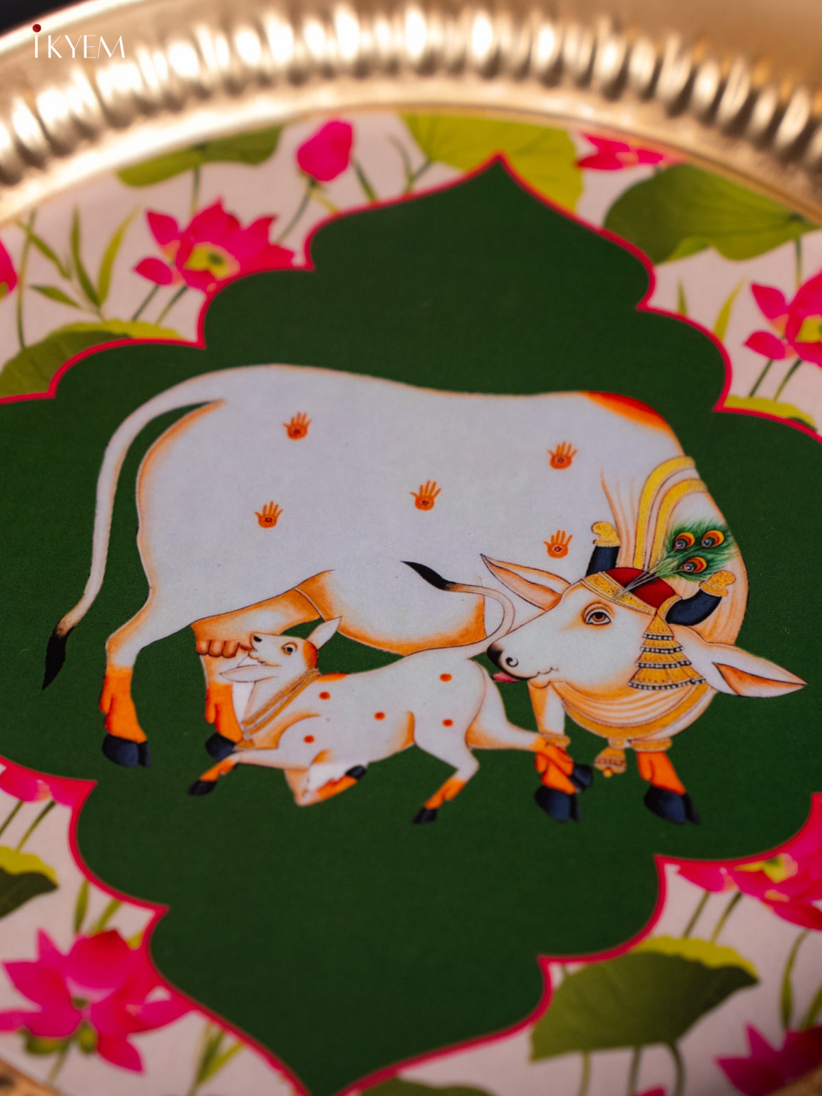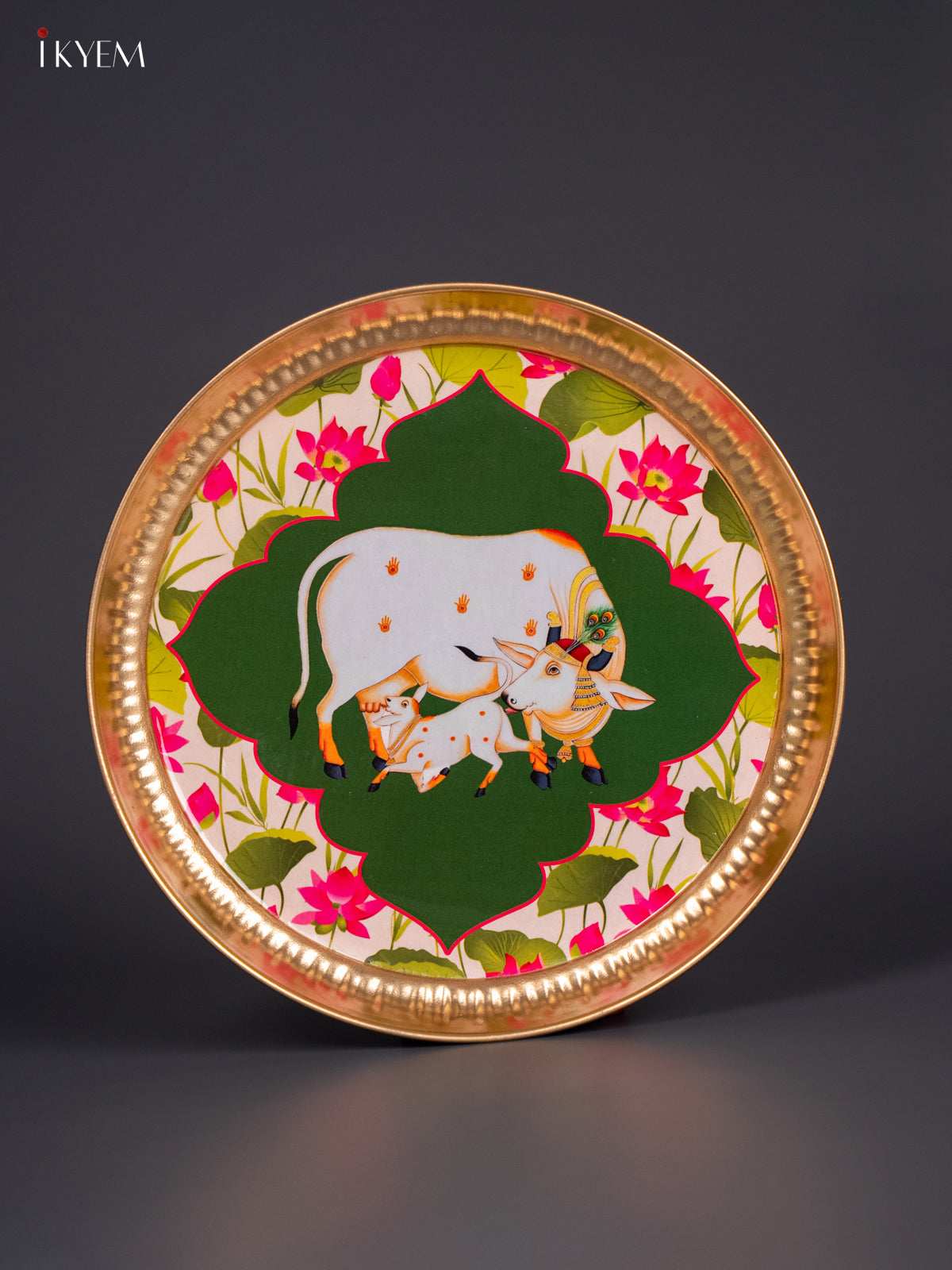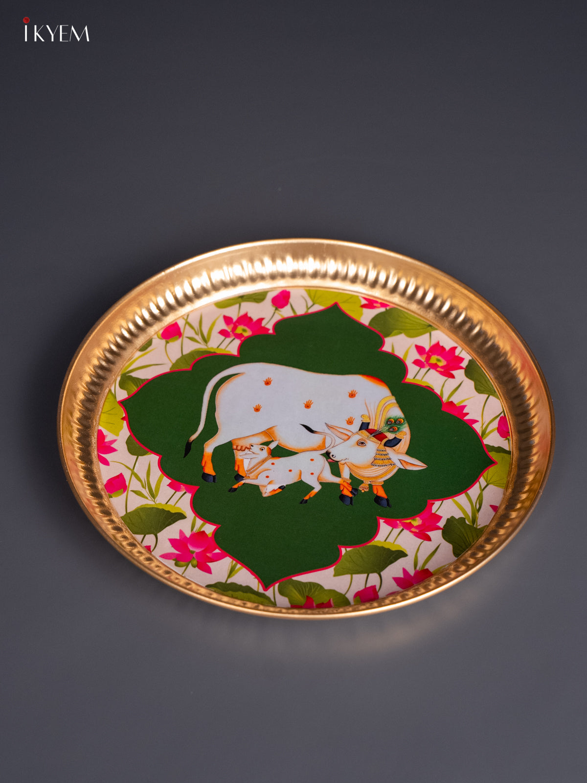 Cow & Calf with Lotus Digital Printed Metal Plate - Green - KJ21132