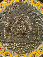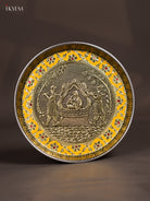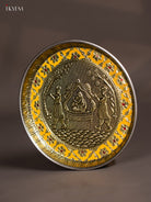 Yellow Meenakari Plate with Oxidized Pallakku Design - 8 Inches