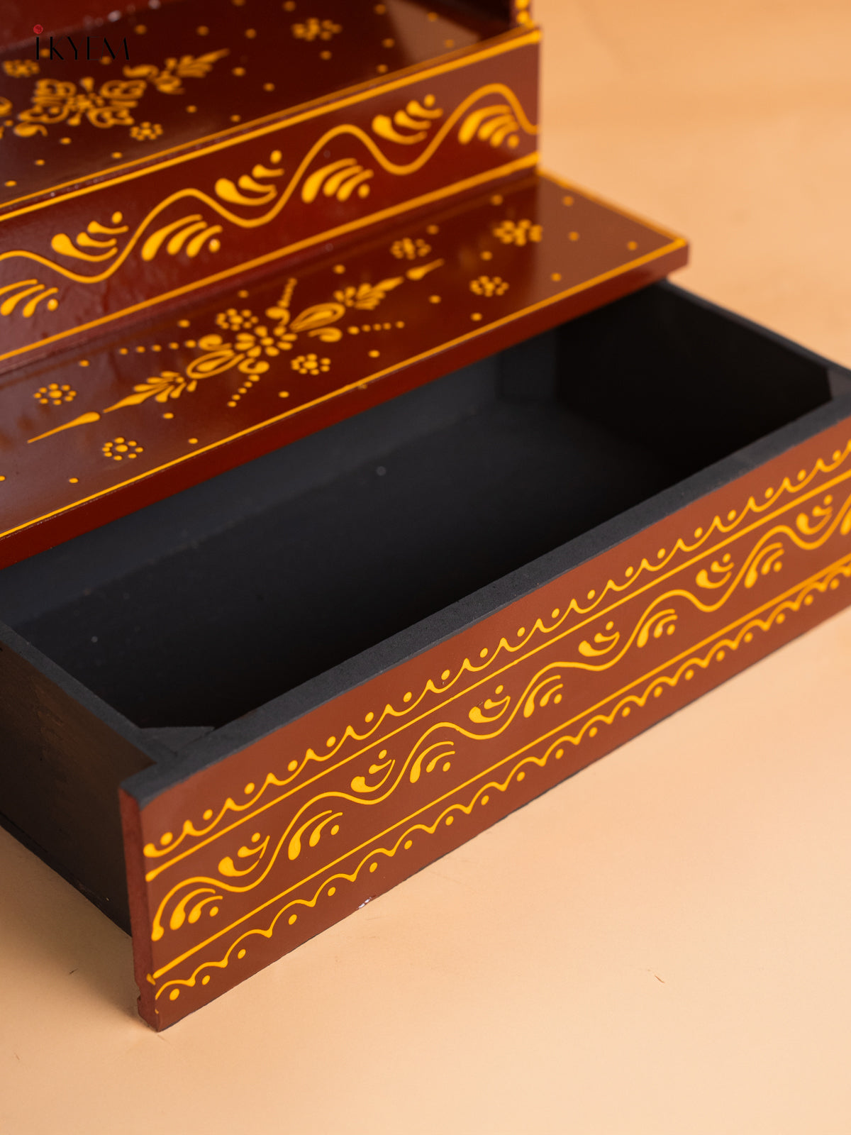 Elevate your prayer space with this hand-painted marron wooden temple (18.5″ × 17″ × 8.5″, 3.91 kg). The marron color adds a serene, understated elegance that complements both classic and modern decor styles. This artisan-crafted temple to create a sacred corner of peace and worship, or surprise a loved one with a thoughtful and spiritually rich gift.