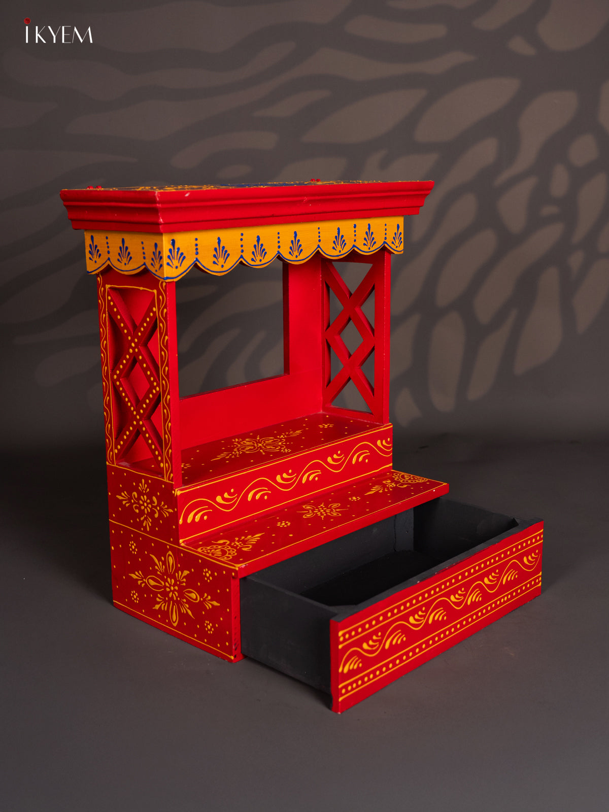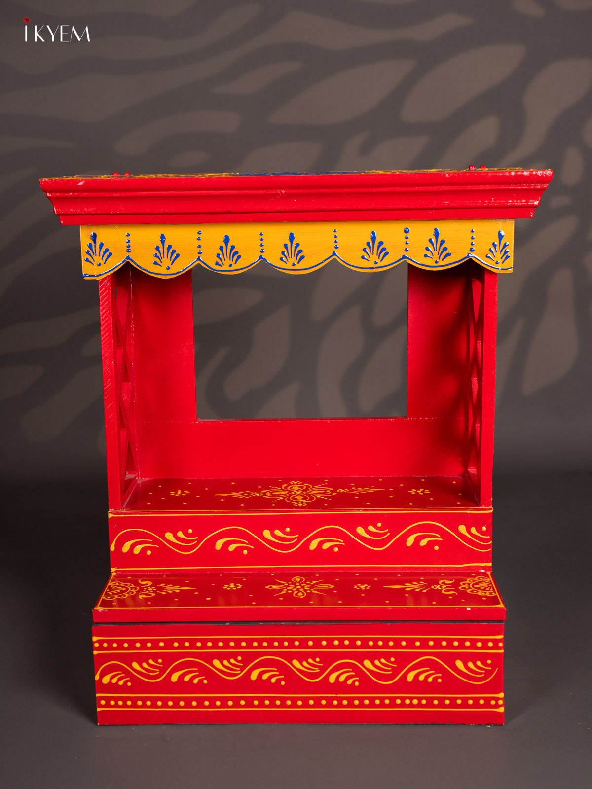 Bring home this hand-painted red wooden temple (18.5″ × 17″ × 8.5″, 3.91 kg). Elegant pooja mandir for home decor and spiritual rituals. The rich red finish lends a festive, traditional feel — ideal for daily prayers as well as special occasions.