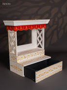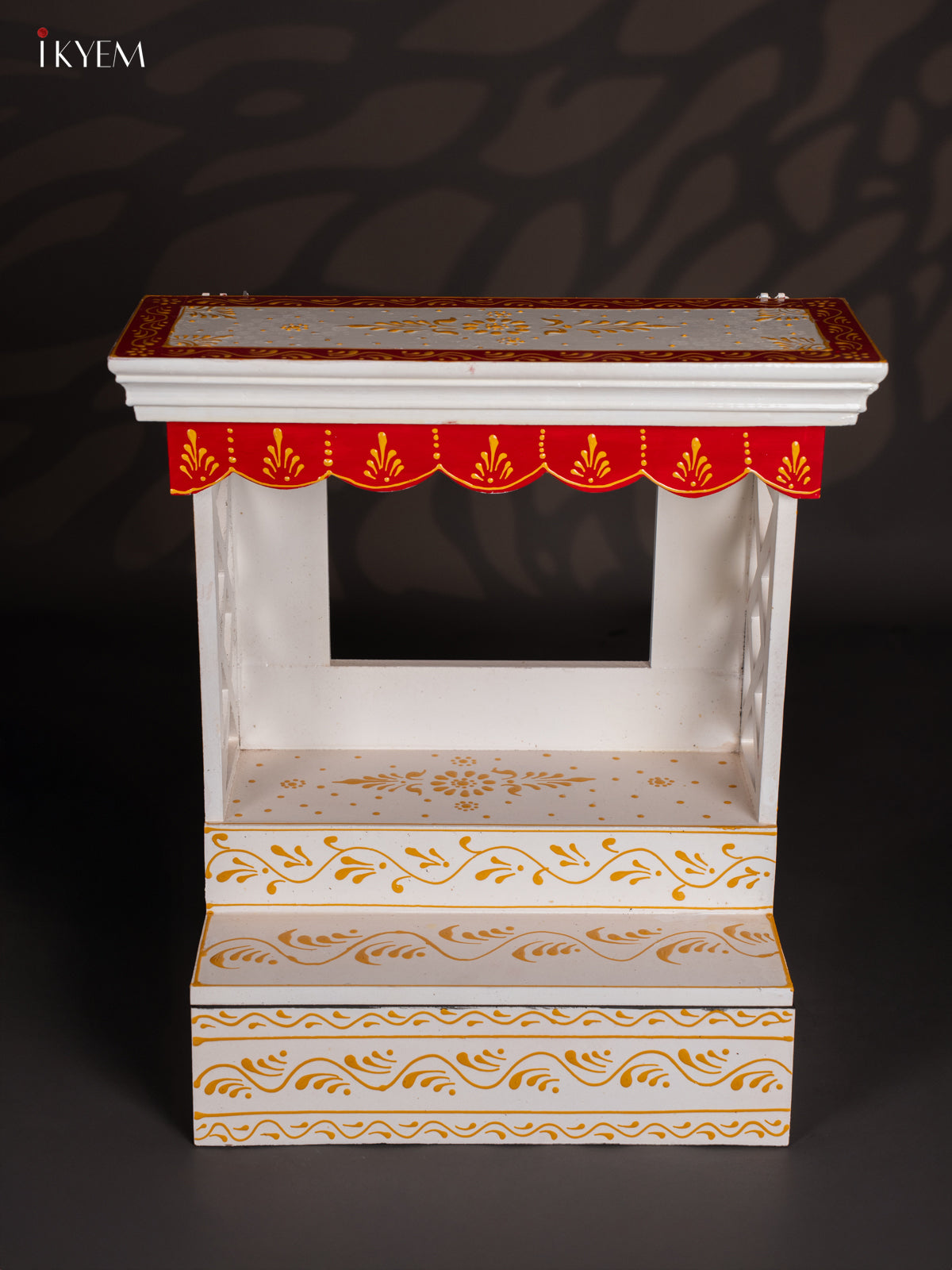 Hand-Painted Wooden Temple ( 18.5 in Height) - White - KJ31114