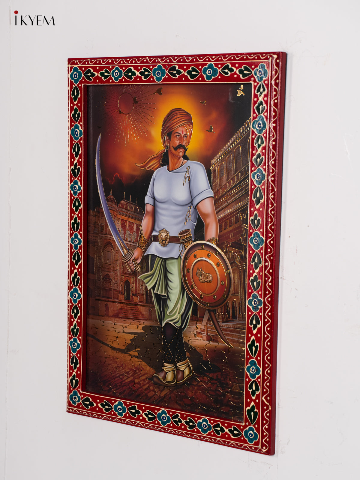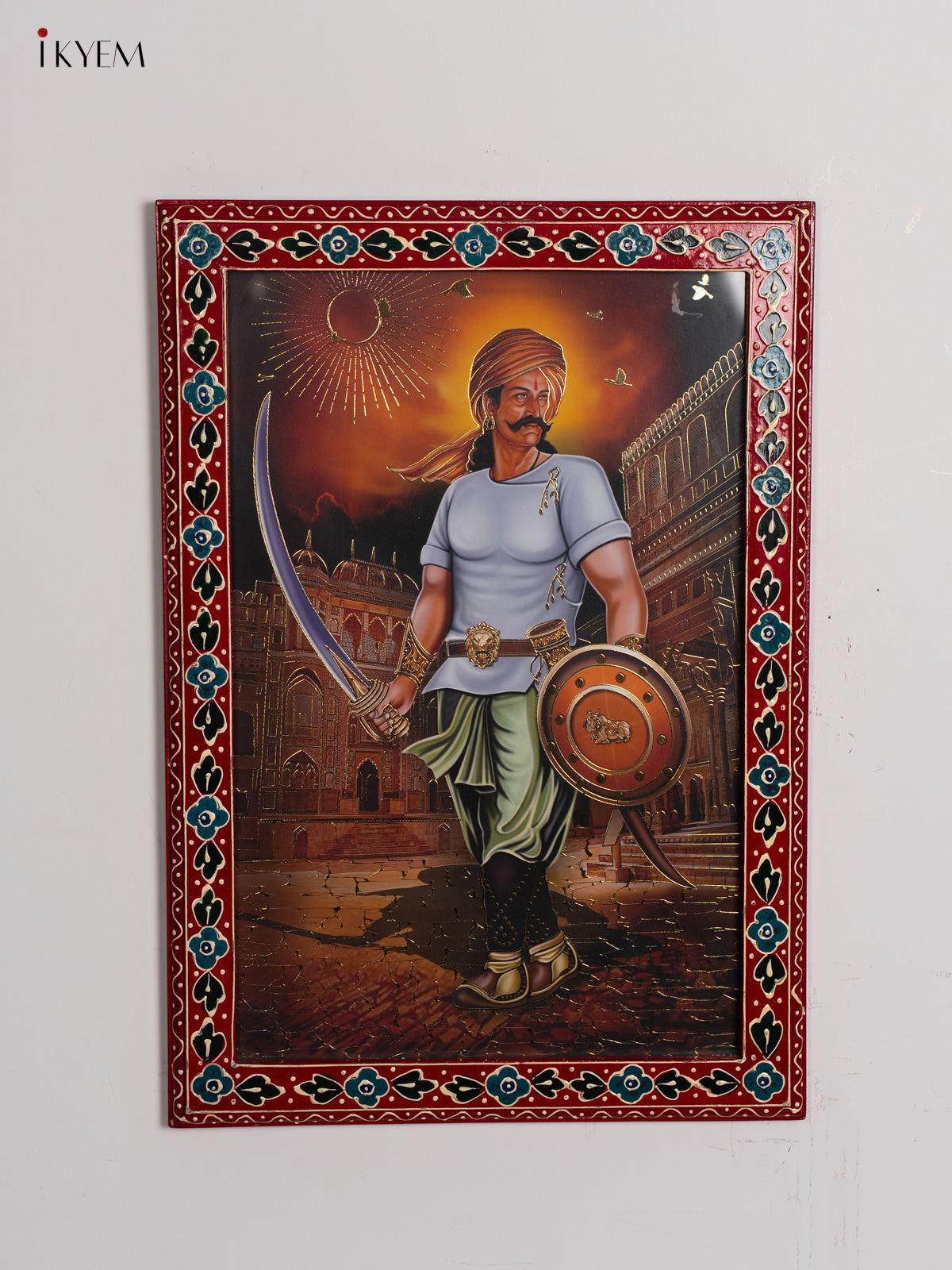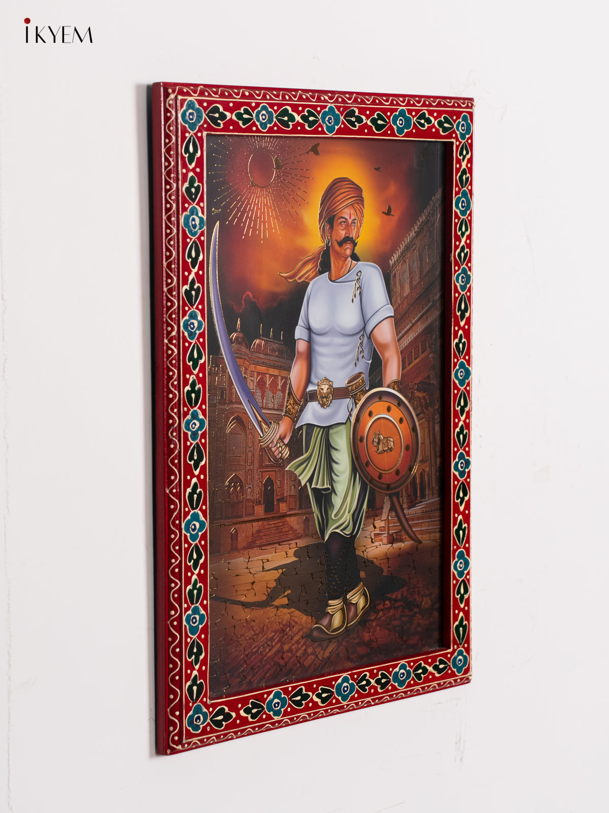 Add a bold statement of valor and heritage to your home with this Hand-Painted Warrior PaintingCrafted from premium-quality wood, this decorative frame measures 20 inches in height and 14 inches in width, making it a bold centerpiece for any wall.. Featuring a resolute warrior standing tall with a sword and shield, this artwork captures the spirit of bravery and honor deeply rooted in Indian history.