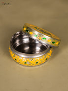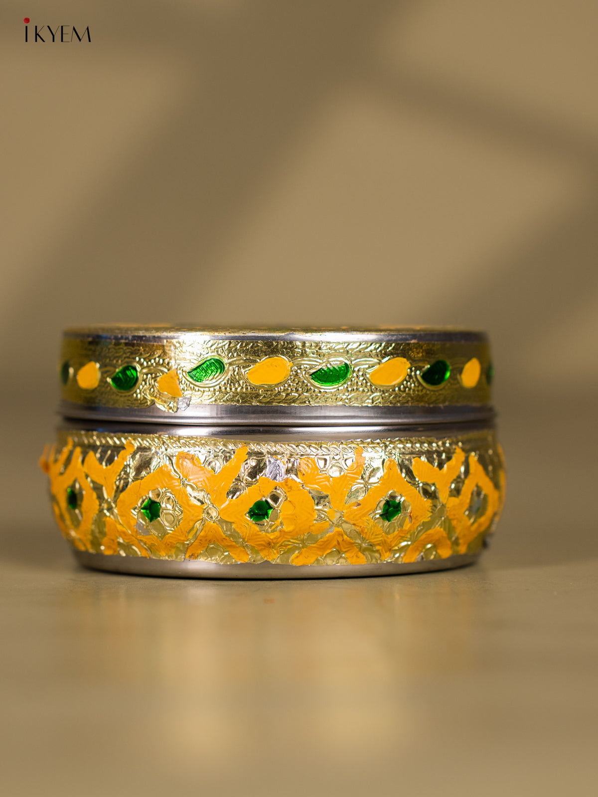 Yellow Meenakari Storage Box with Peacock Design - 4 Inches - KK19111