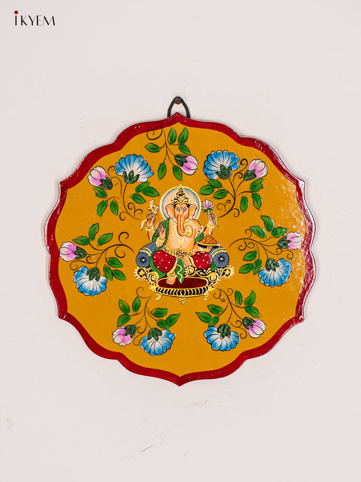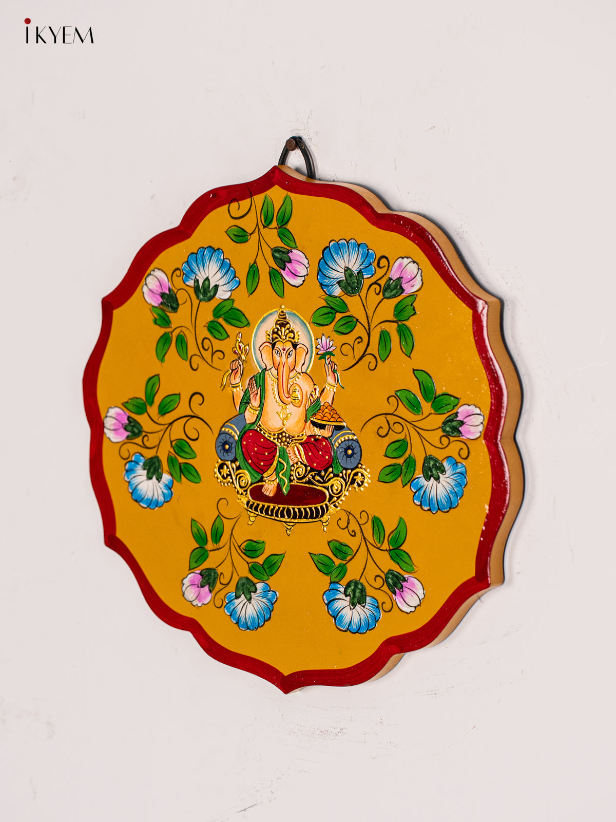Ganesha Hand‑painted Wooden Wall Hanging Plate - 10 Inch - KK22119