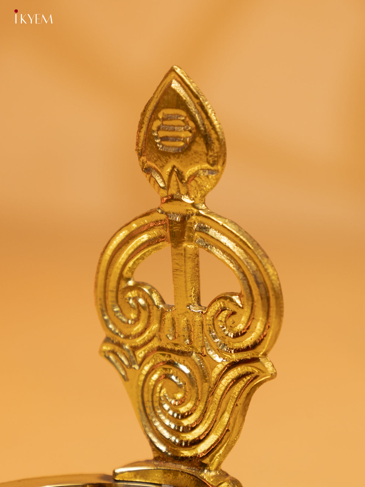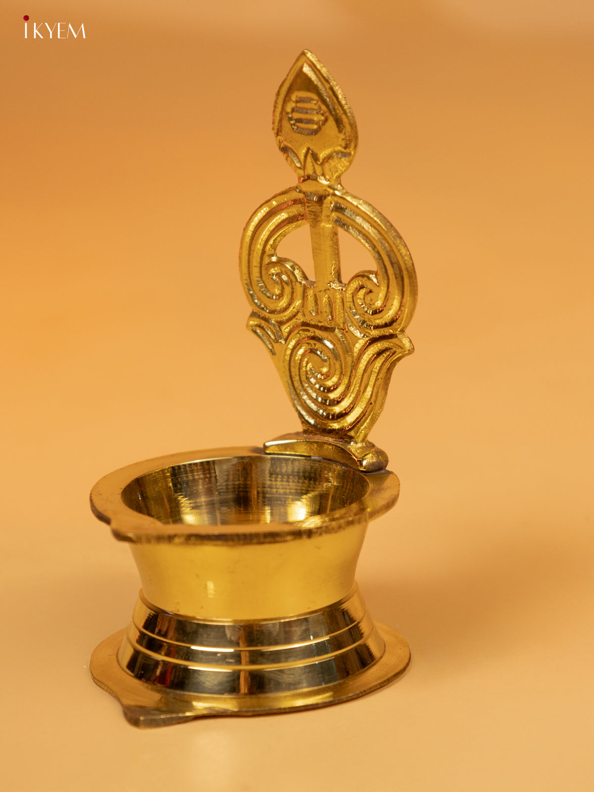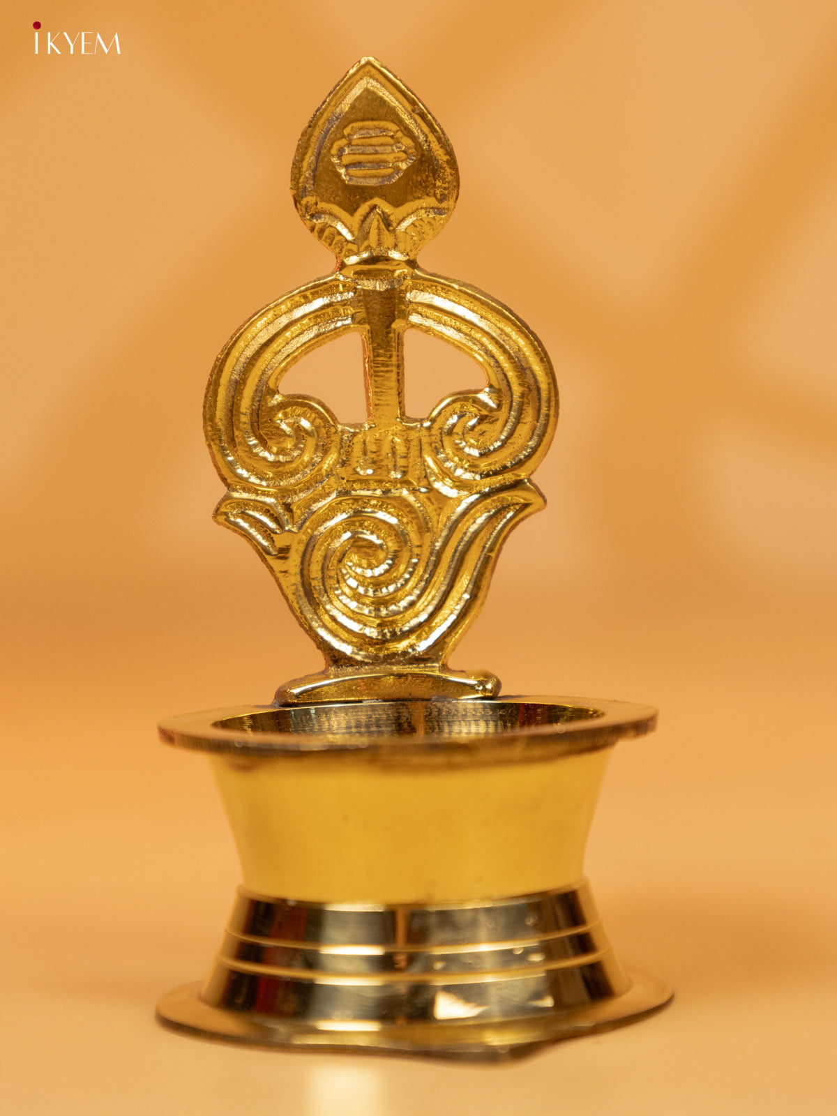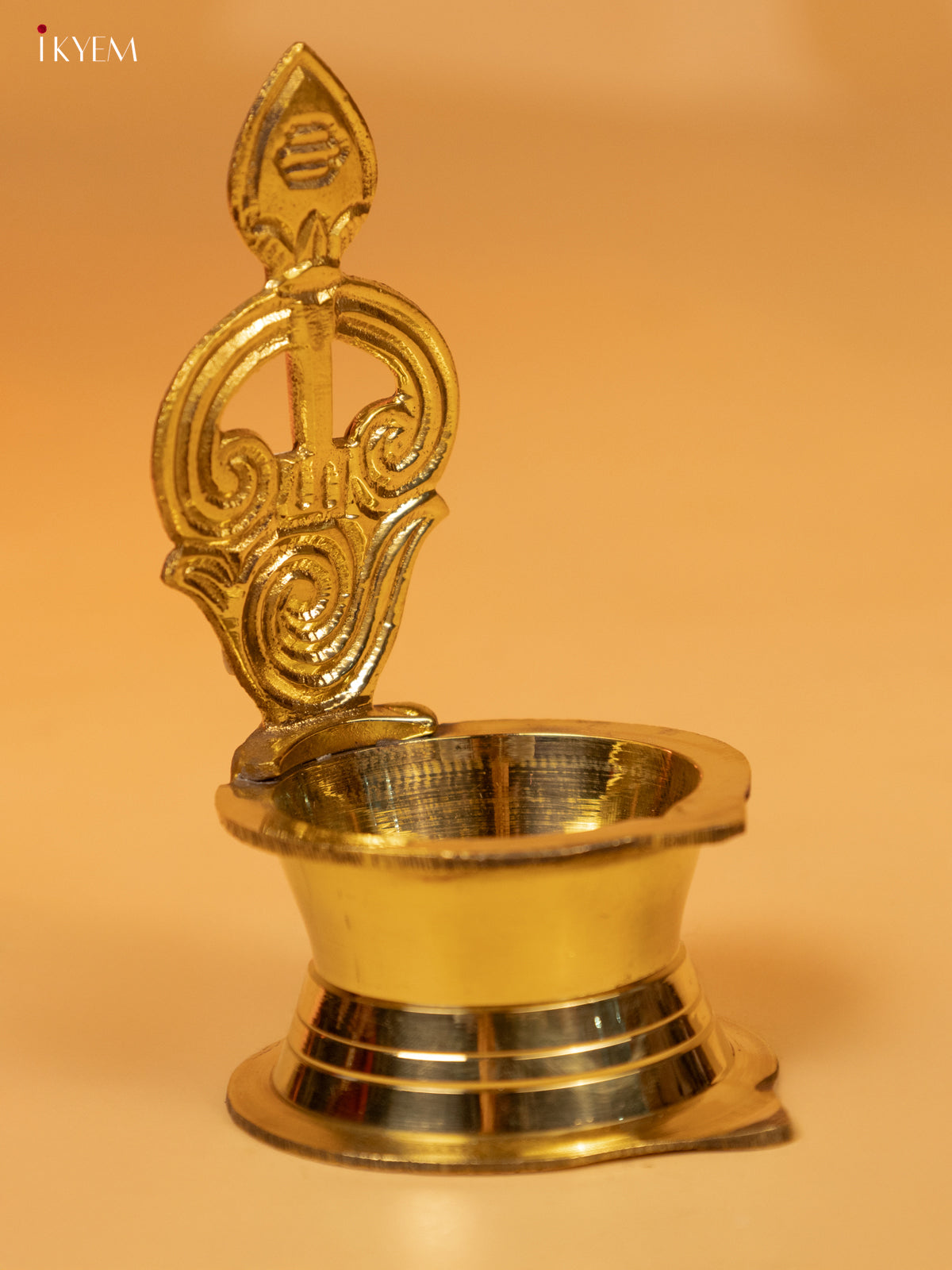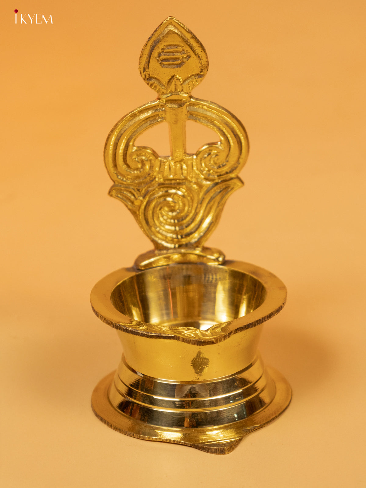- Expertly crafted from brass, this 4.5 inch Brass Om Diya is a must-have for any pooja room.