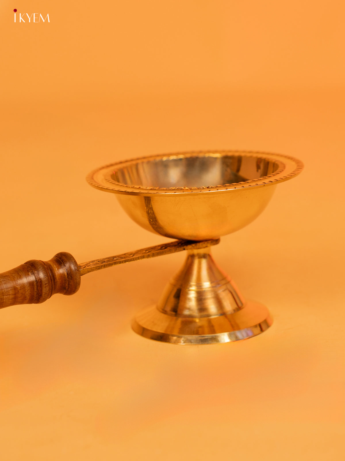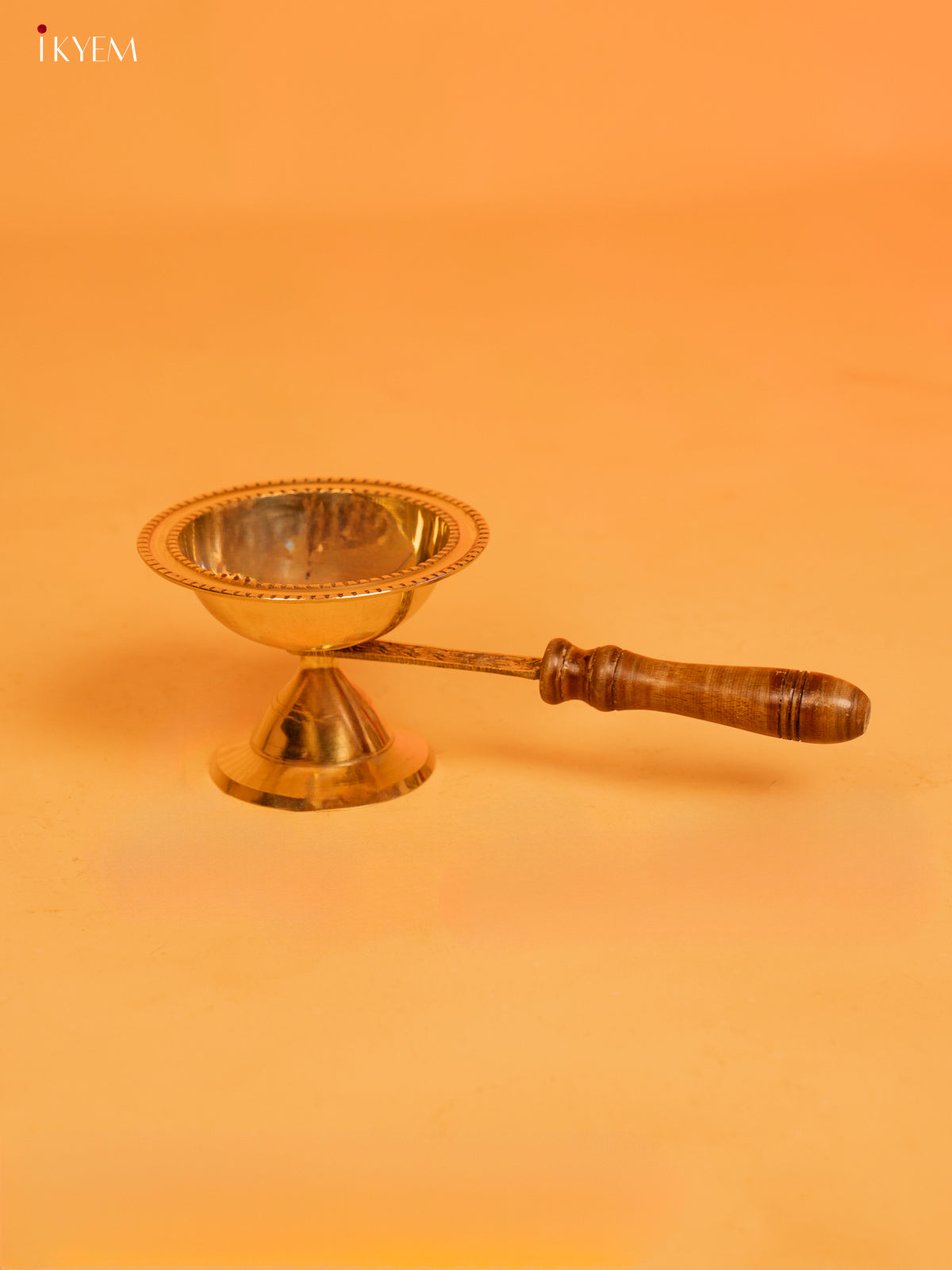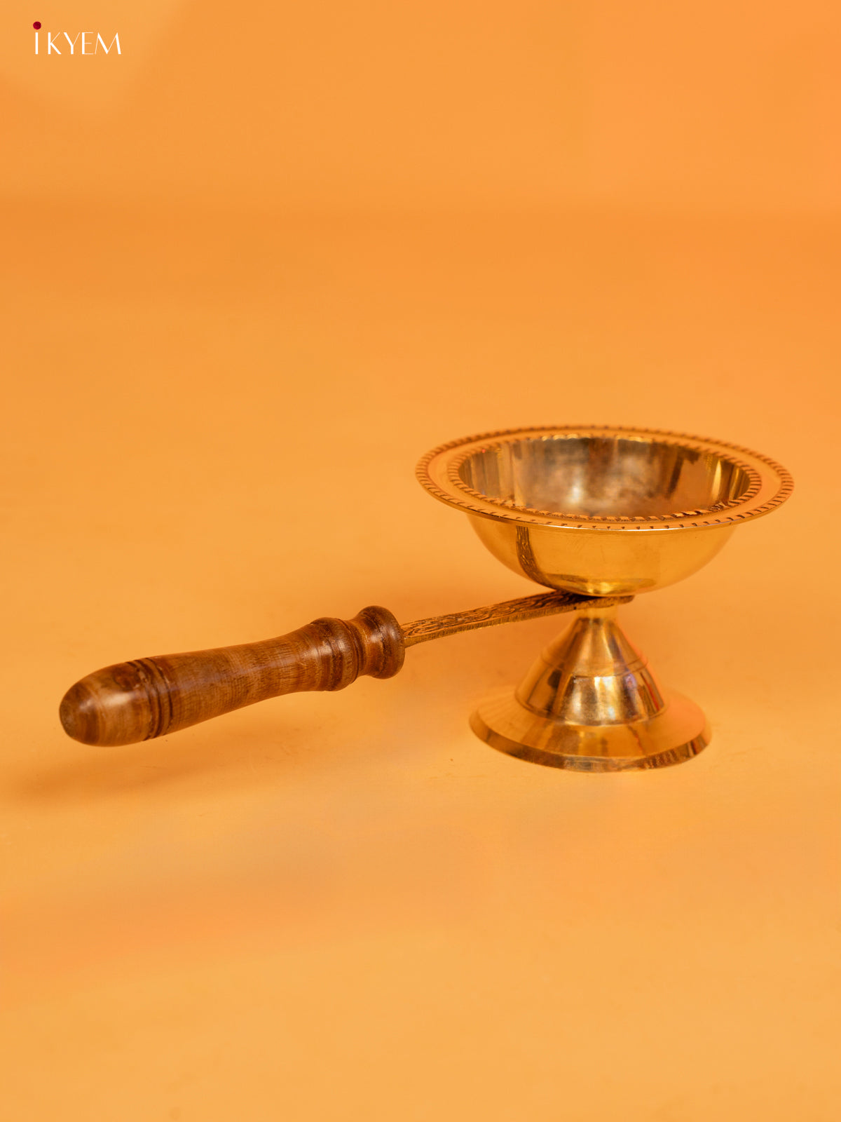 Brass Aarti Lamp with Wooden Handle - KK26121