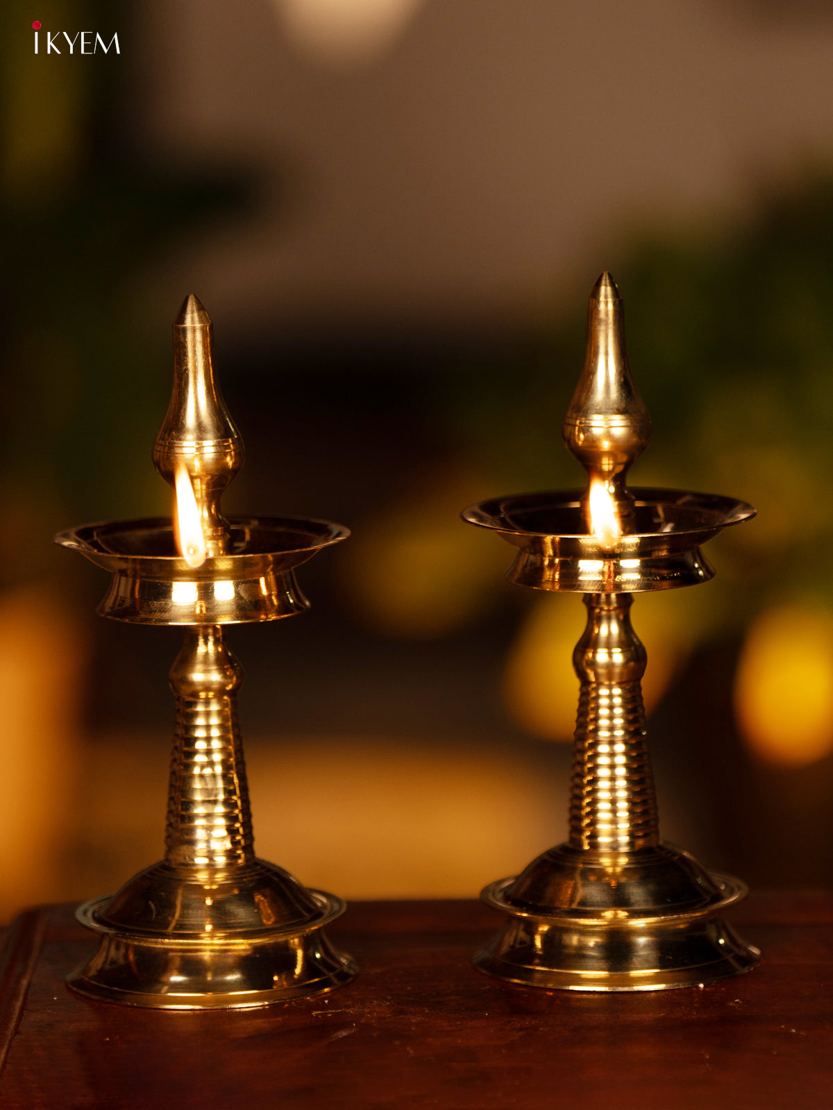 - Expertly crafted from brass Kerala Diya is a traditional Indian lamp used in religious ceremonies and home decor.