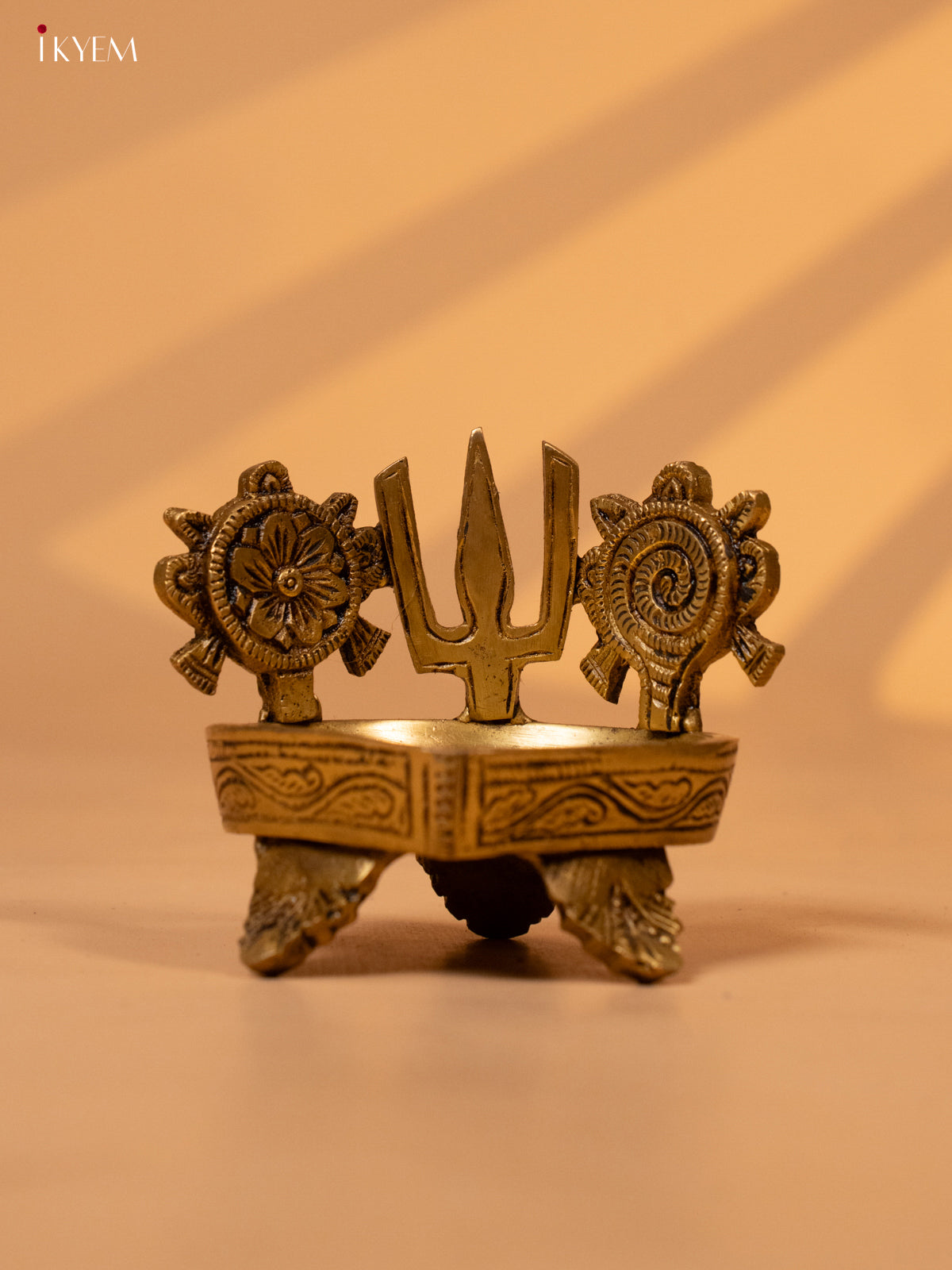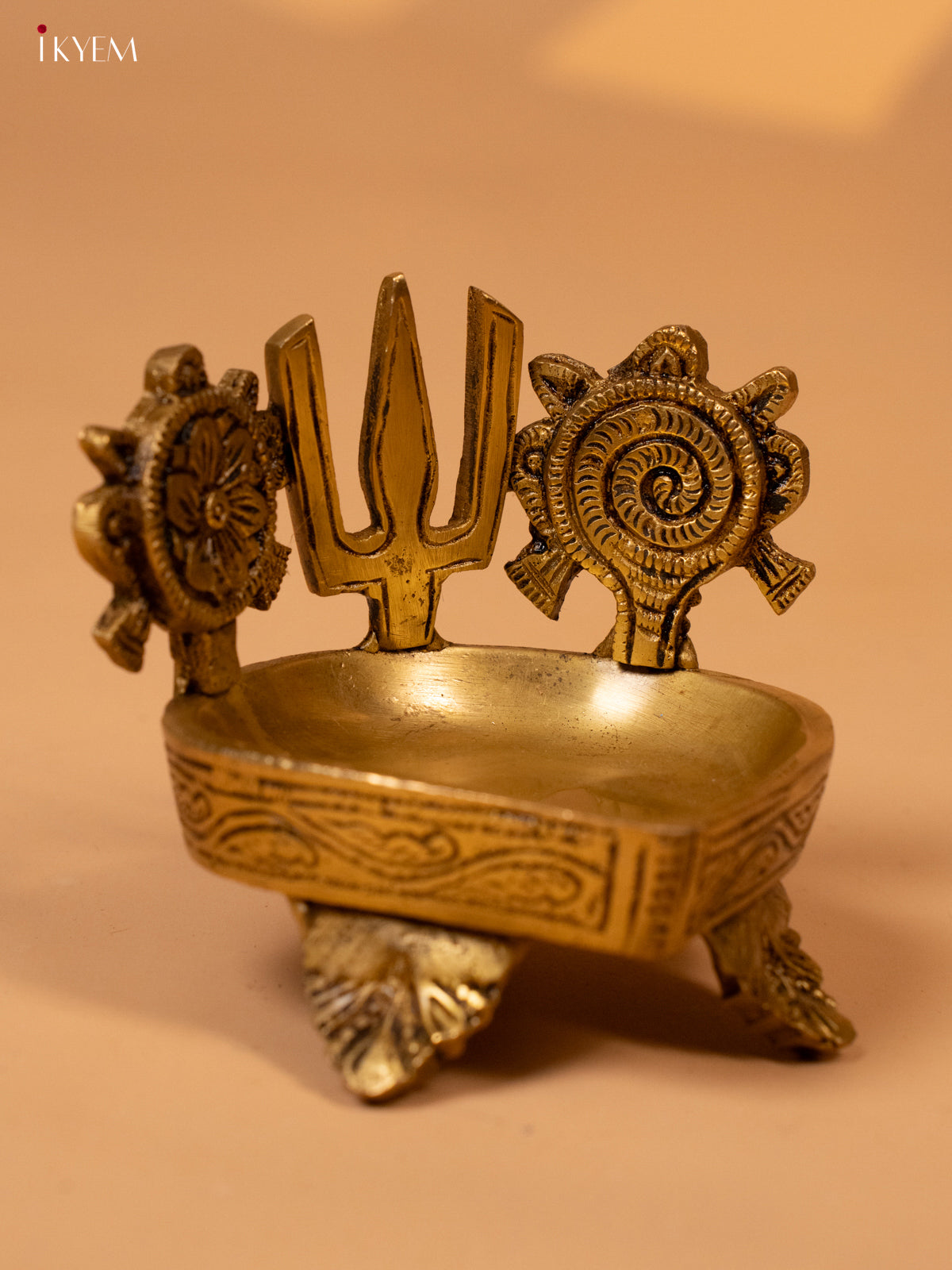 - Enhance your home decor with this Brass Naam Shank Chakra Diya.
