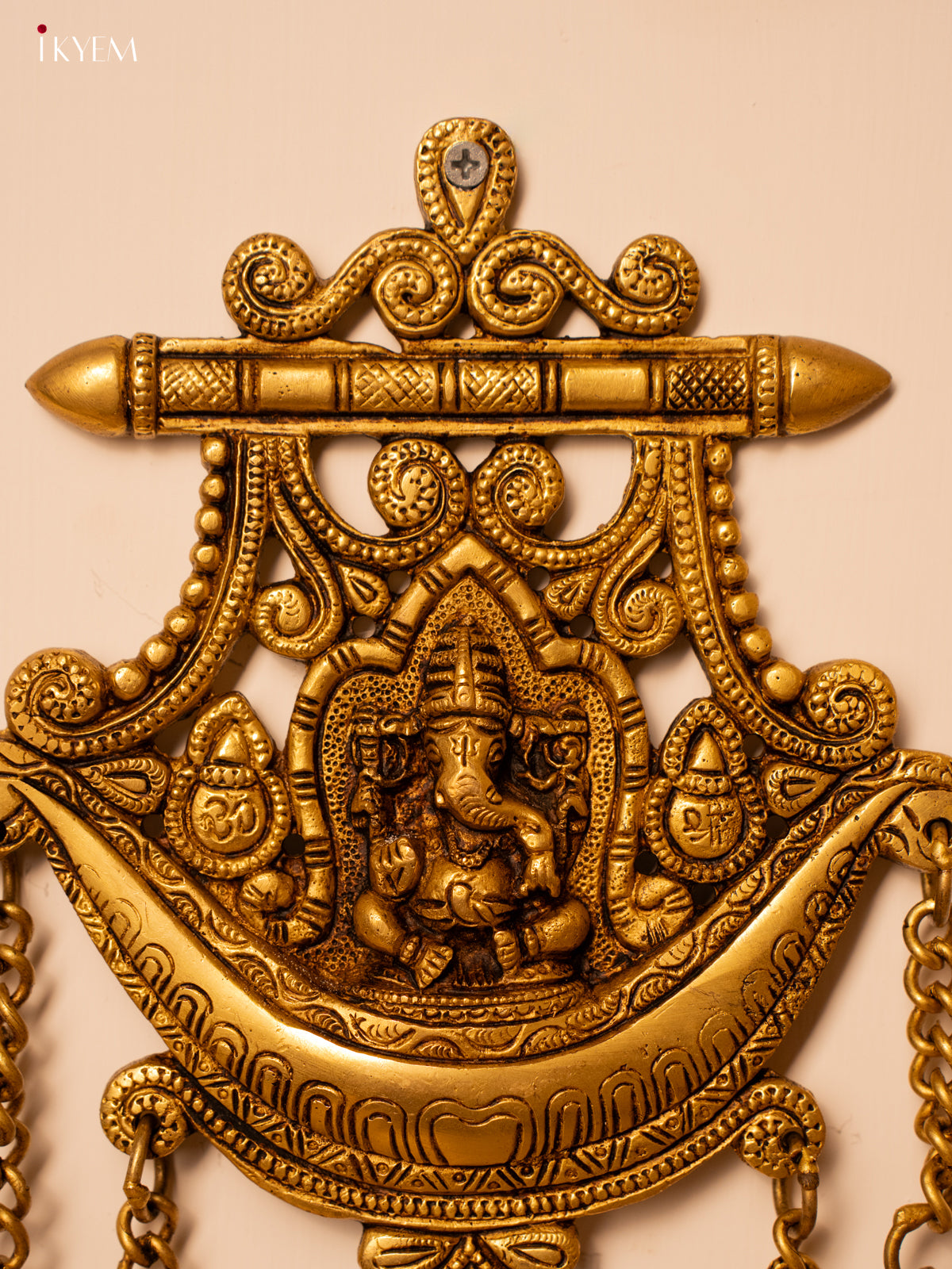 - This Brass Ganesha Wall Hanging with Bells combines the intricate detailing of traditional brass work with the auspicious presence of Lord Ganesha.