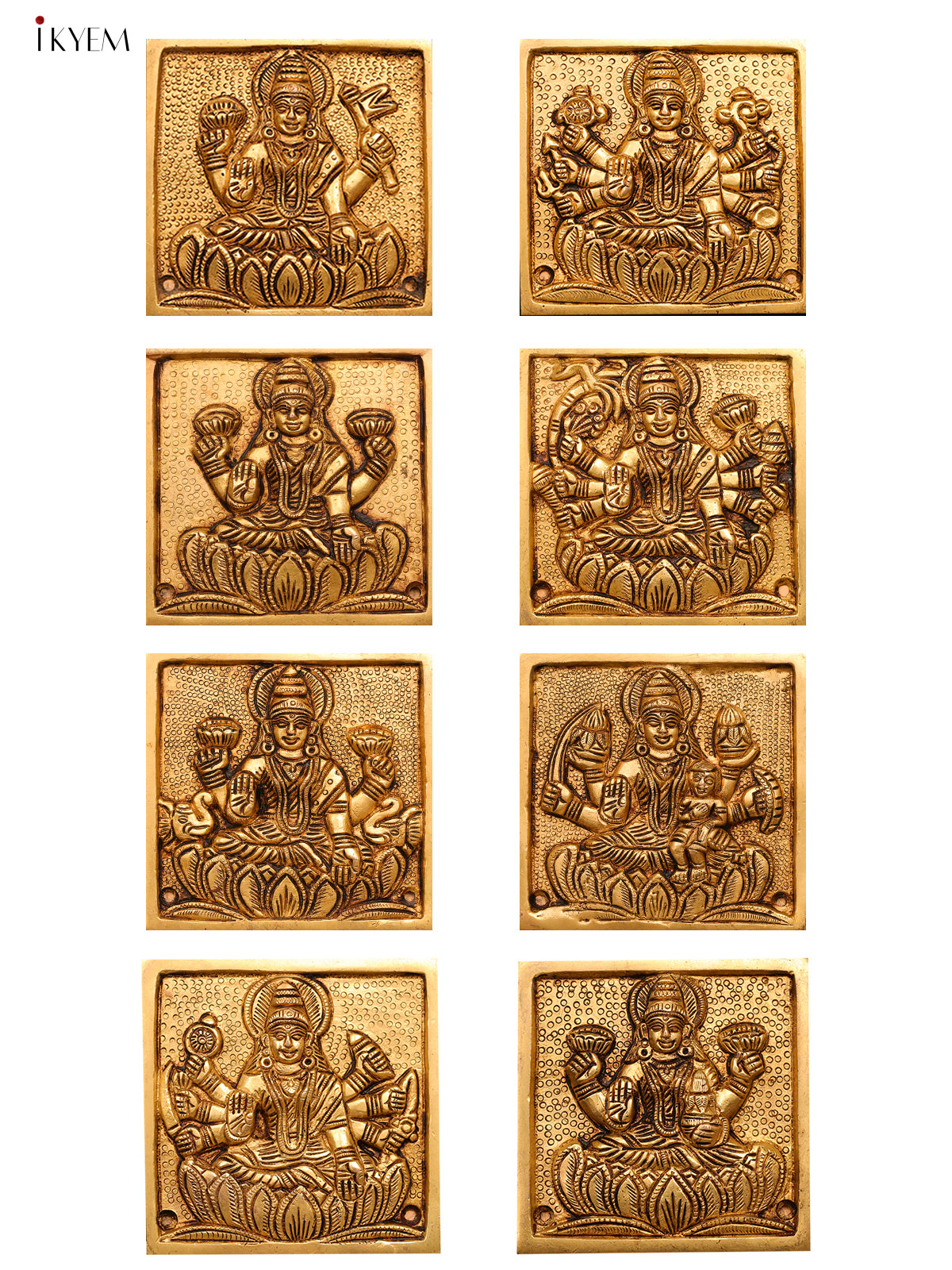 - Made of high-quality brass, these intricately crafted pieces depict the eight forms of the Goddess Lakshmi, symbolizing wealth, prosperity, and abundance.