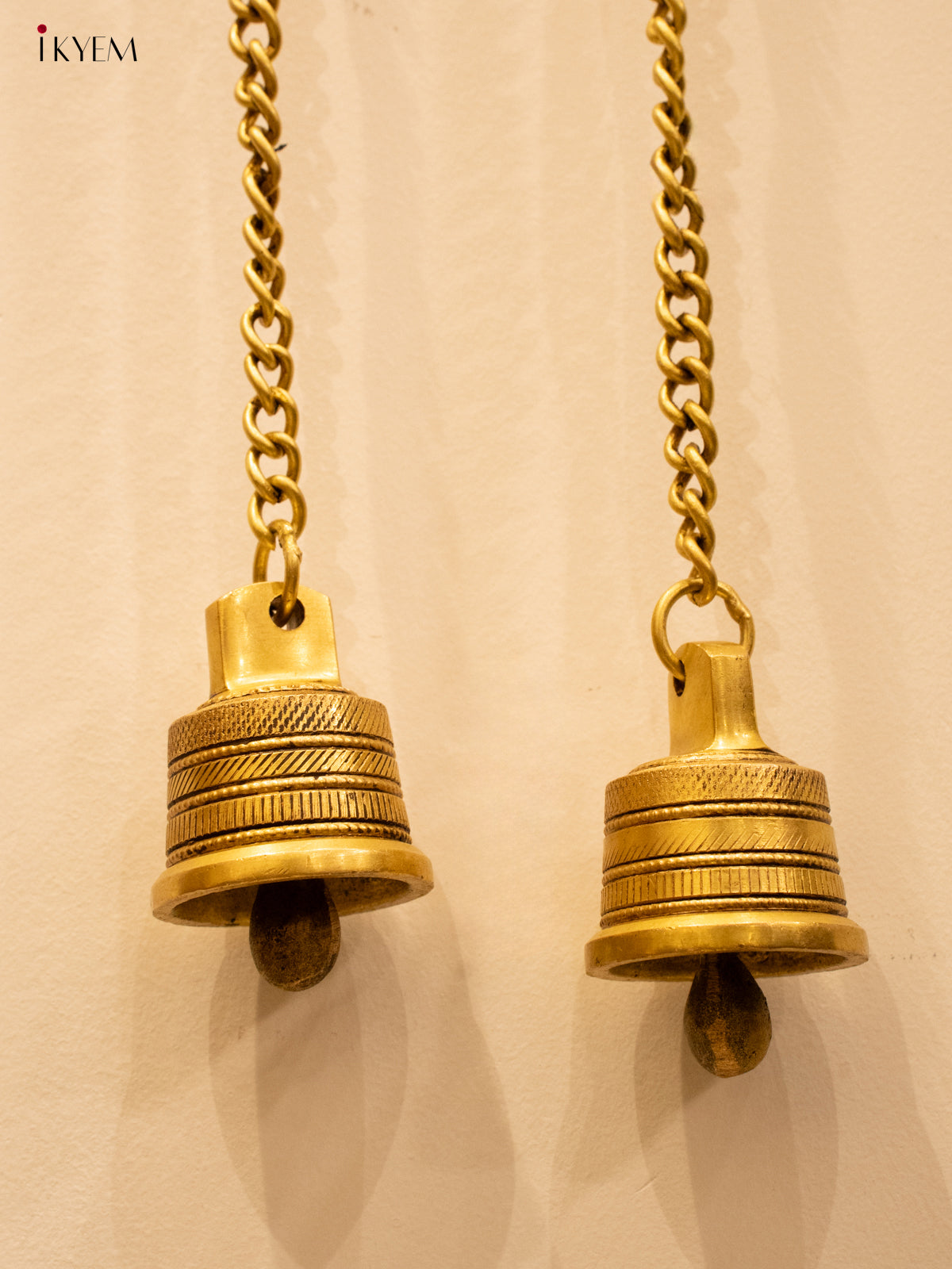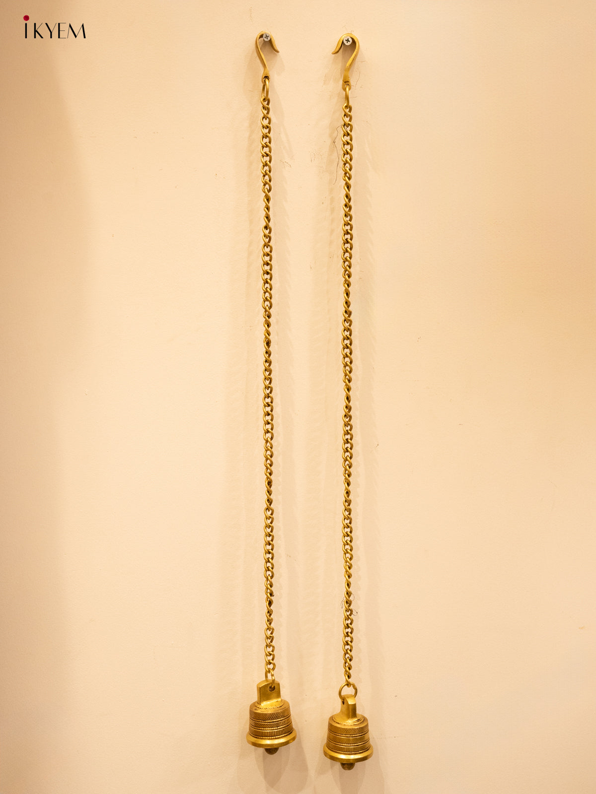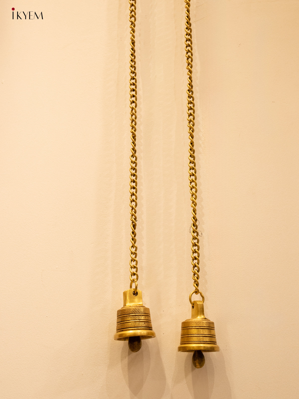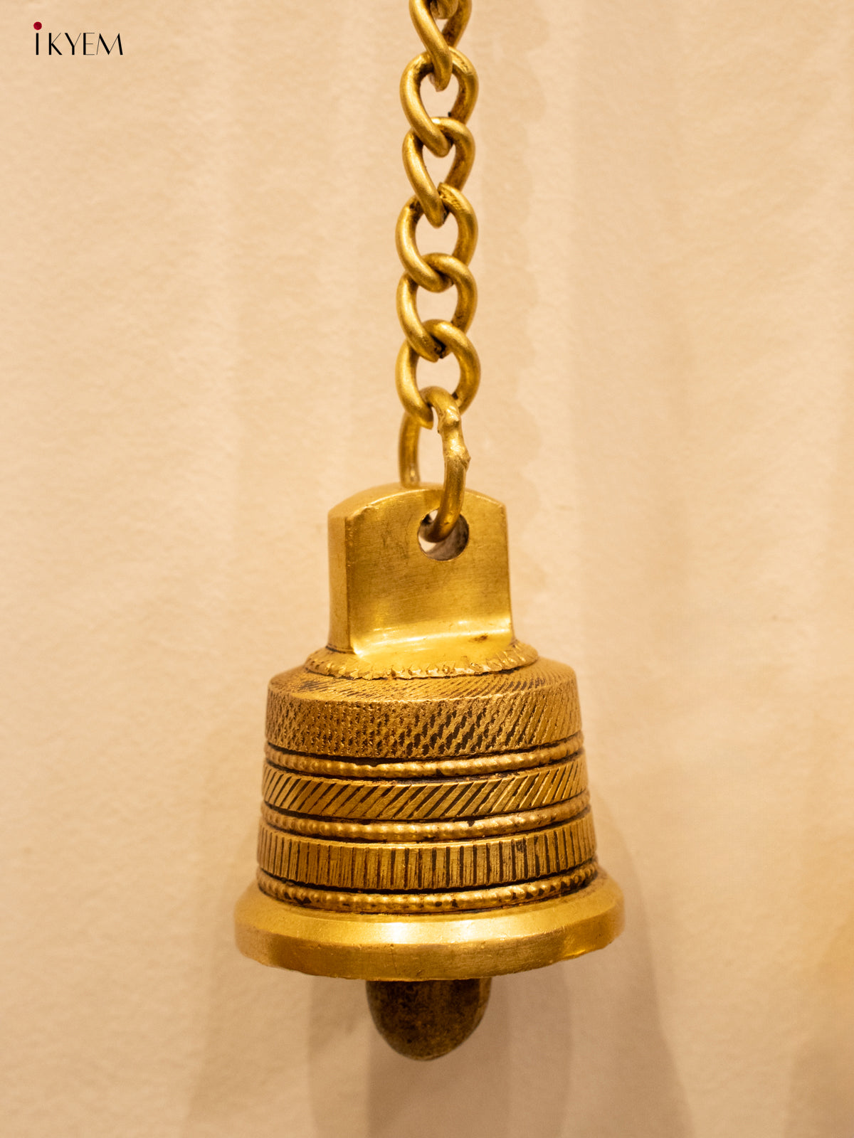 - Expertly crafted from brass, this small wall hanging bell adds a touch of antique beauty to any space.