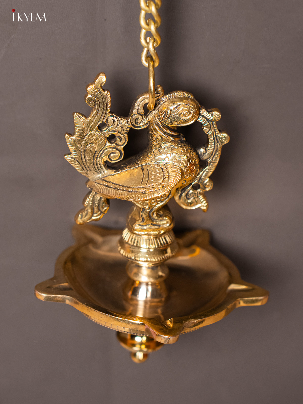 - Illuminate your home with the captivating Brass Annapakshi 5-face Hanging Diya (Set of 2).