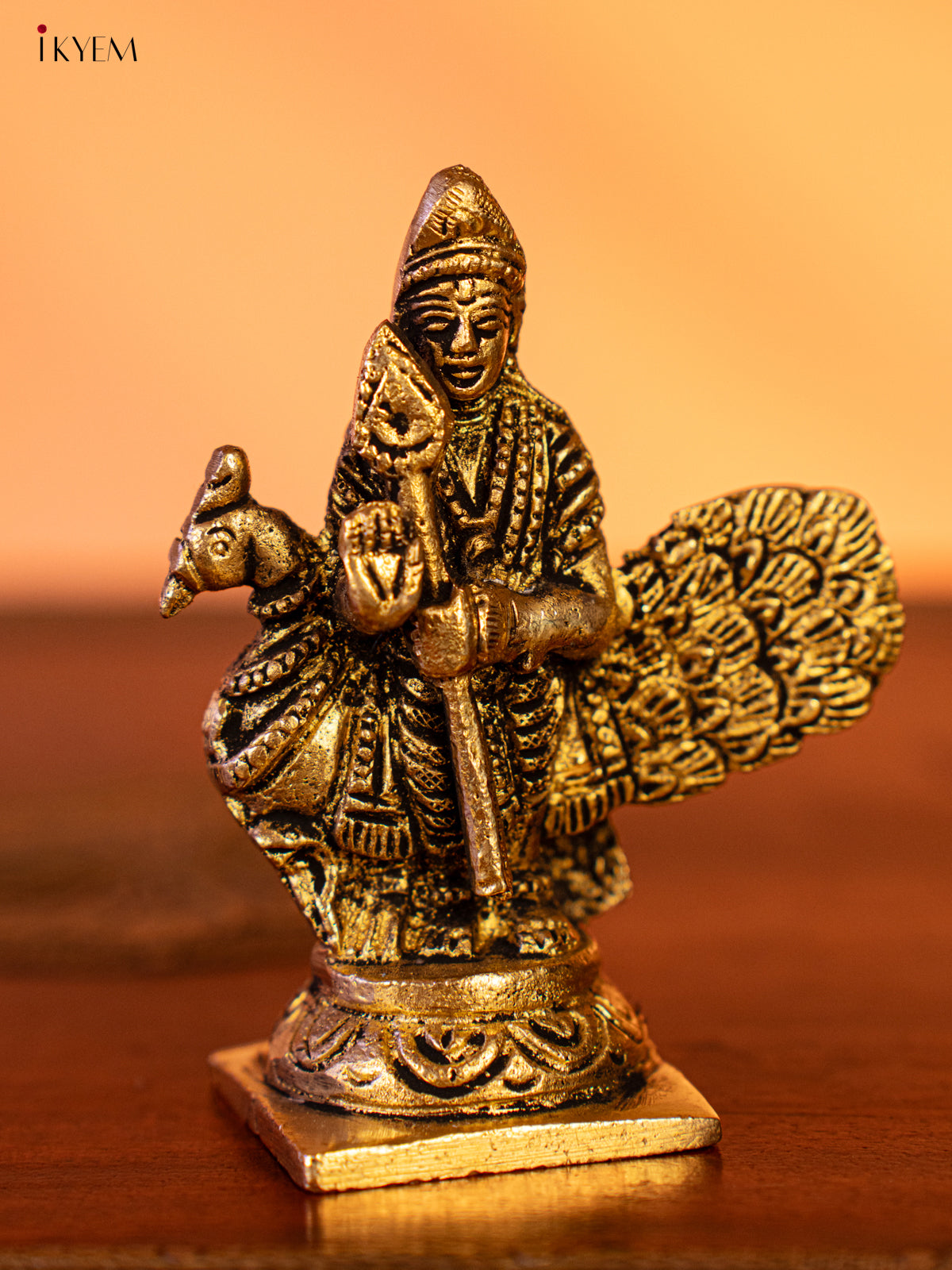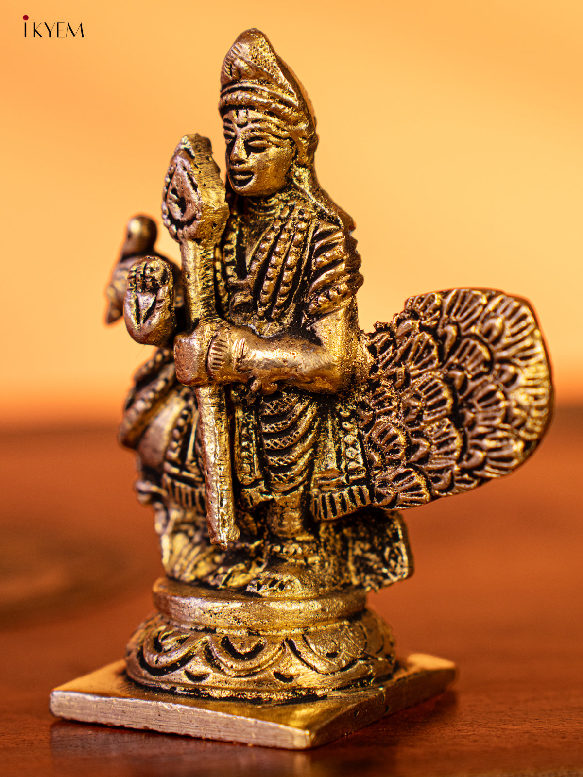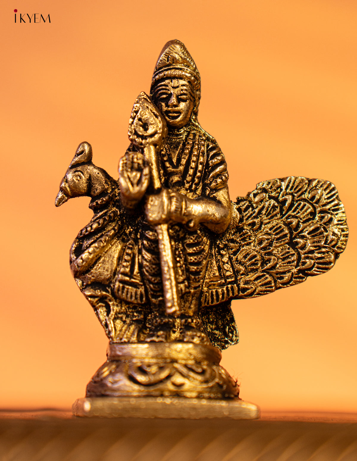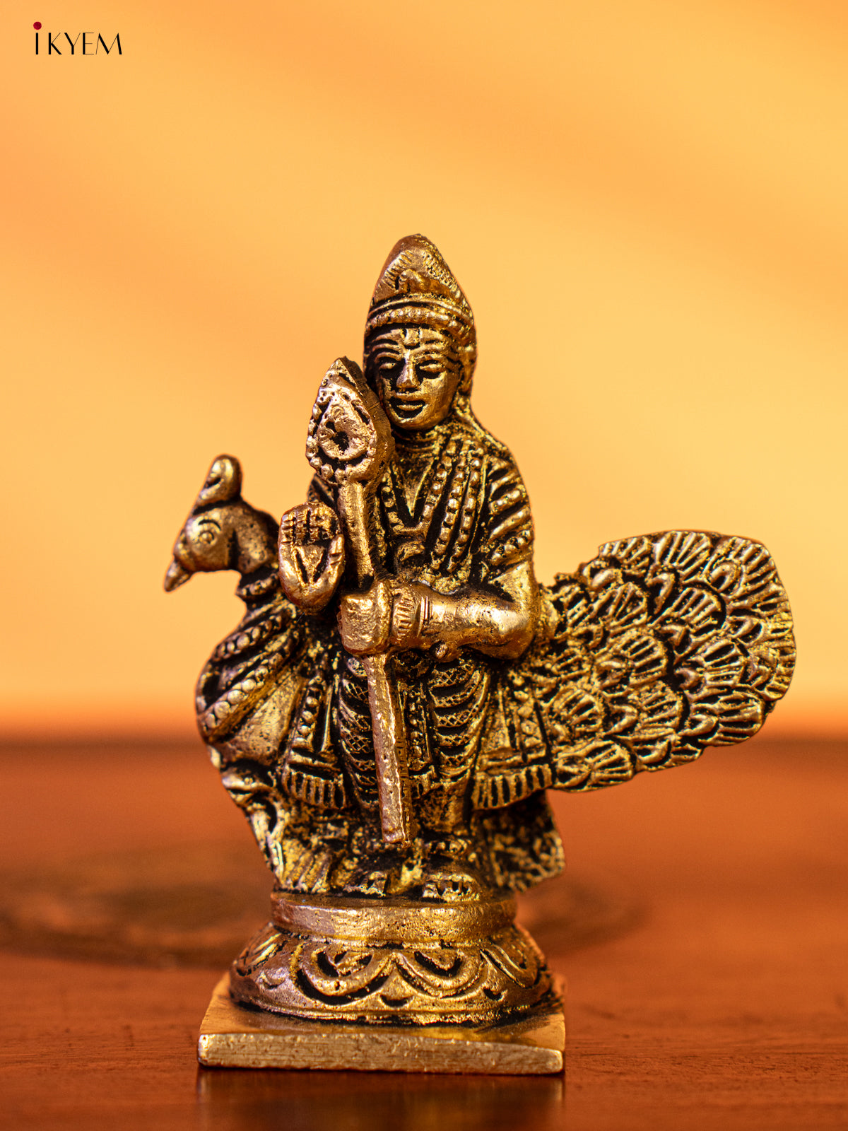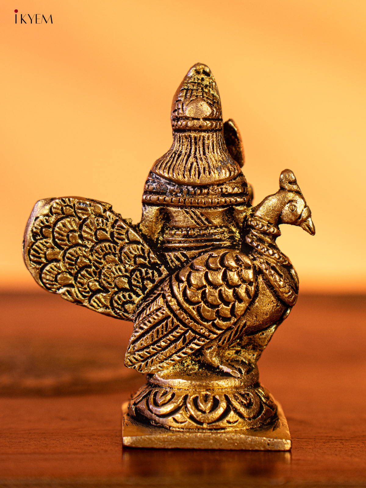 - Crafted with an antique finish, this Brass Murugar with Peacock Idol showcases exquisite handcrafted skill.