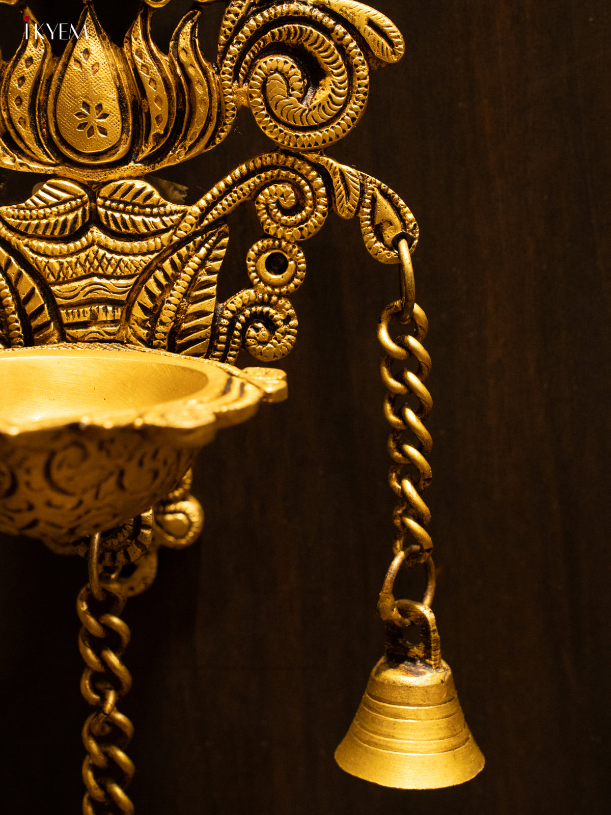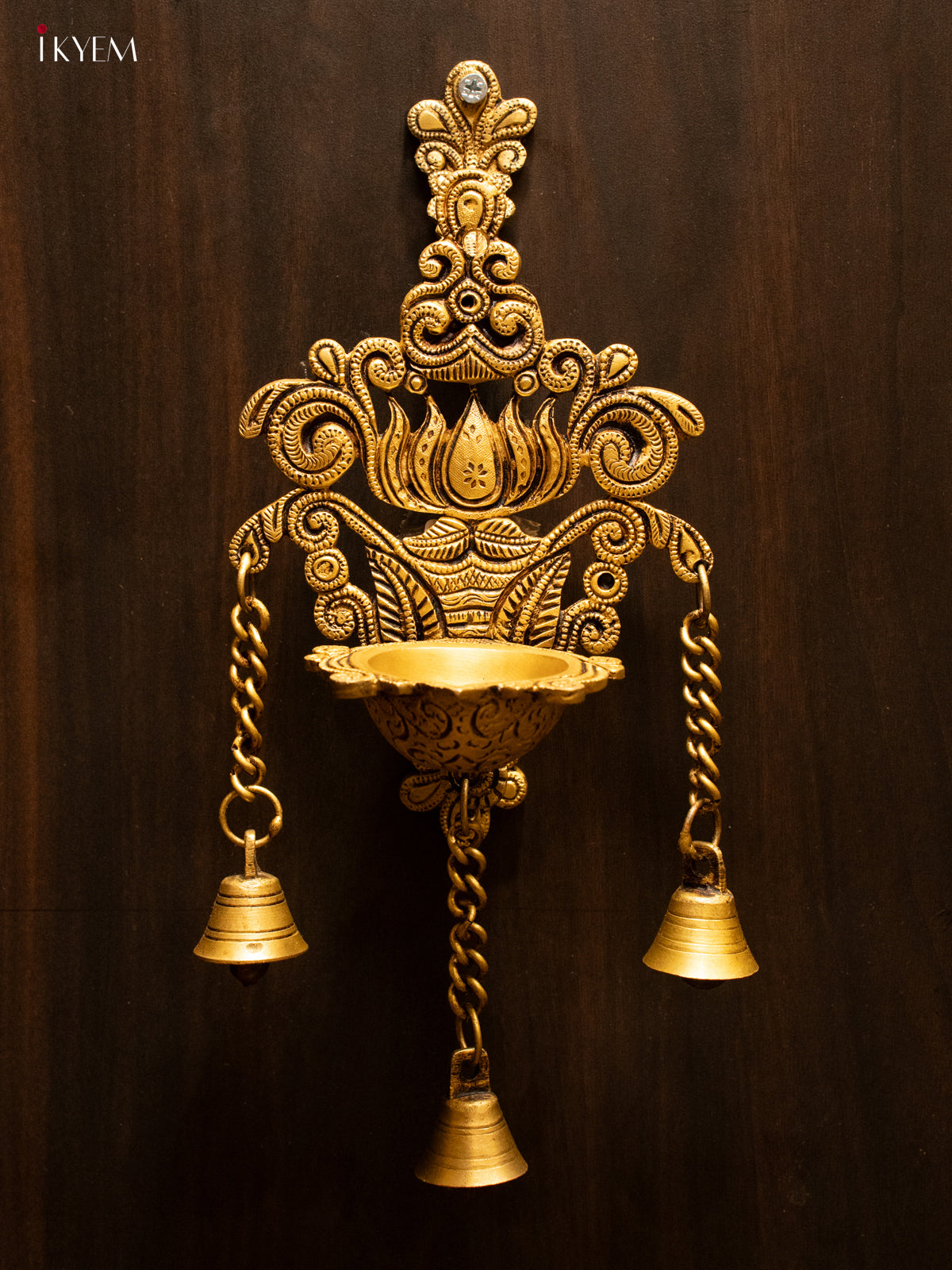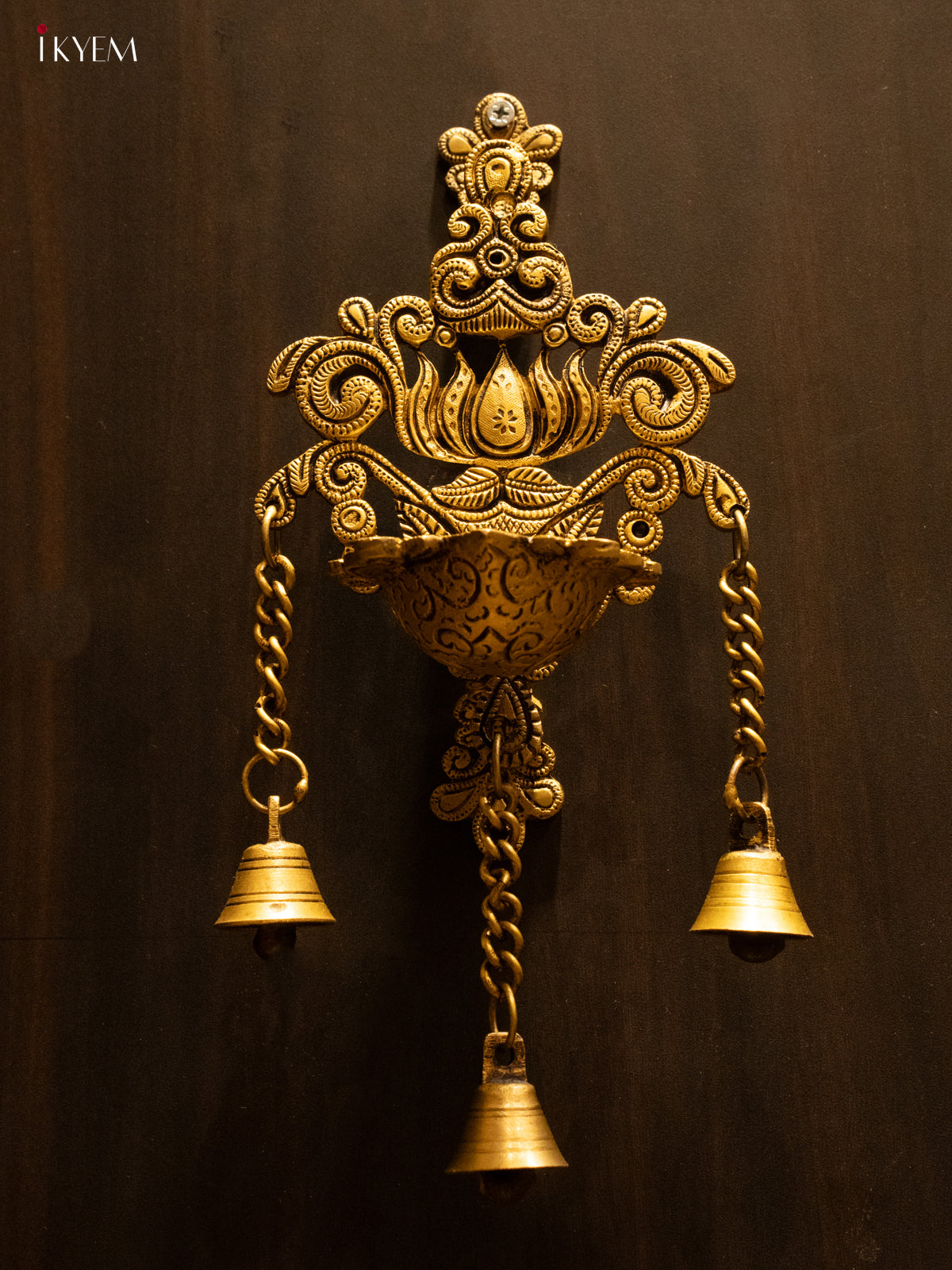 Brass Lotus Wall Hanging Diya with Hanging Bells - KK26186