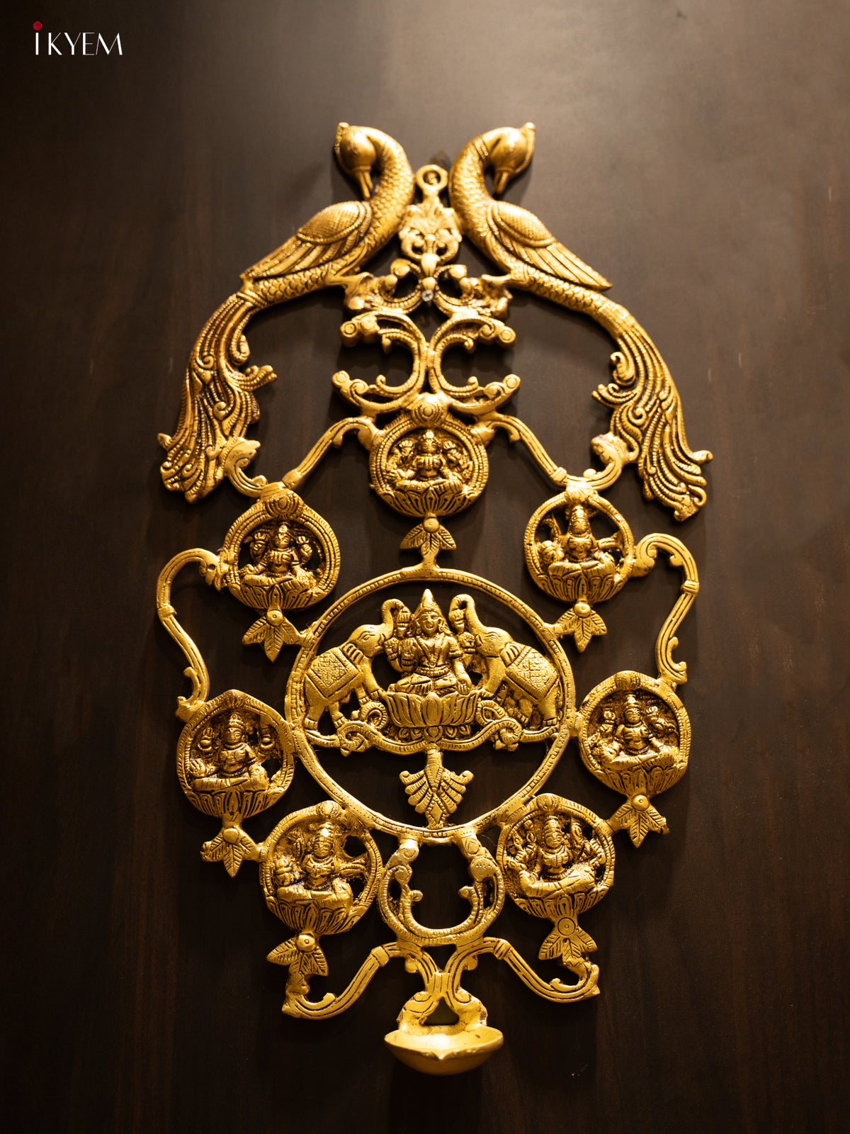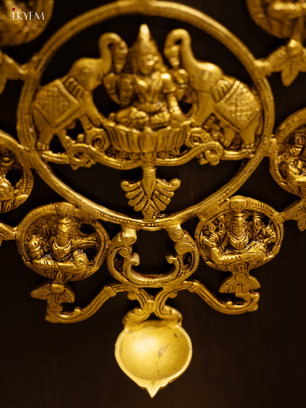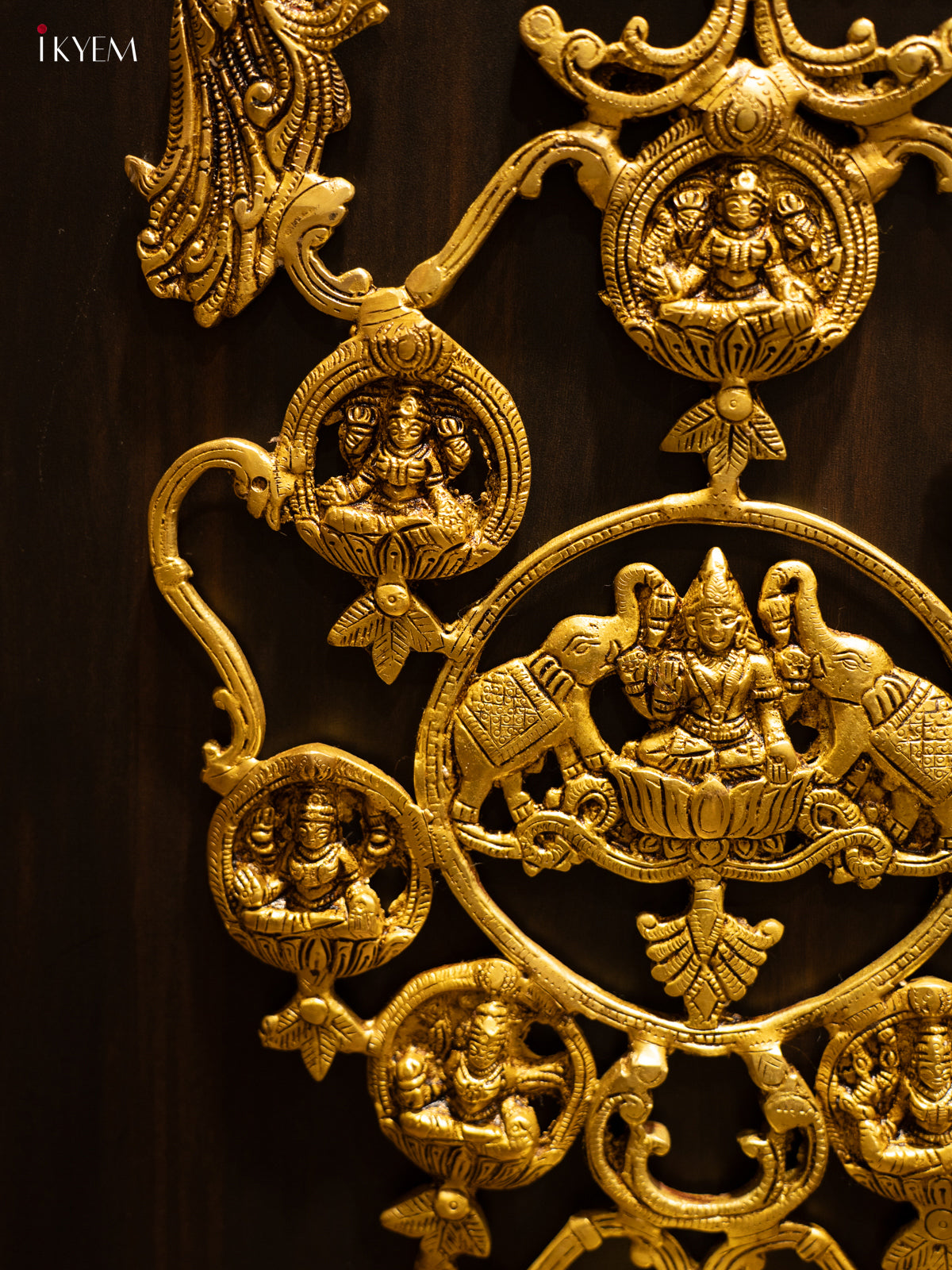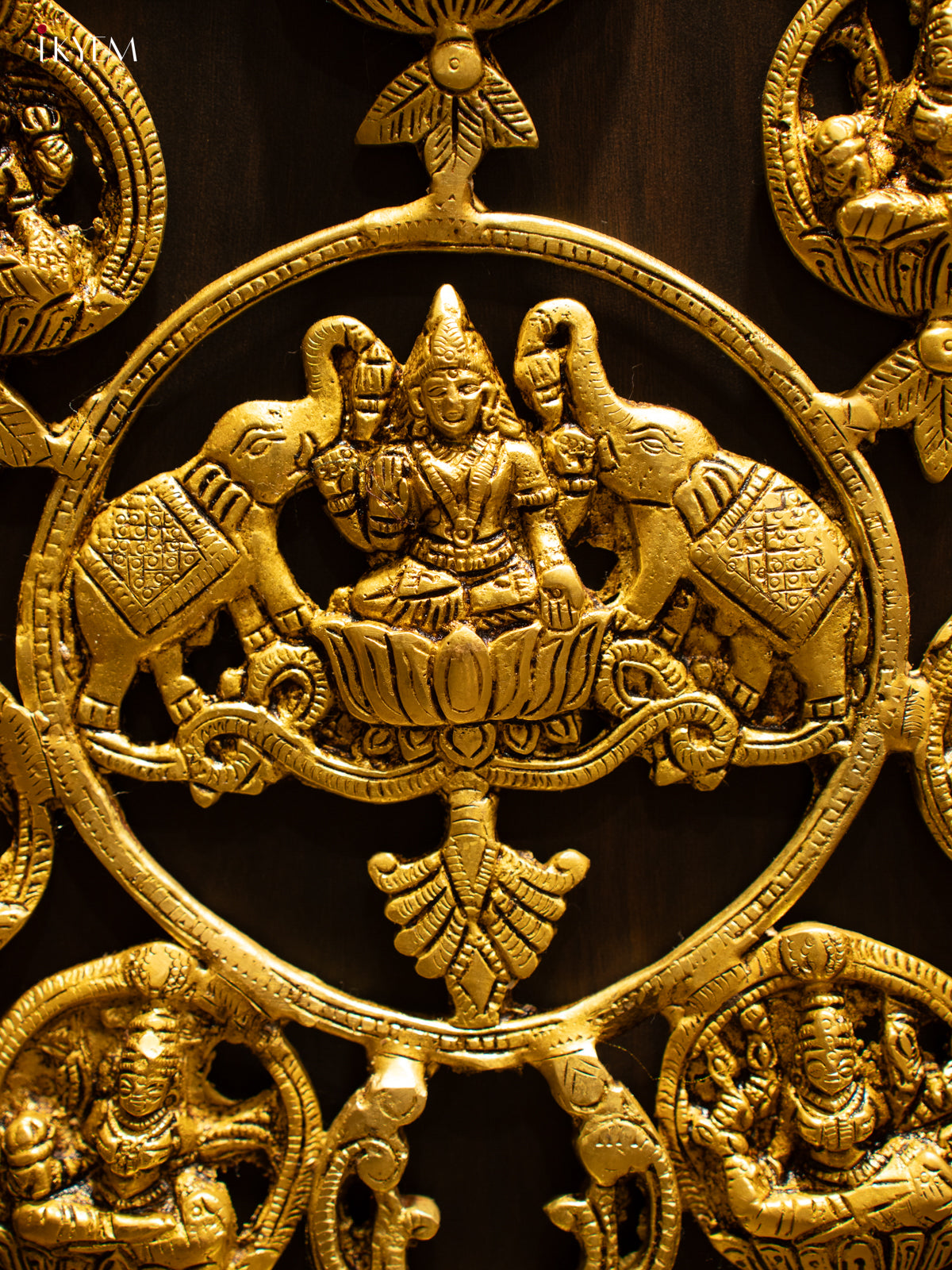 - Made of high-quality brass, this wall hanging features intricate designs of the eight forms of the Hindu Goddess Lakshmi.