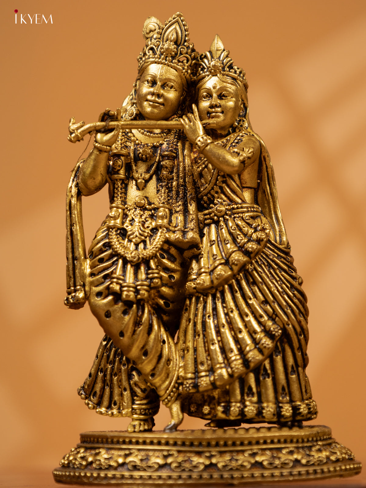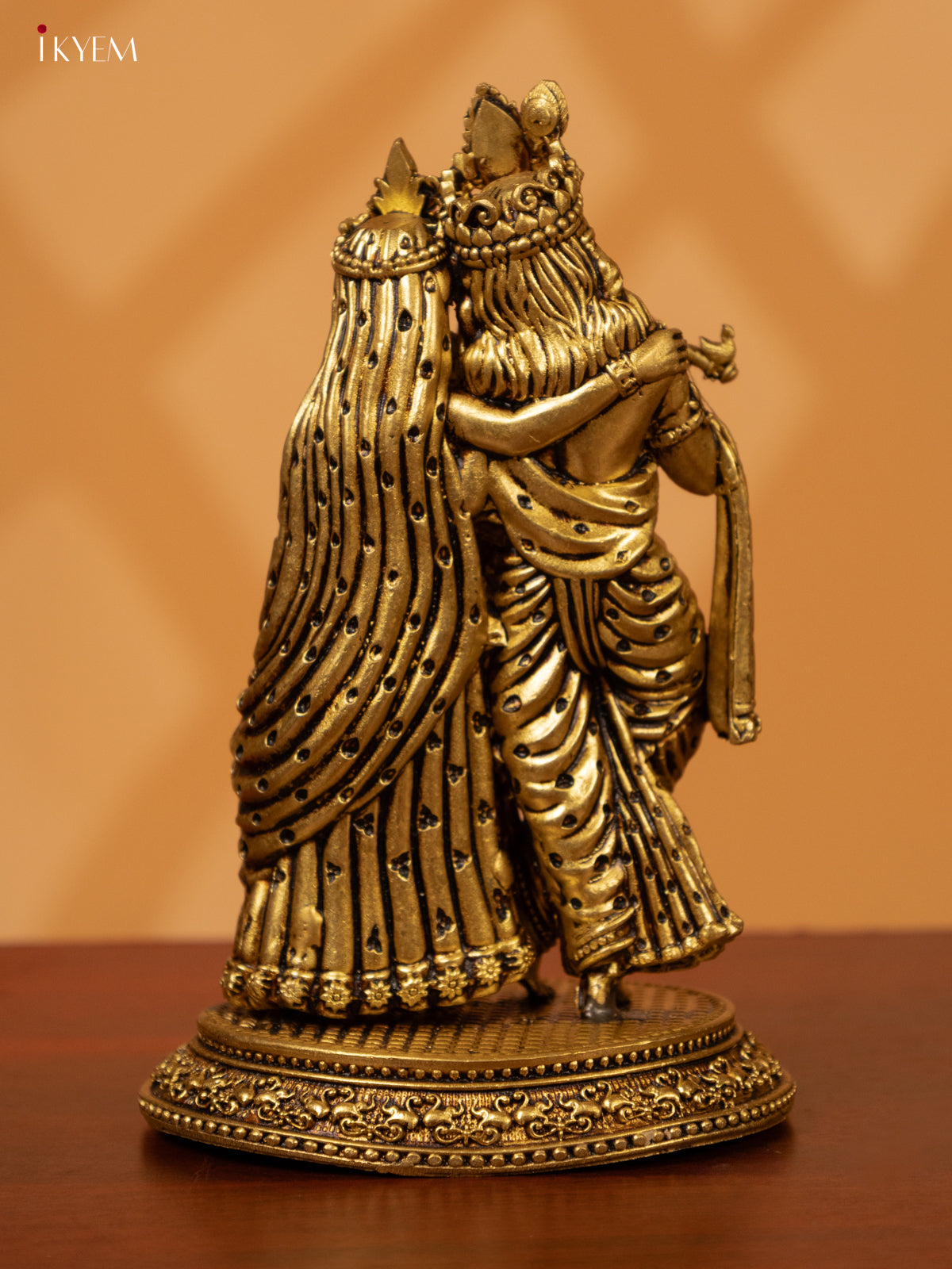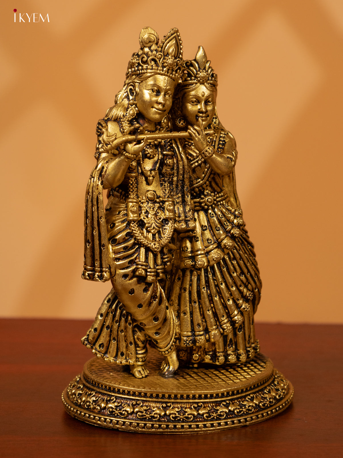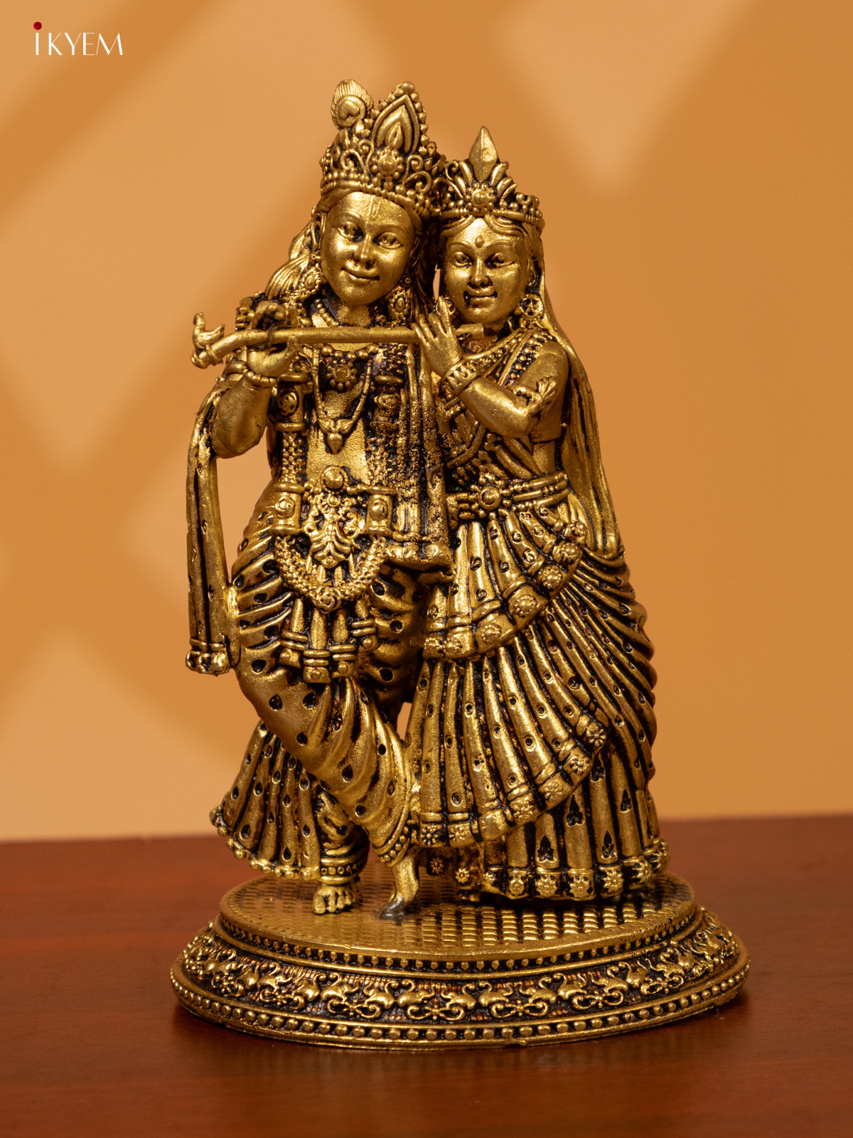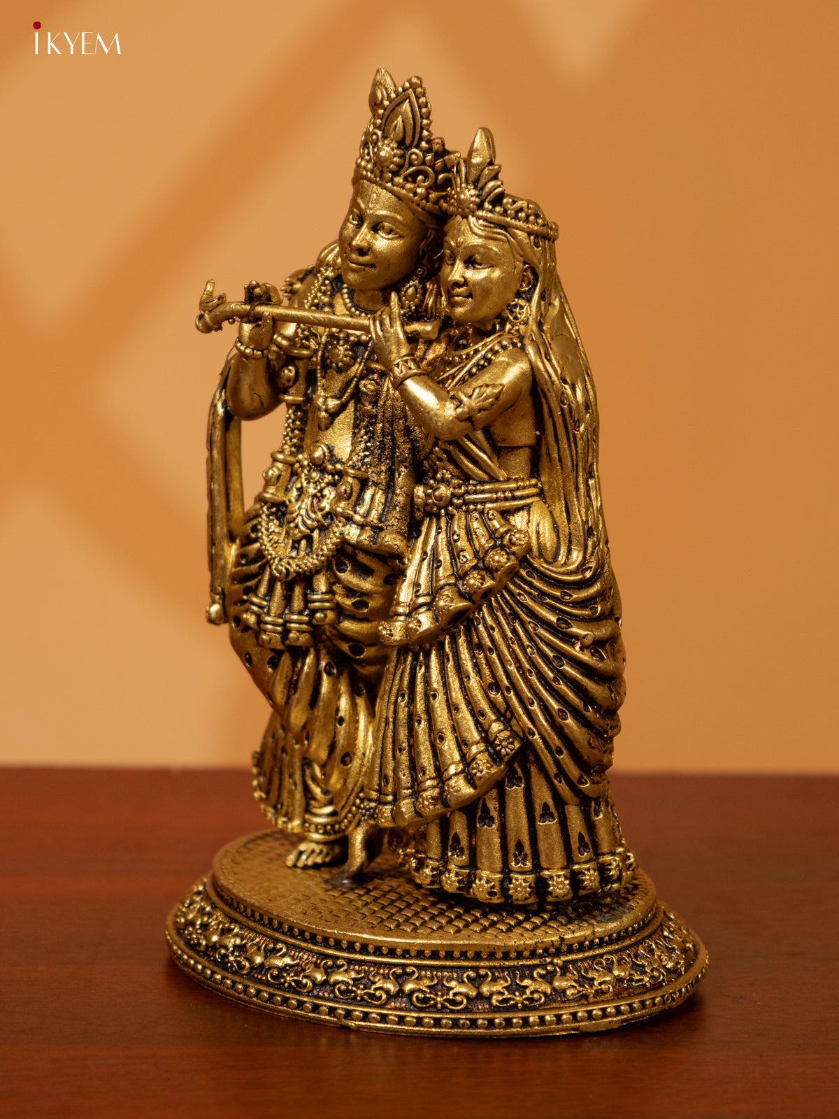- Expertly crafted from brass, this Radha Krishna idol is a beautiful addition to any pooja room.