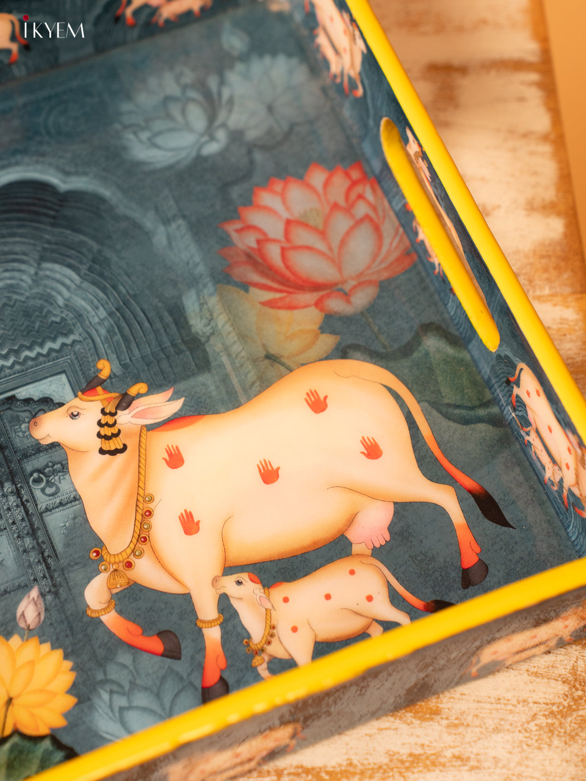 - This 10x10 Digital Printed Tray showcases a beautiful Pichwai design.