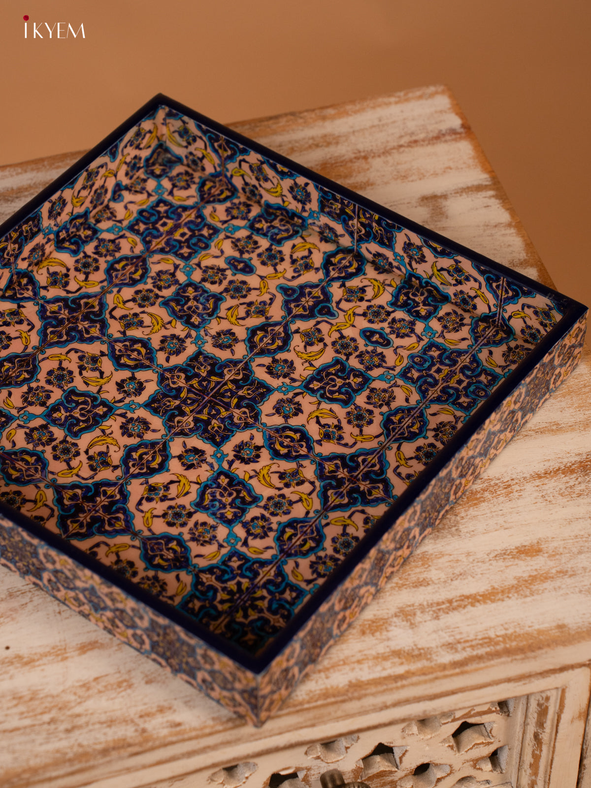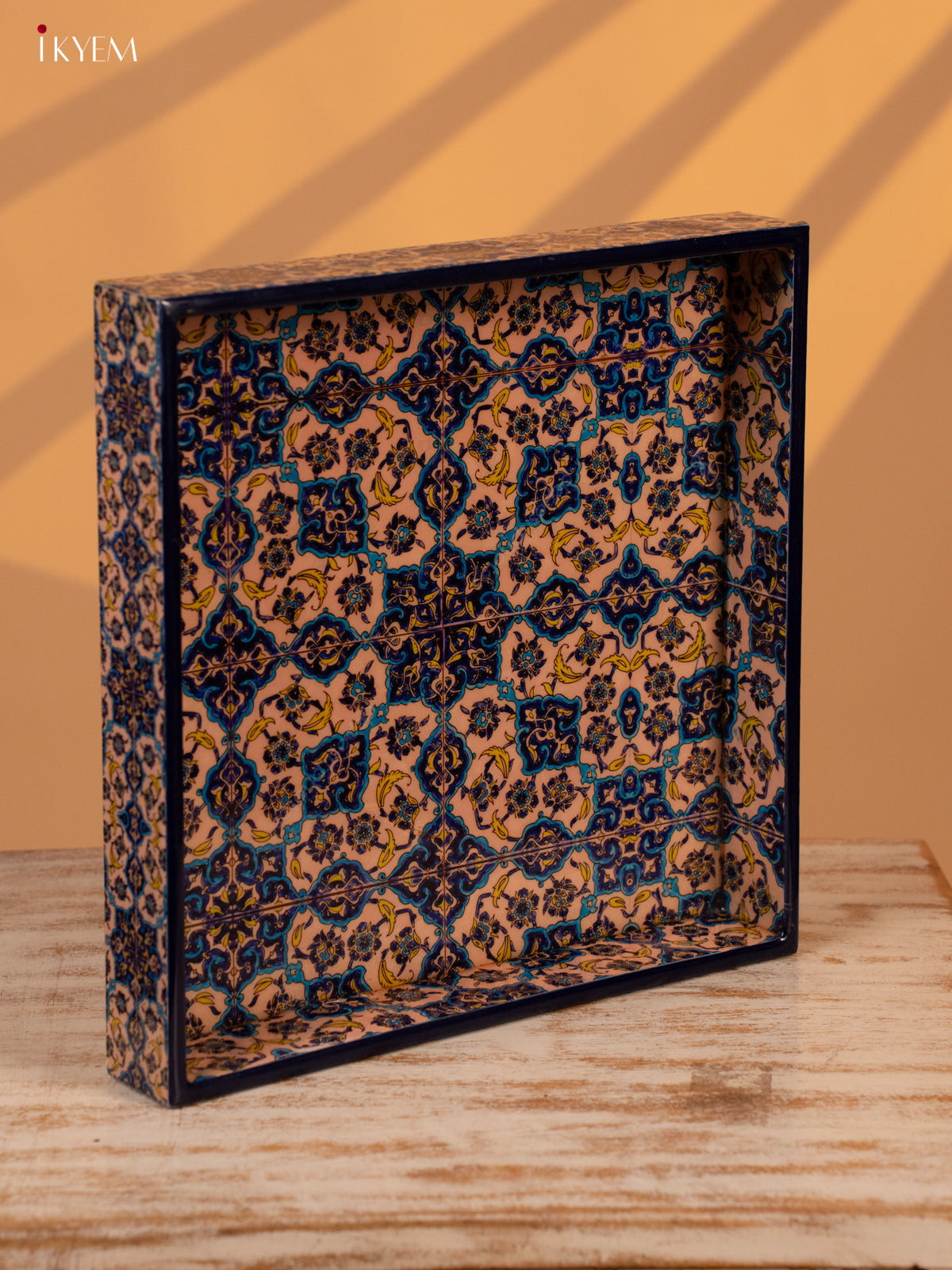 Digital Printed Square Tray (10x10) - Blue & Beige - KL03123