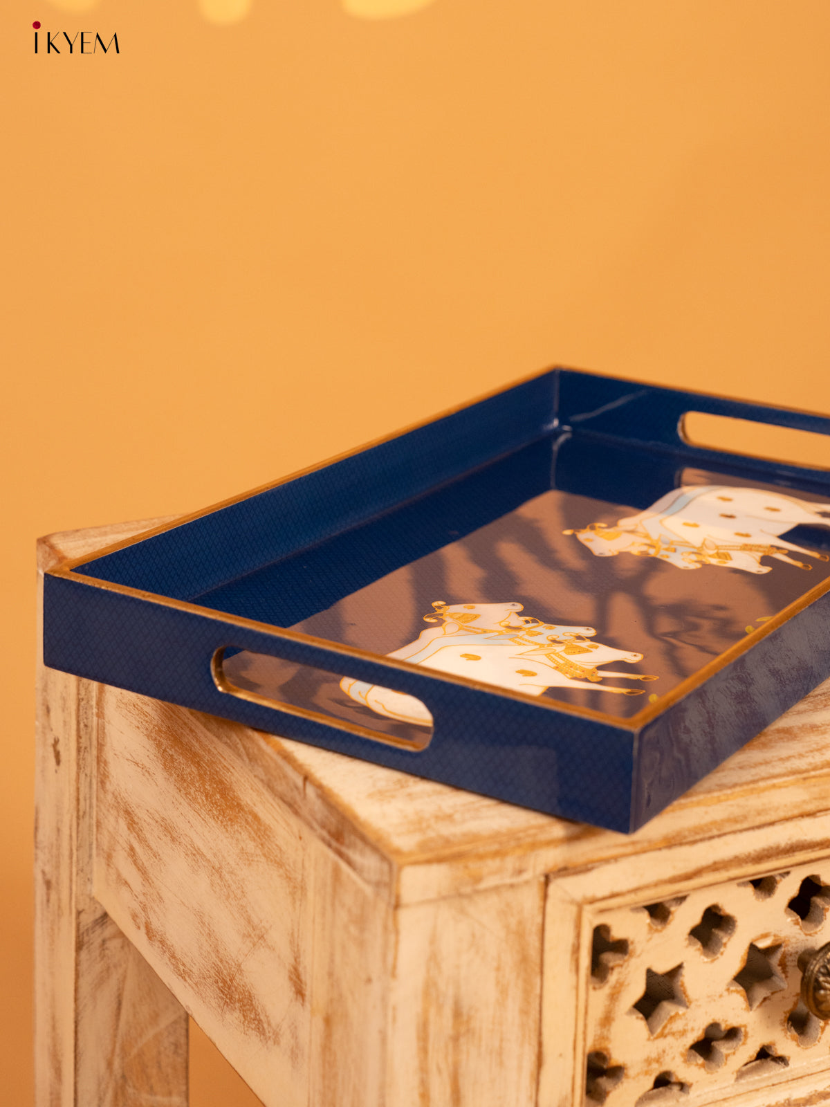 Digital Printed Tray - Large (16X10) - Pichwai Blue - KL03134