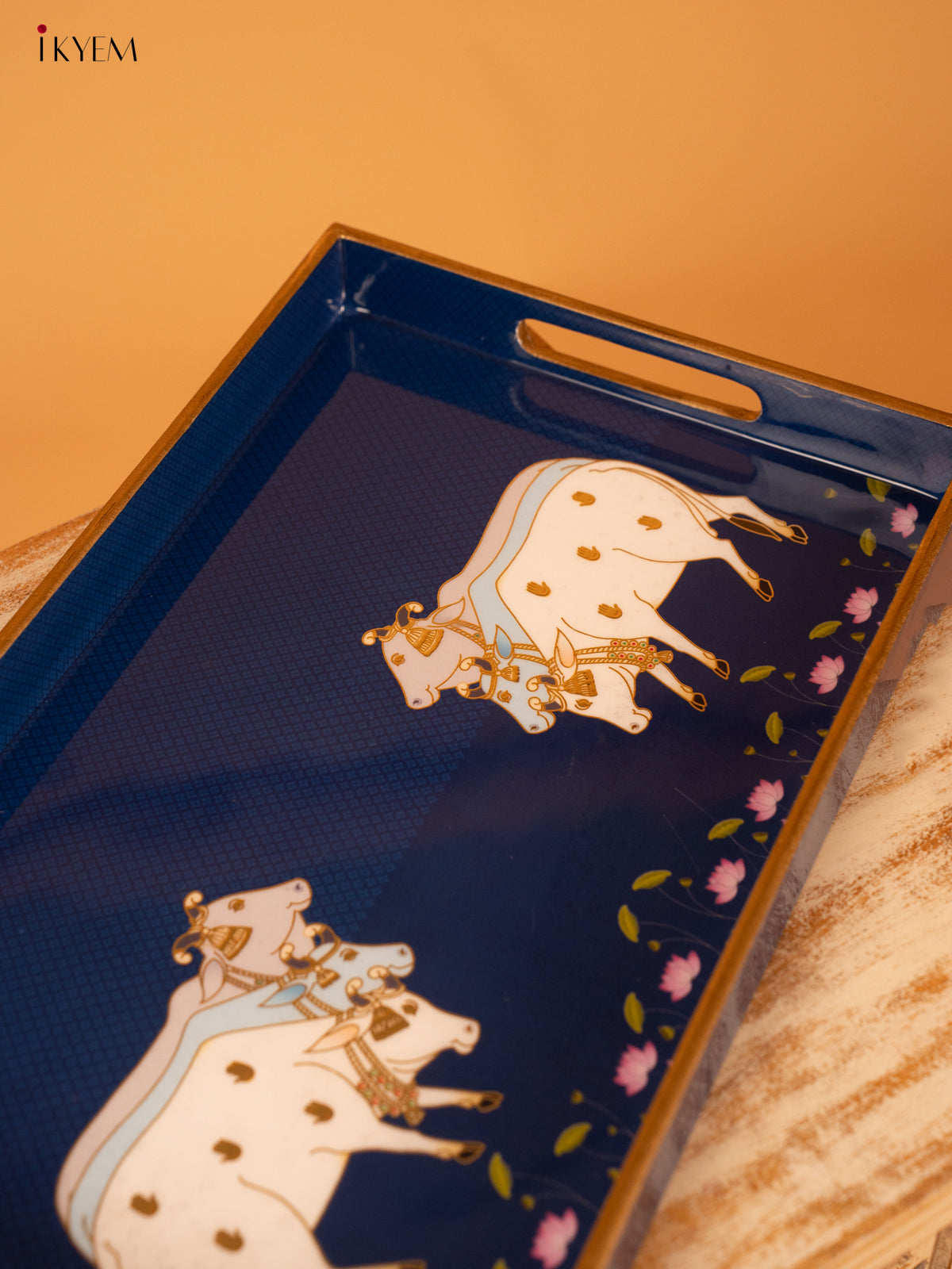 - This 16x10 Digital Printed Tray showcases a beautiful Pichwai design.