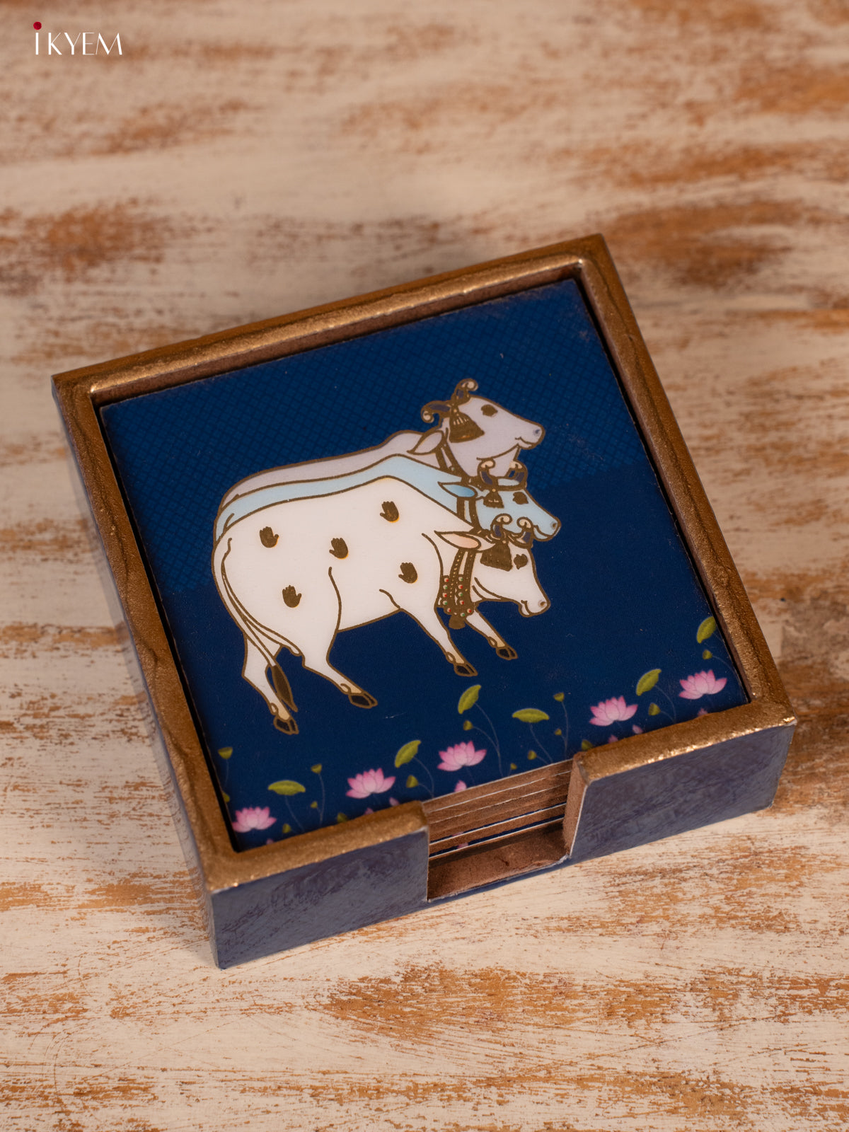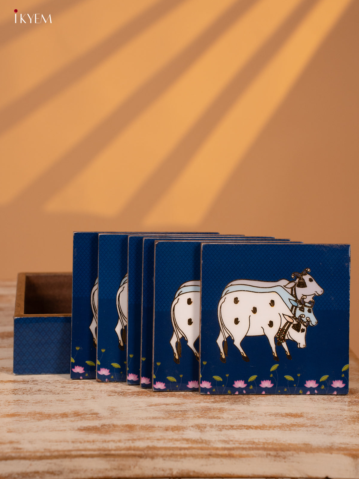 Digital Printed Coaster (Set of 6) - Pichwai Blue - KL03139