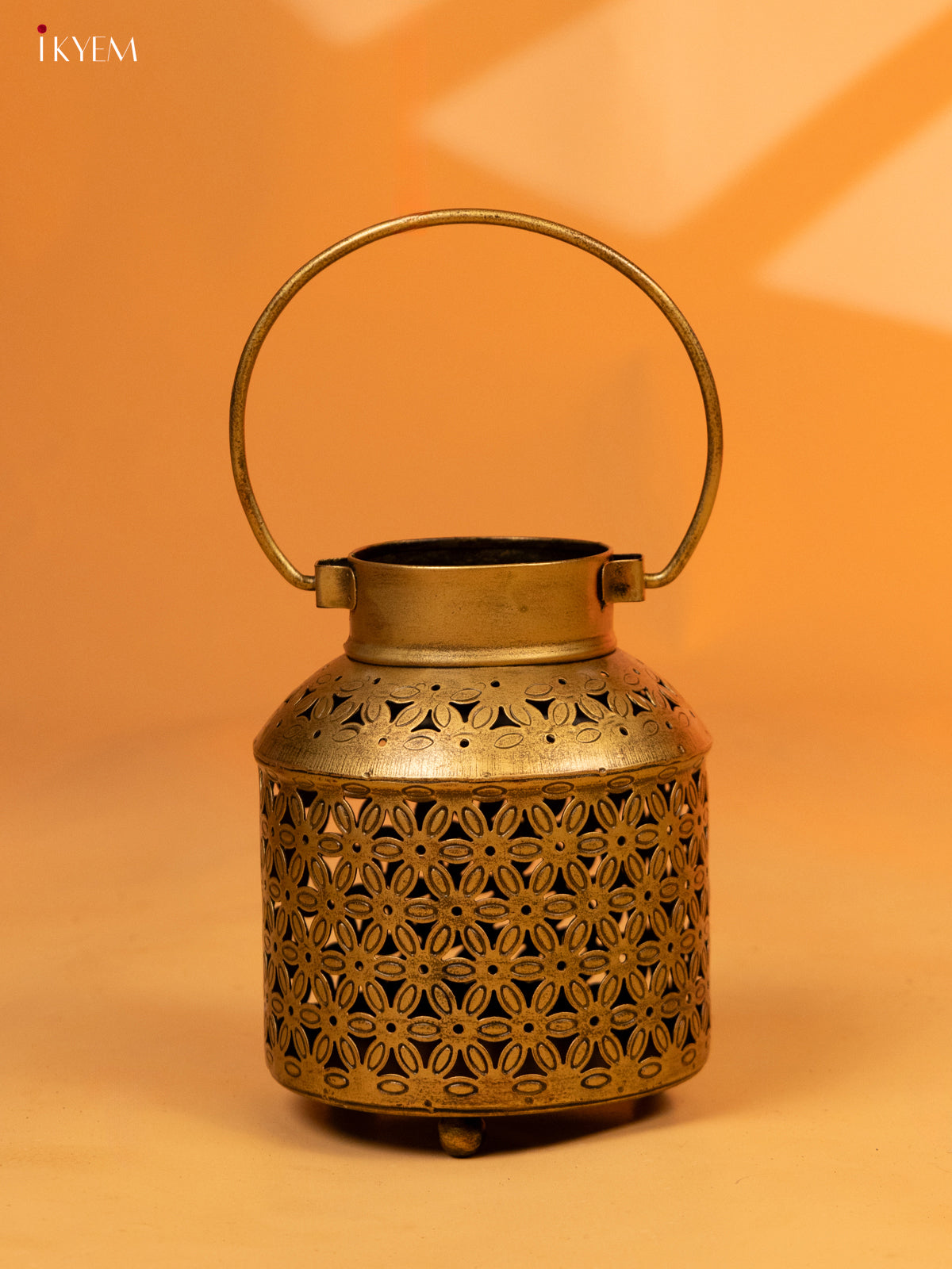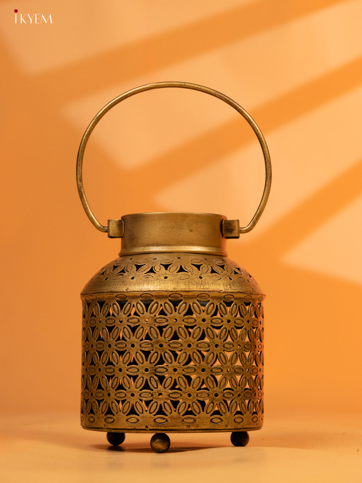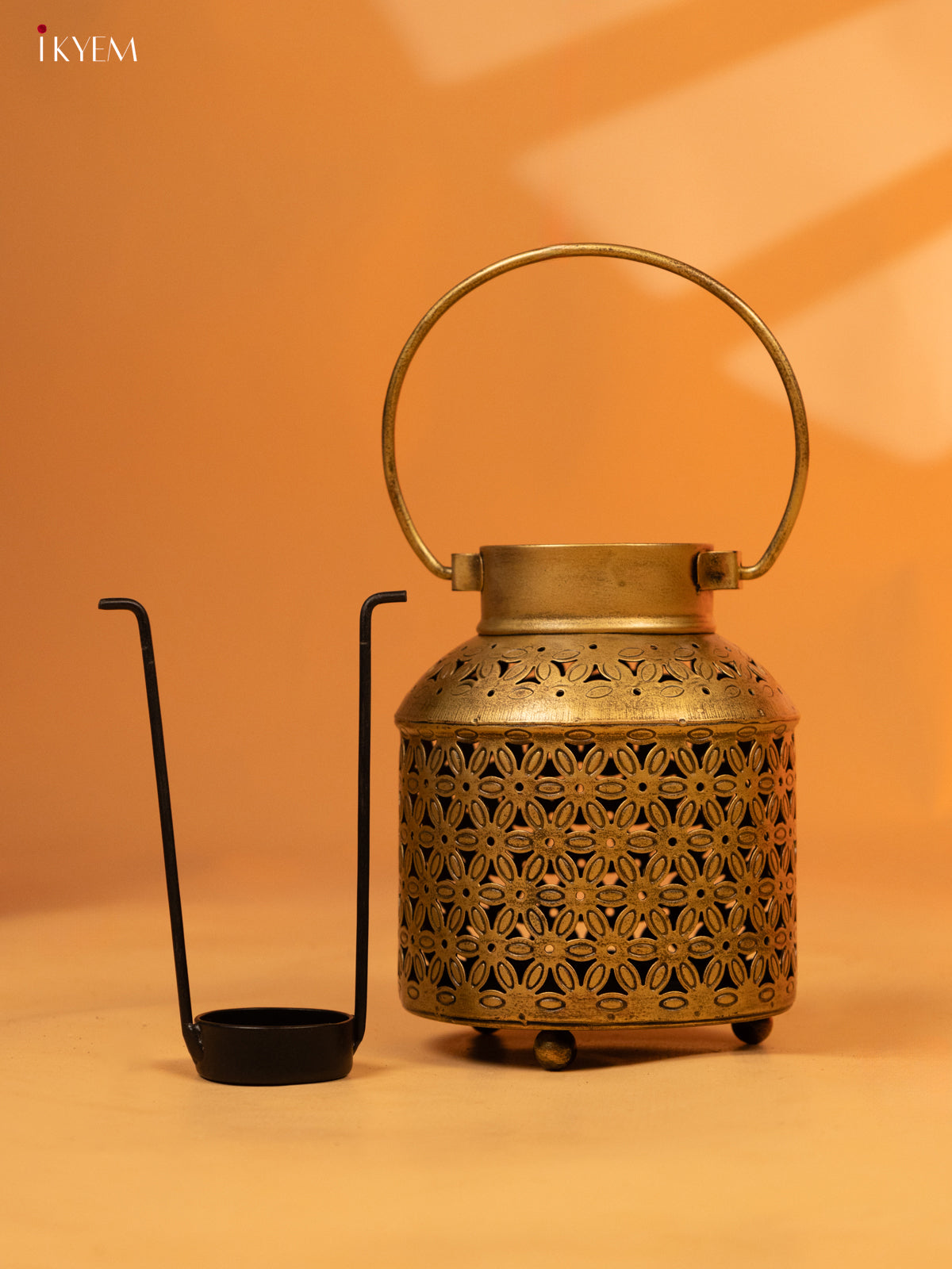 Iron Hanging T-light in Jhaali Pattern - Cylindrical - 6 inch- KL04112