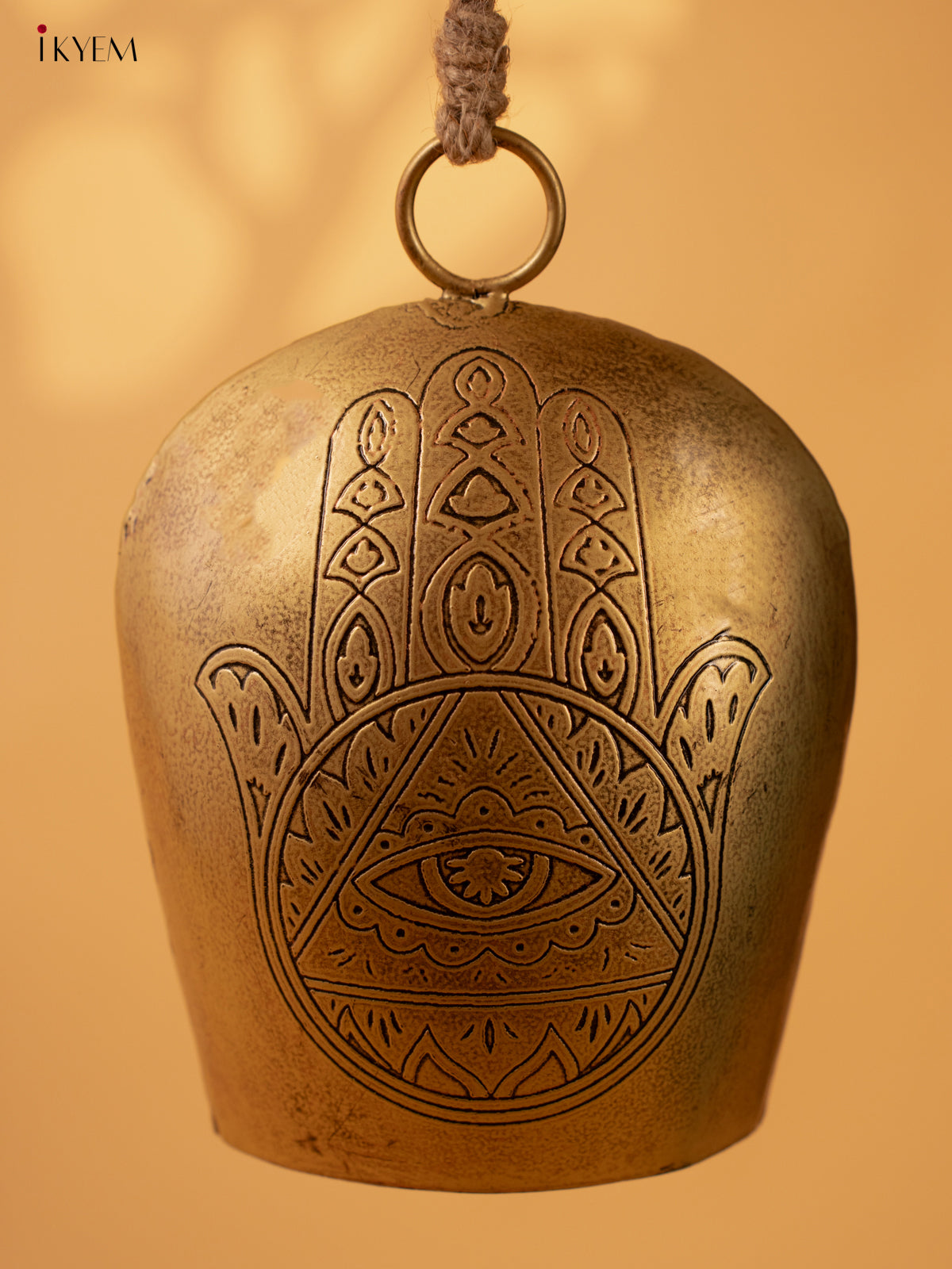 - This Metal Cow Bell with Hamsa Hand Engraving & Rope Handle is not just a decorative piece for your home, but also serves as a symbol of protection and good luck.