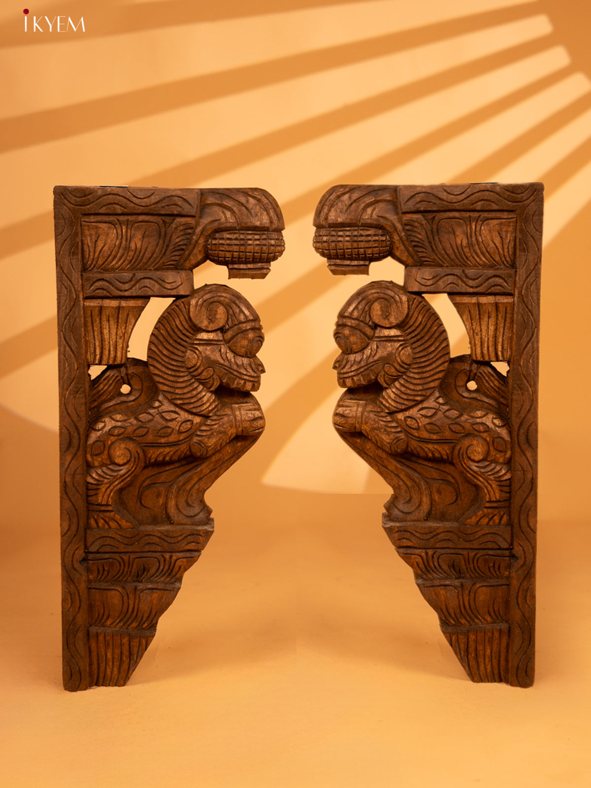 - Expertly hand carved, this wooden Yali Bracket (lion) adds a touch of traditional craftsmanship to any space.