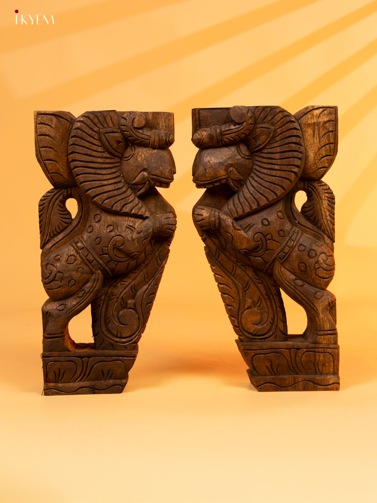 Hand Carved Wooden Yalli Bracket (lion) - KL05124