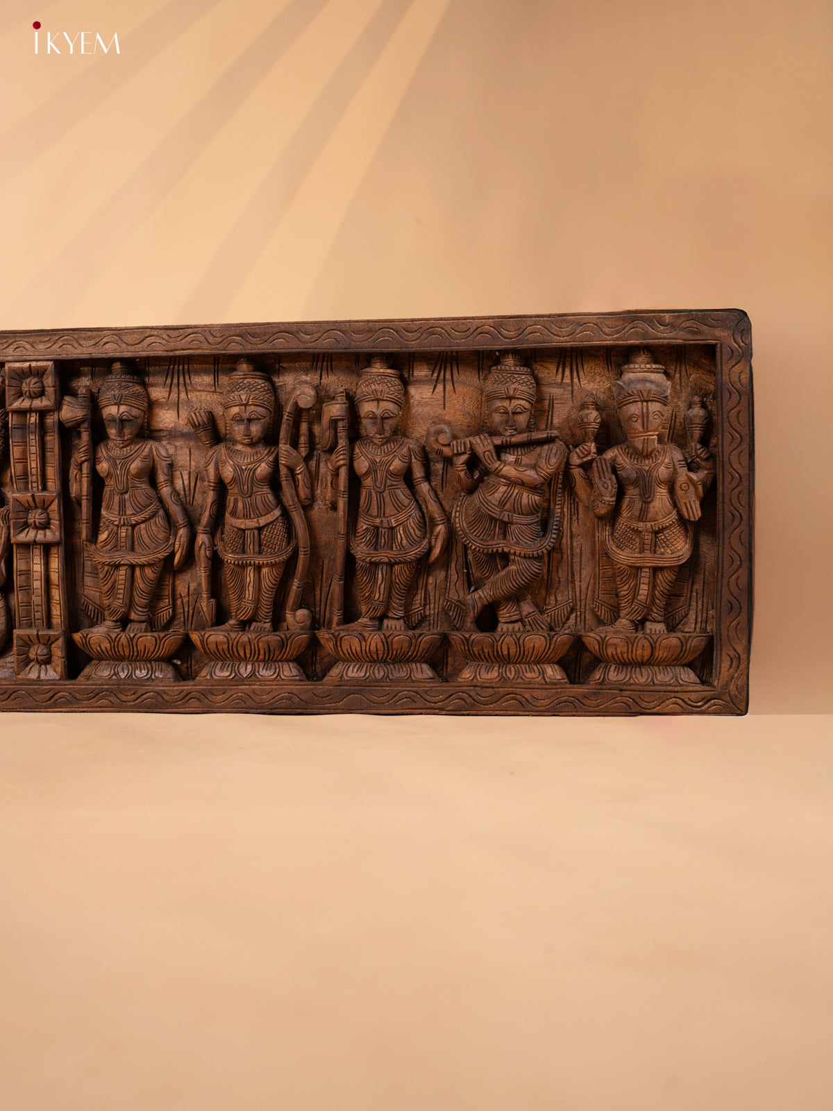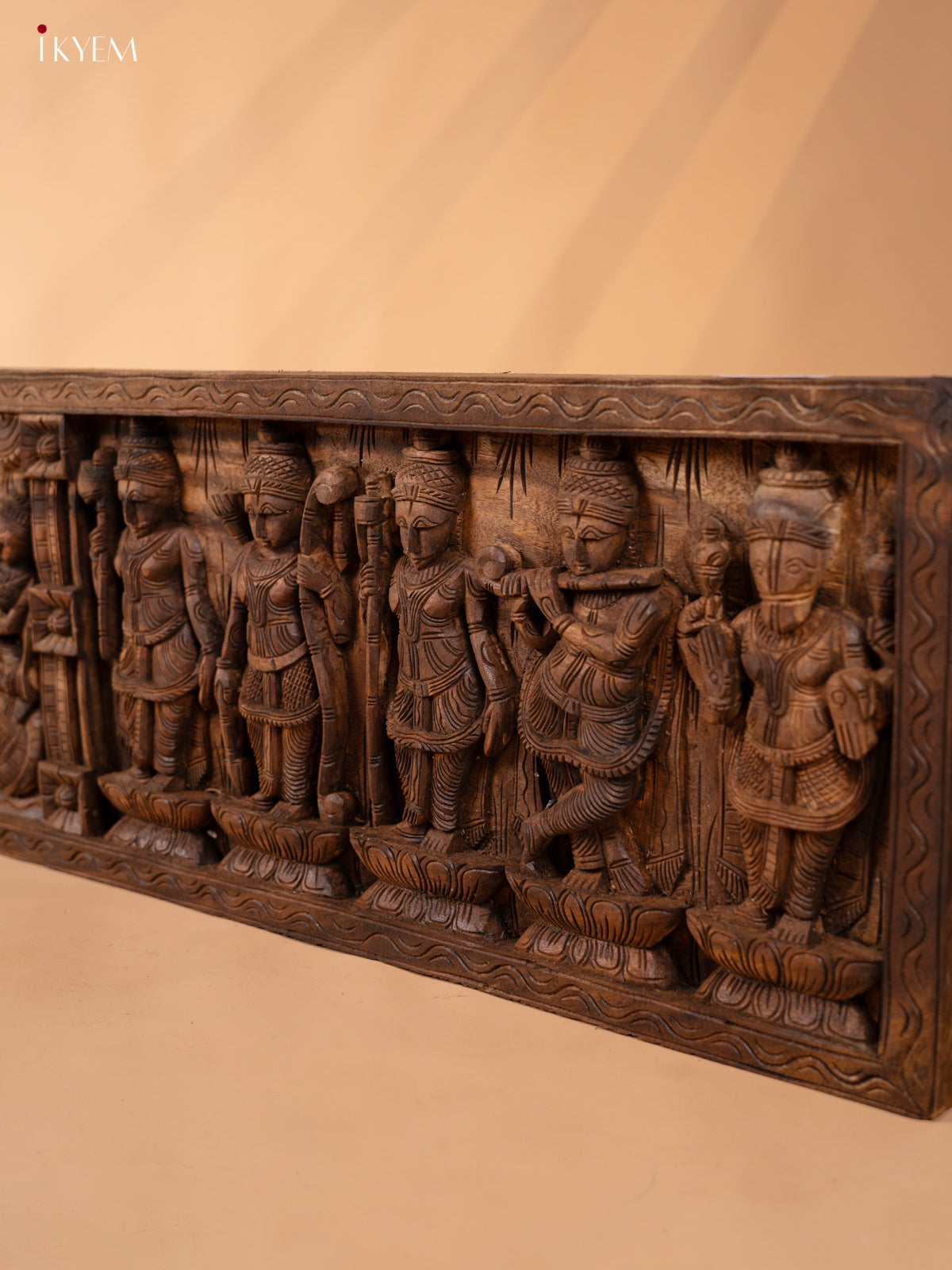 - This Vishnu and Dasavatharam Panel is a beautifully hand carved wooden piece that showcases the ten incarnations of Lord Vishnu.