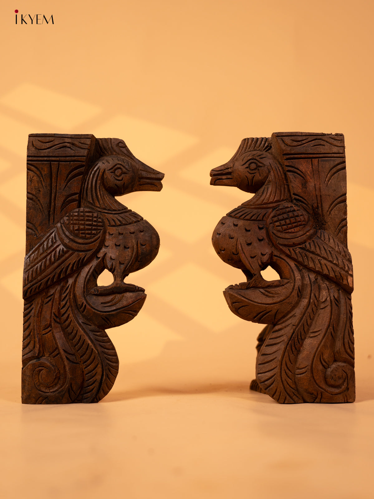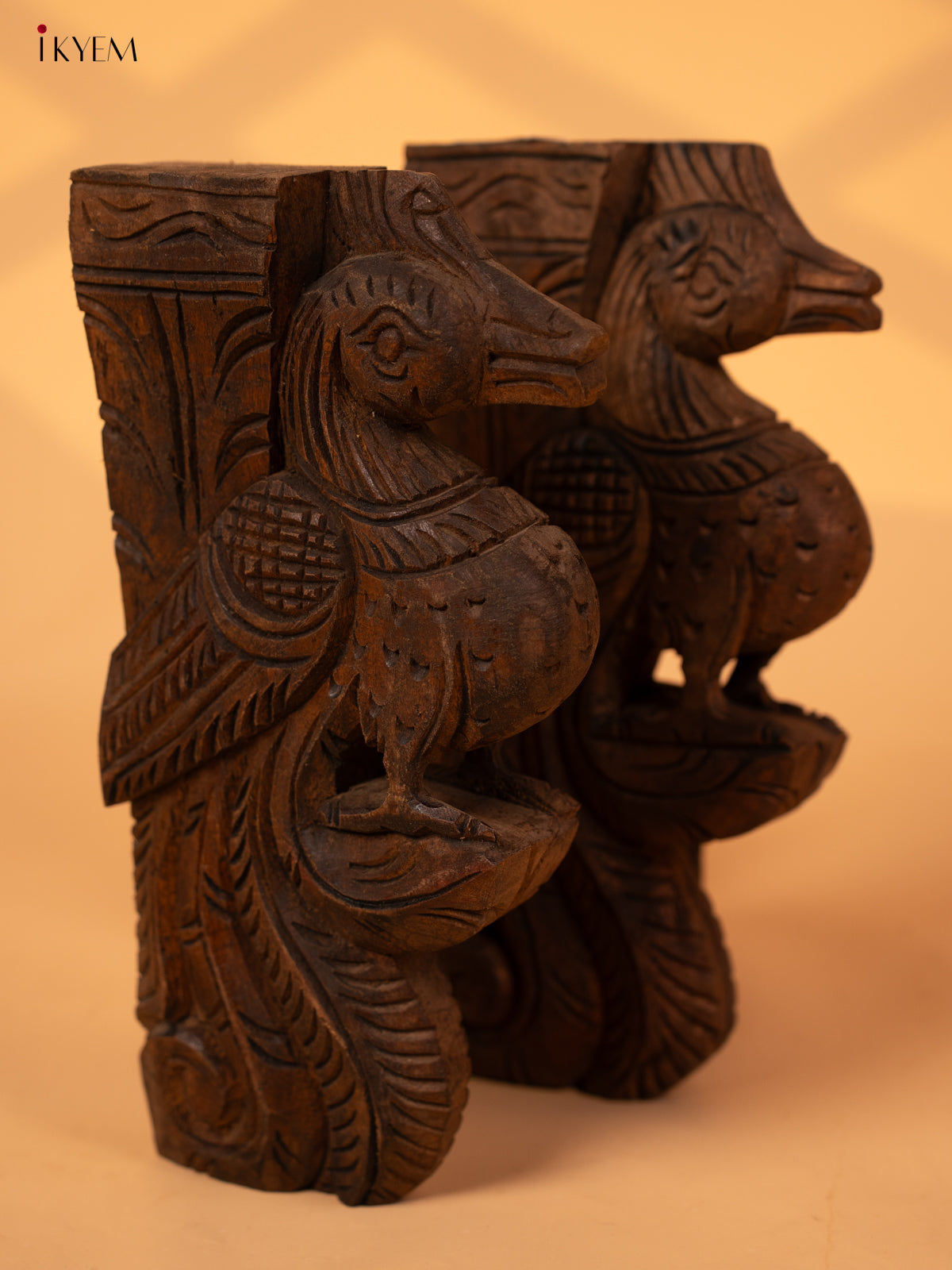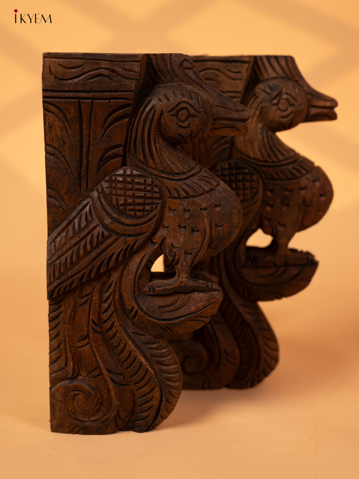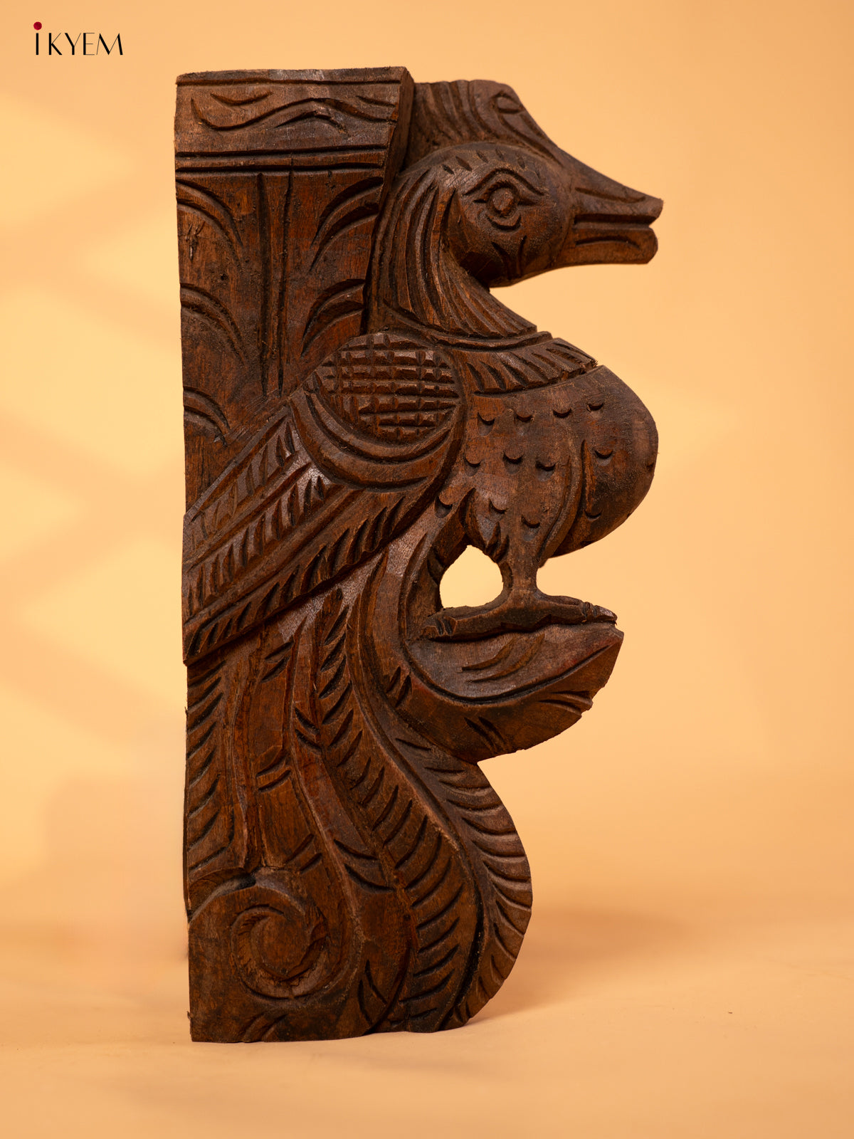Hand Carved Wooden Yazhi Bracket - Peacock (6x3x12) - KL10113
