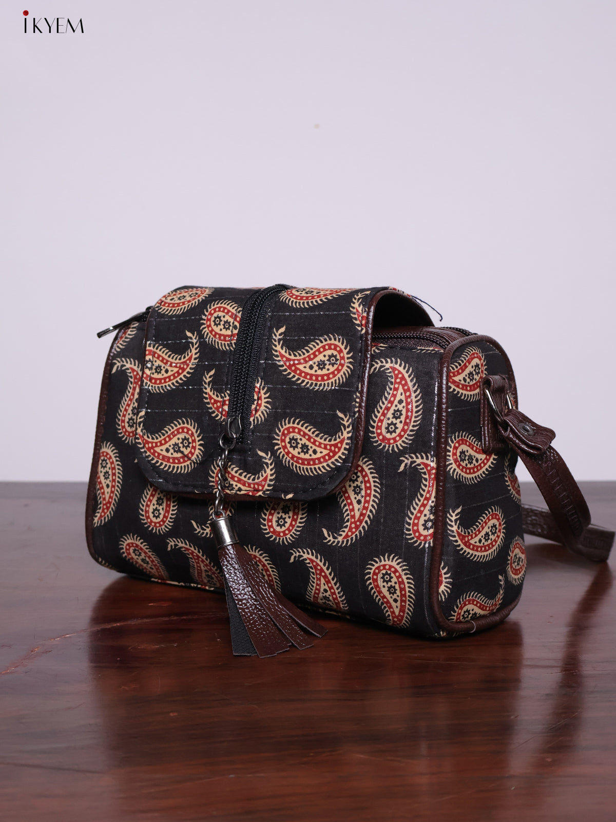 - Made from high-quality cotton, this Black sling bag is perfect for everyday use.