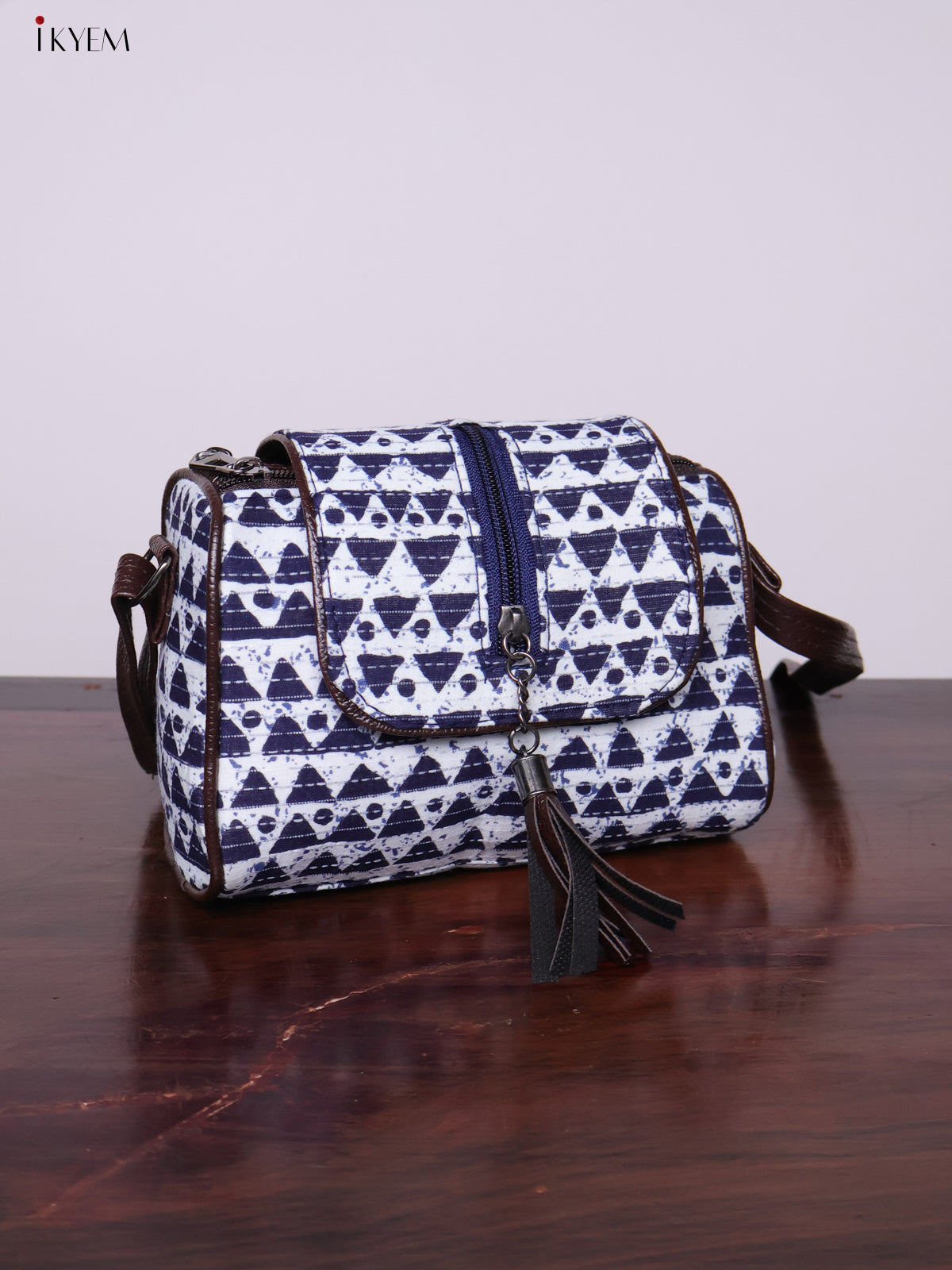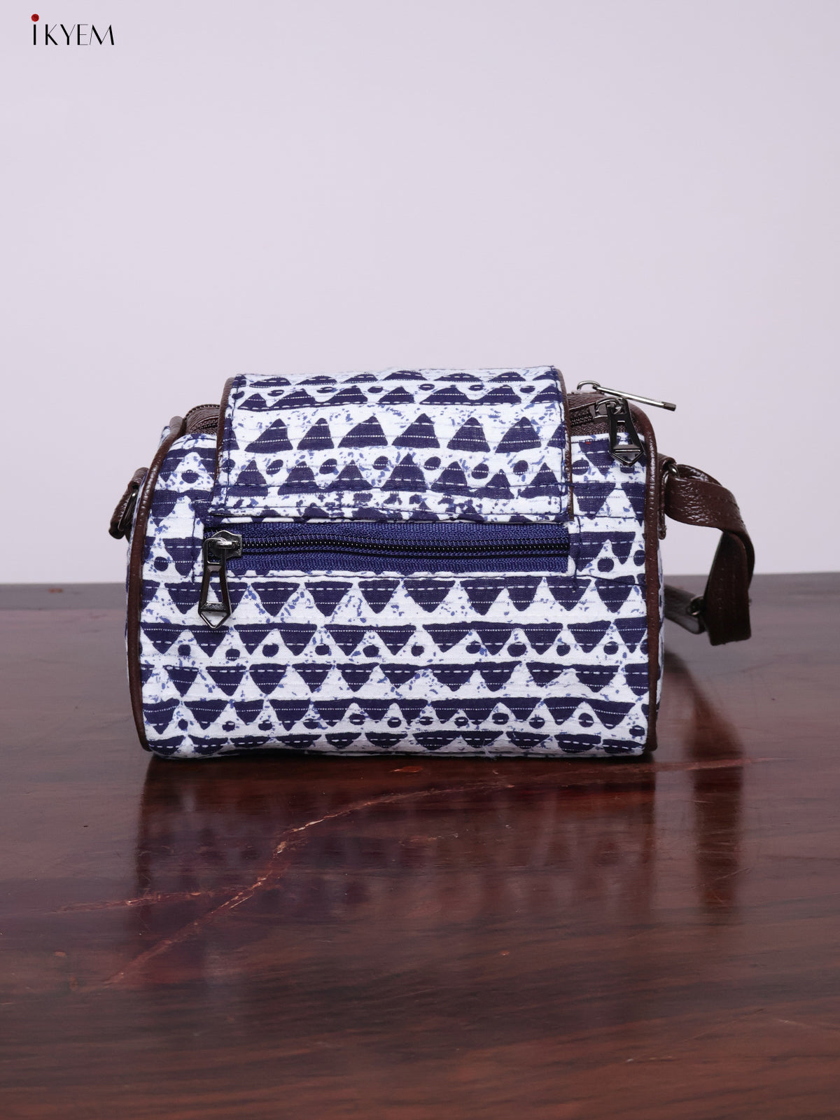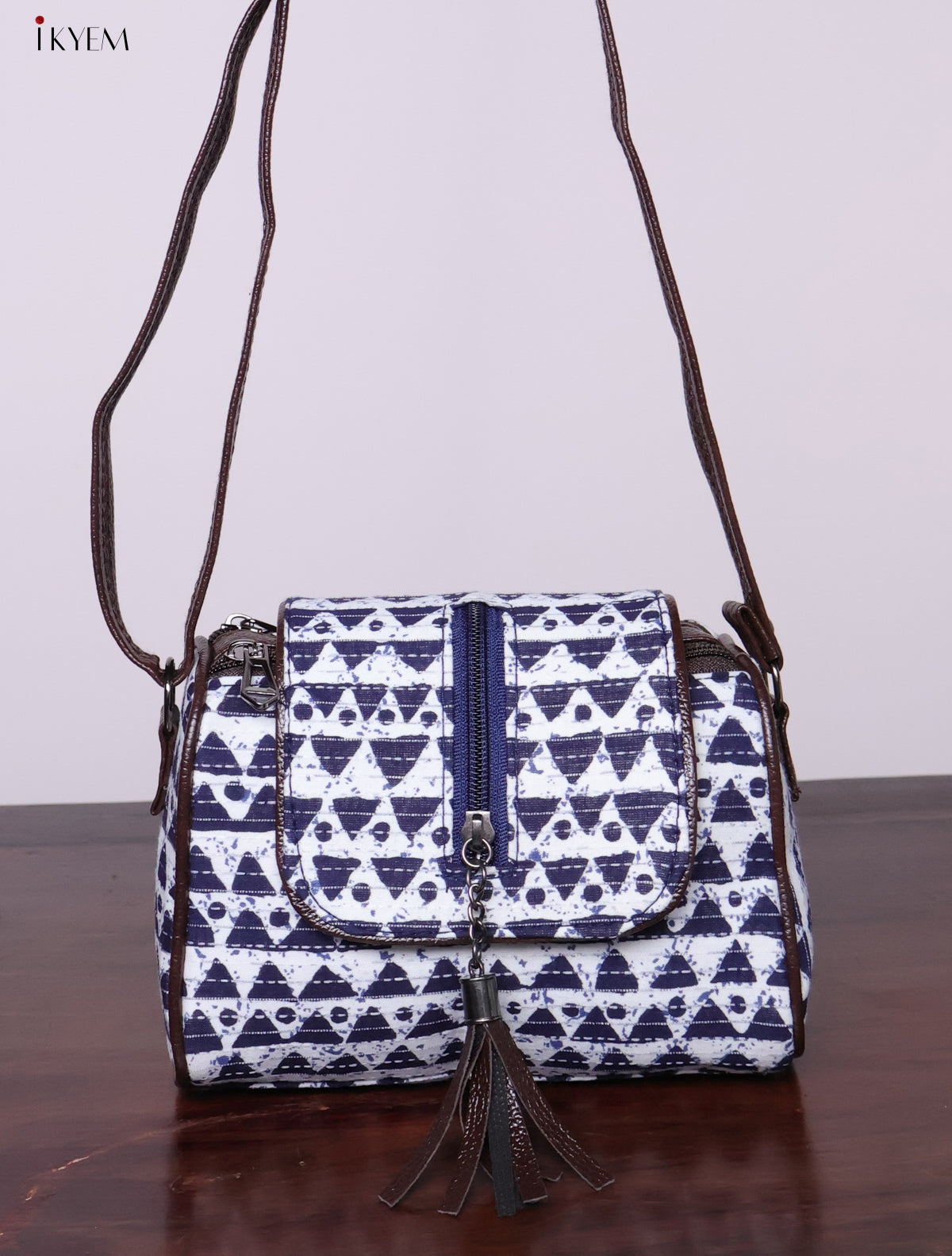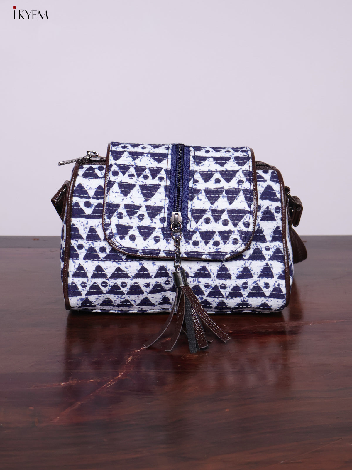 Cotton Printed Sling Bag - Blue & White - KL20138