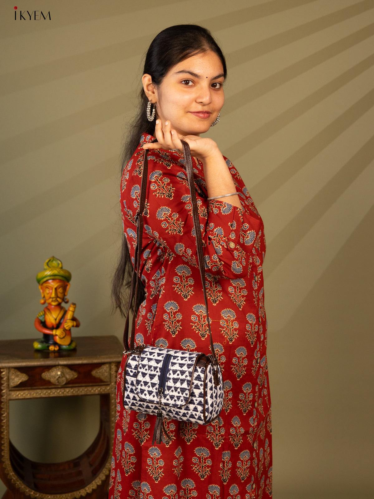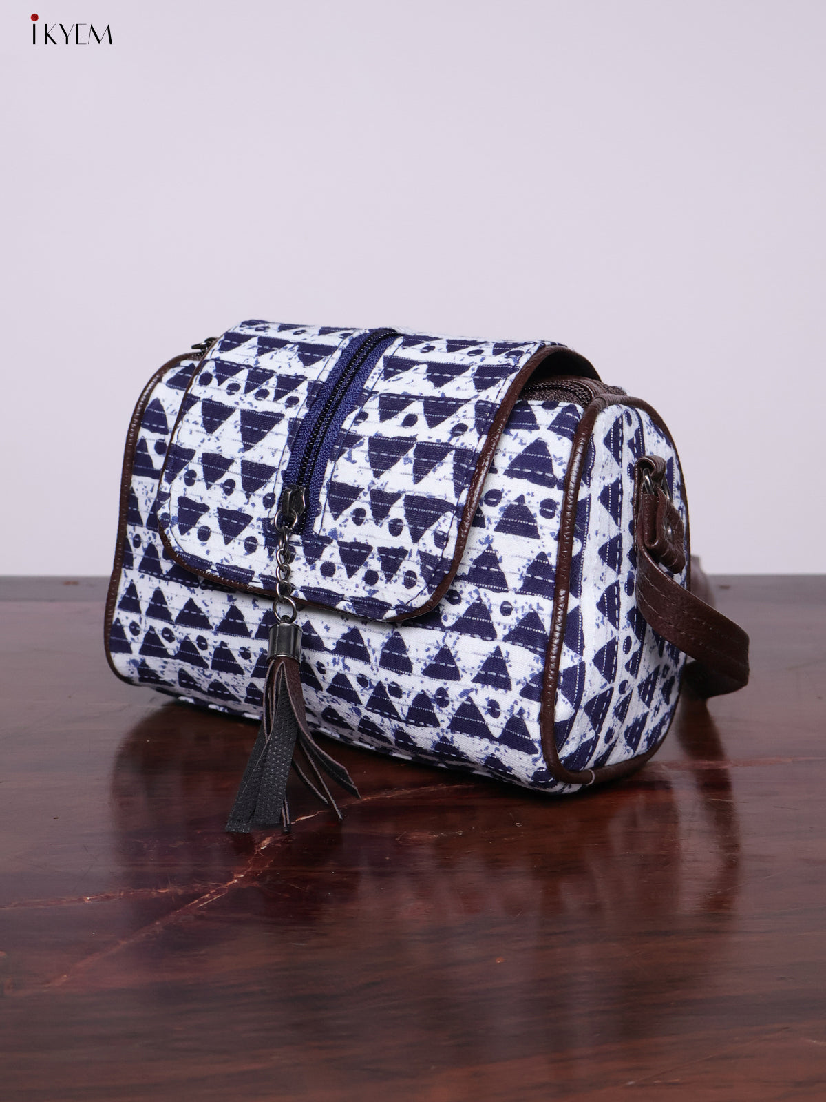 - Made from high-quality cotton, this Blue & white sling bag is perfect for everyday use.