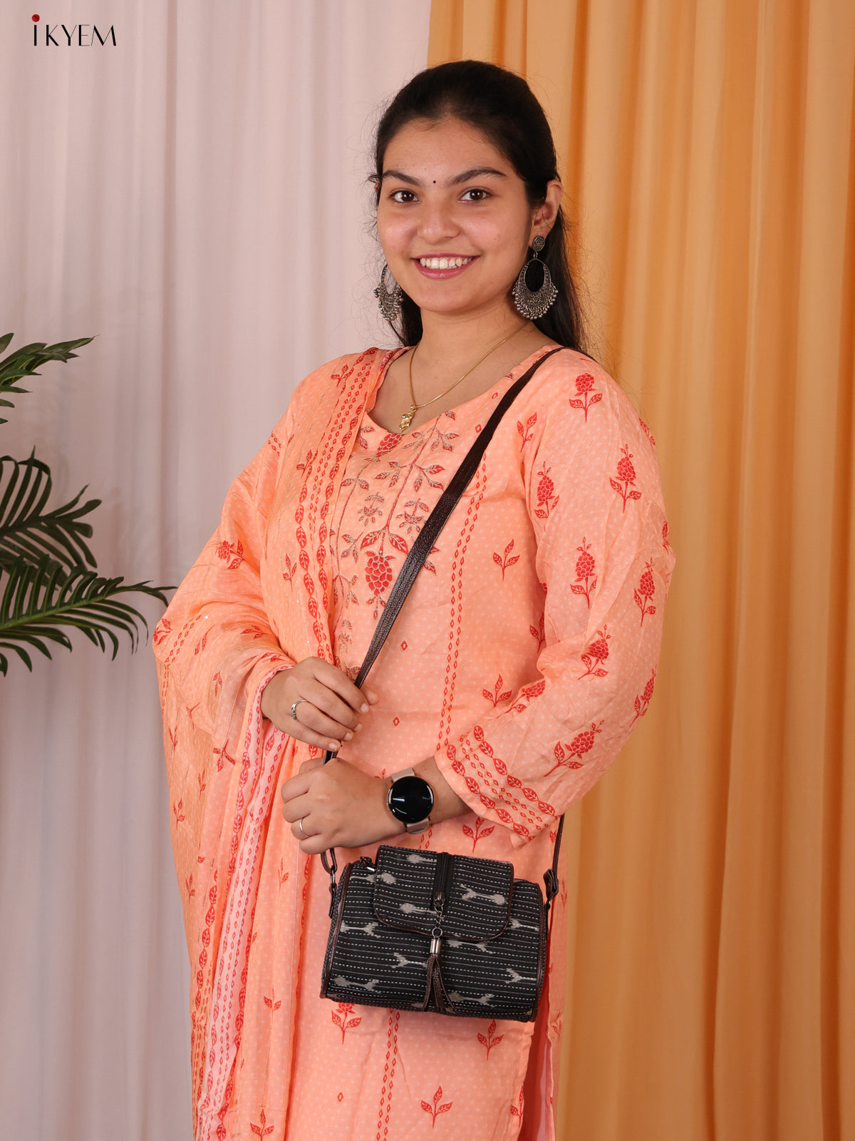 - Made from high-quality cotton, this geometric sling bag is perfect for everyday use.