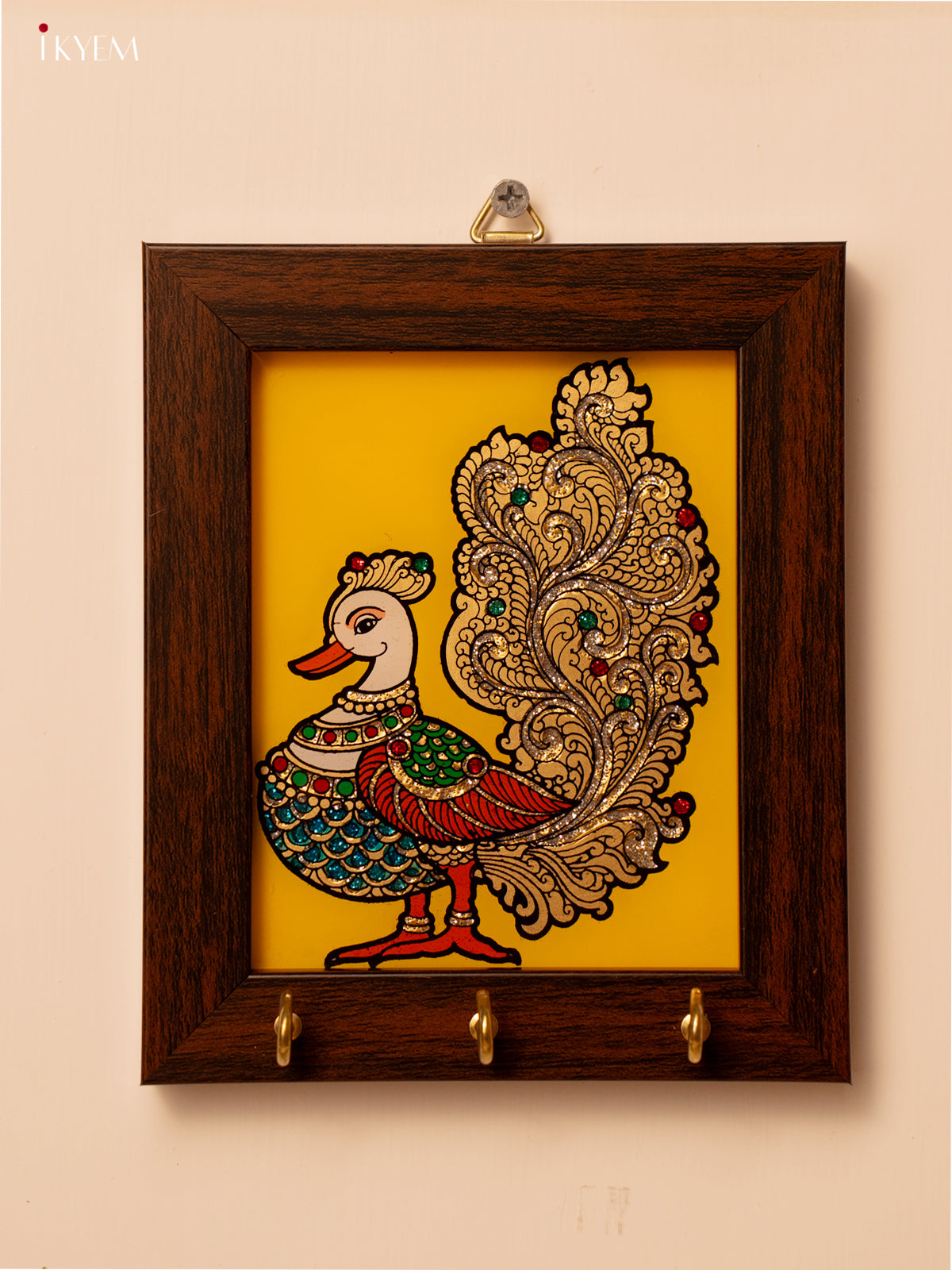 Reverse Glass Painted Keyhanger - Peacock- yellow - (6x5) Inches - KL25125