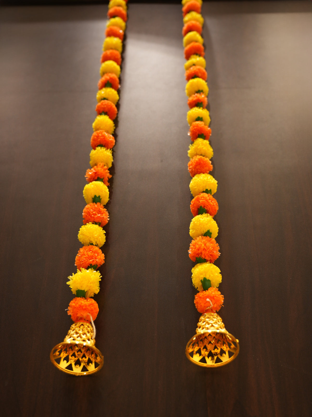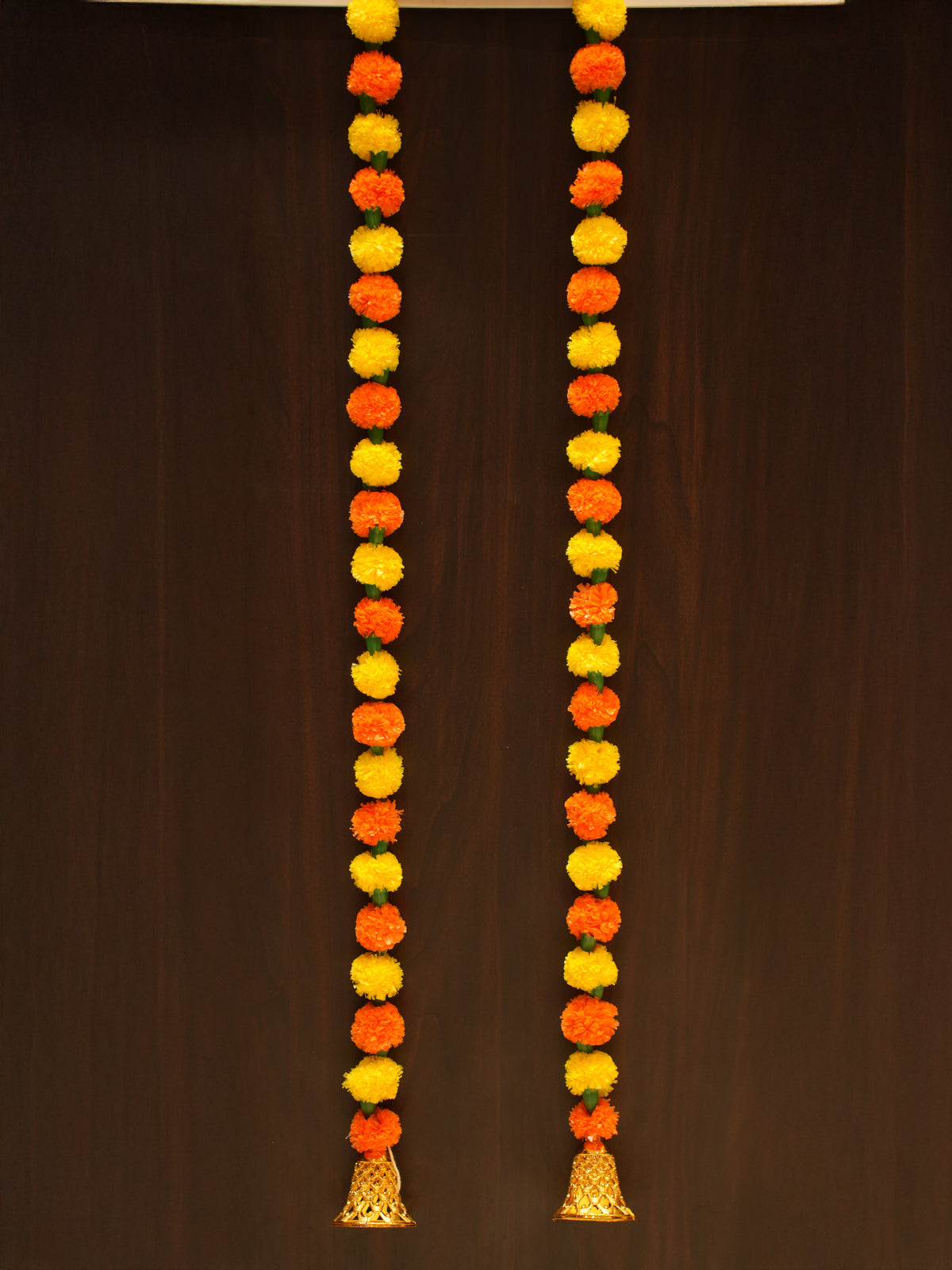 - This Artificial Marigold Flower Thoran is a beautiful door hanging that adds a touch of elegance to any space.