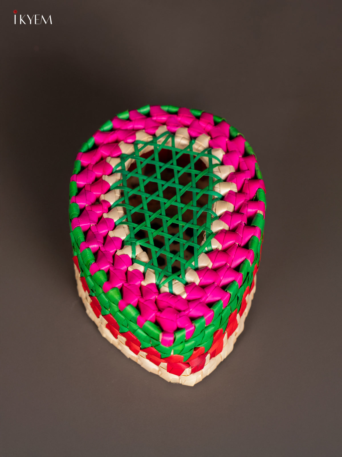 Artisanal Hand Woven Multi coloured Teardrop Storage Box - KM11122